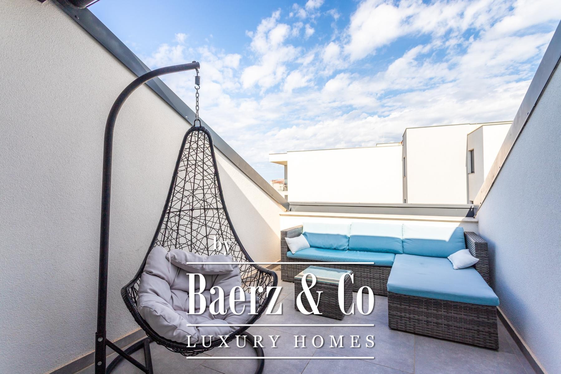 House Rogoznica stands just 90 meters from the Adriatic shore, offering 366.81 m² of considered design across four furnished apartments. This property invites both privacy and versatility, featuring eight bedrooms and eight bathrooms, all arranged to accommodate refined daily living or discreet vacation stays. \n\nThe spatial rhythm flows from a basement with a tailored apartment and four storage rooms, ascending by internal stairs to luminous upper levels. Each apartment consists of a living space with kitchen and dining area, two bedrooms, and a bathroom. Expansive terraces open southward, unveiling sea views that speak to Mediterranean serenity. \n\nBuilt on a compact 207 m² plot in Zečevo, the house is finished to demanding standards and includes three private parking spaces. The setting is quiet, removed from haste, yet the coastline and beaches remain a brief walk away. For those seeking a coastal property with architectural clarity and utility, this house in Rogoznica offers a poised retreat on the Croatian coast.