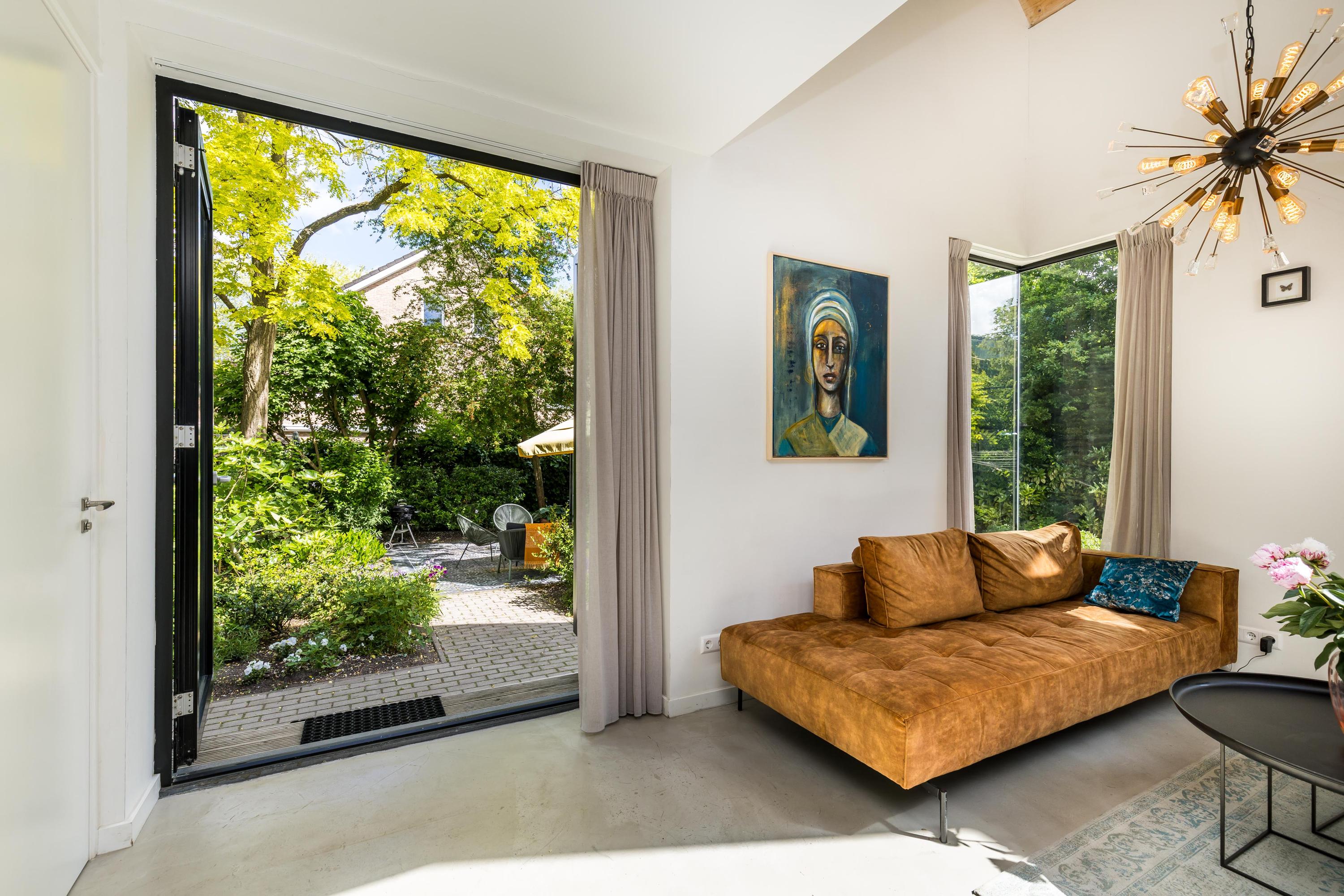A unique addition to the house is the completely renovated former barn, which was transformed into a full-fledged living space in 2019. This 'back house' is connected to the original house at the front via passages on both the ground floor and the first floor. On the ground floor there is a beautiful, bright open plan kitchen, perfect for cozy dinners and get-togethers. A spacious bedroom has been created on the first floor, which can also serve as an ideal office or office. The back house is also suitable as a separate living space.