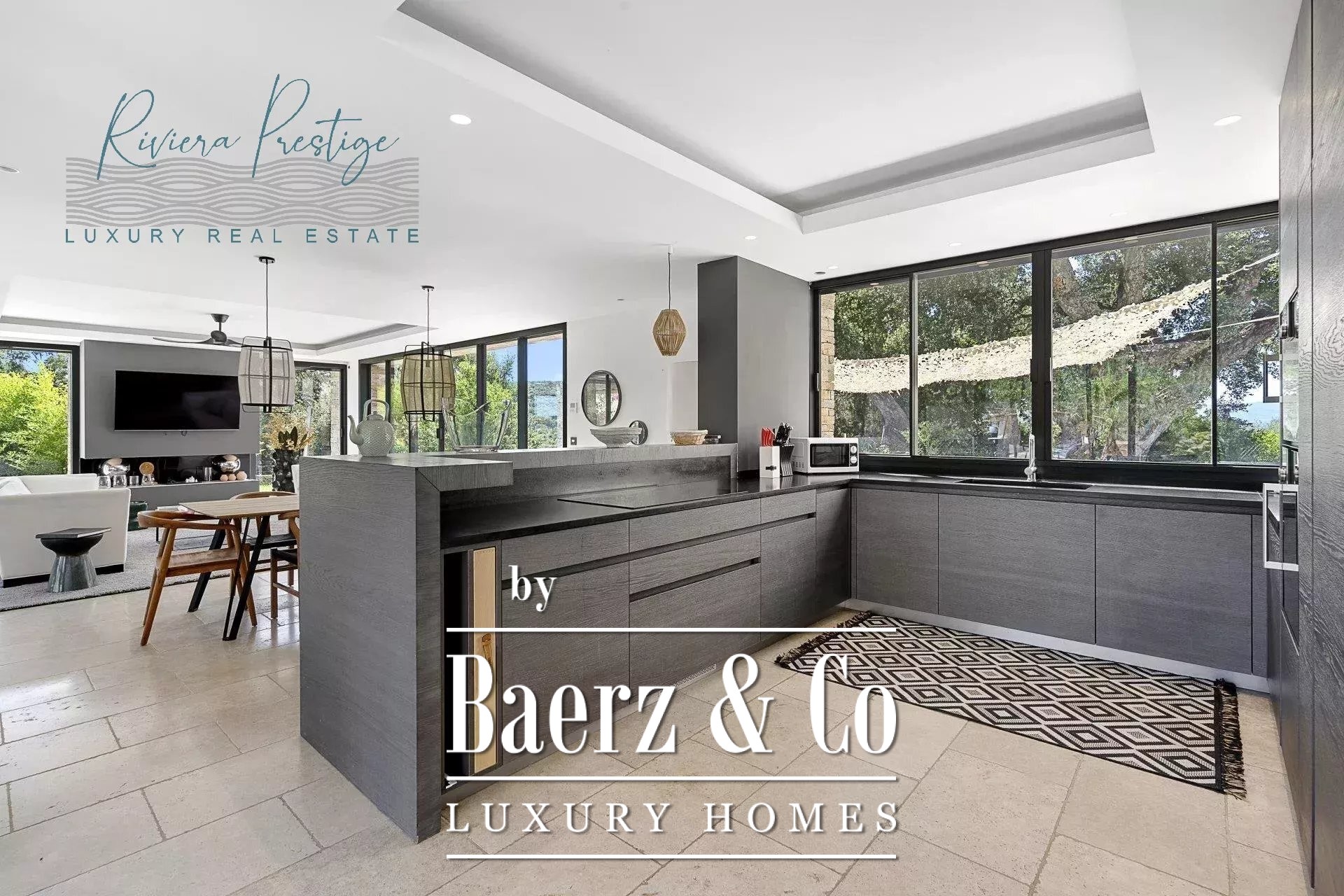 Contemporary villa built on a landscaped plot of approximately 5,150 sqm, located near the Chapelle Sainte-Anne, about 1.5 km from the village centre and the Pampelonne and Tahiti beaches.
