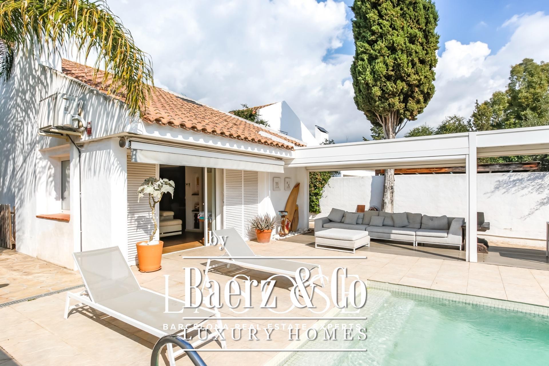 Detached house Sant Pere de Ribes offers an understated, Mediterranean aesthetic set within the exclusive enclave of Los Viñedos. The residence presents 155 m² of considered living space on a 355 m² plot, offering four bedrooms and two bathrooms, thoughtfully arranged for privacy and fluidity. Light flows through expansive sliding windows, connecting interior spaces with lush gardens, lounge terraces, and a private swimming pool—an invitation to daily calm and quiet gatherings alike.