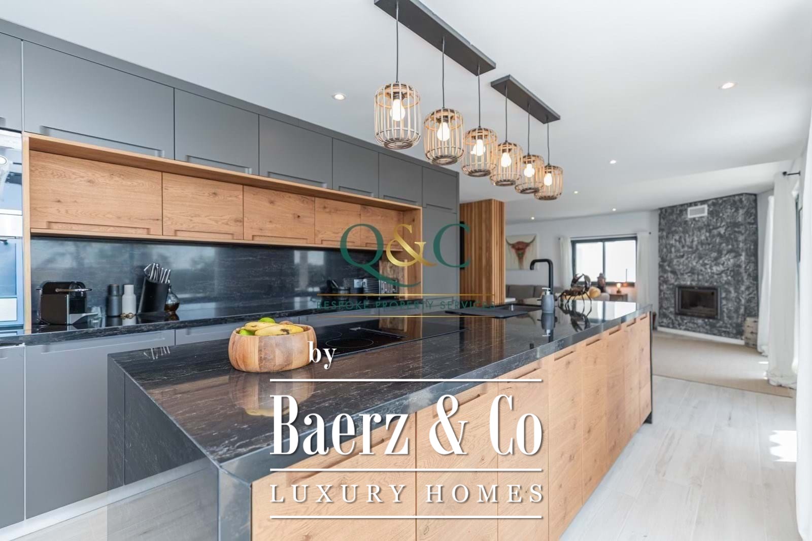 The luxury kitchen, with Bosch appliances, instant boiling water tap and 5cm granite worksurfaces, overlooks the pool, terrace and the sea beyond, and with underfloor heating to provide the perfect cooking environment. The living space with log burner enjoys the sea view, and the dining area overlooks the rear courtyard. The bright open-plan spaces combine to offer a serene connection with the beauty of the Algarve hillside.