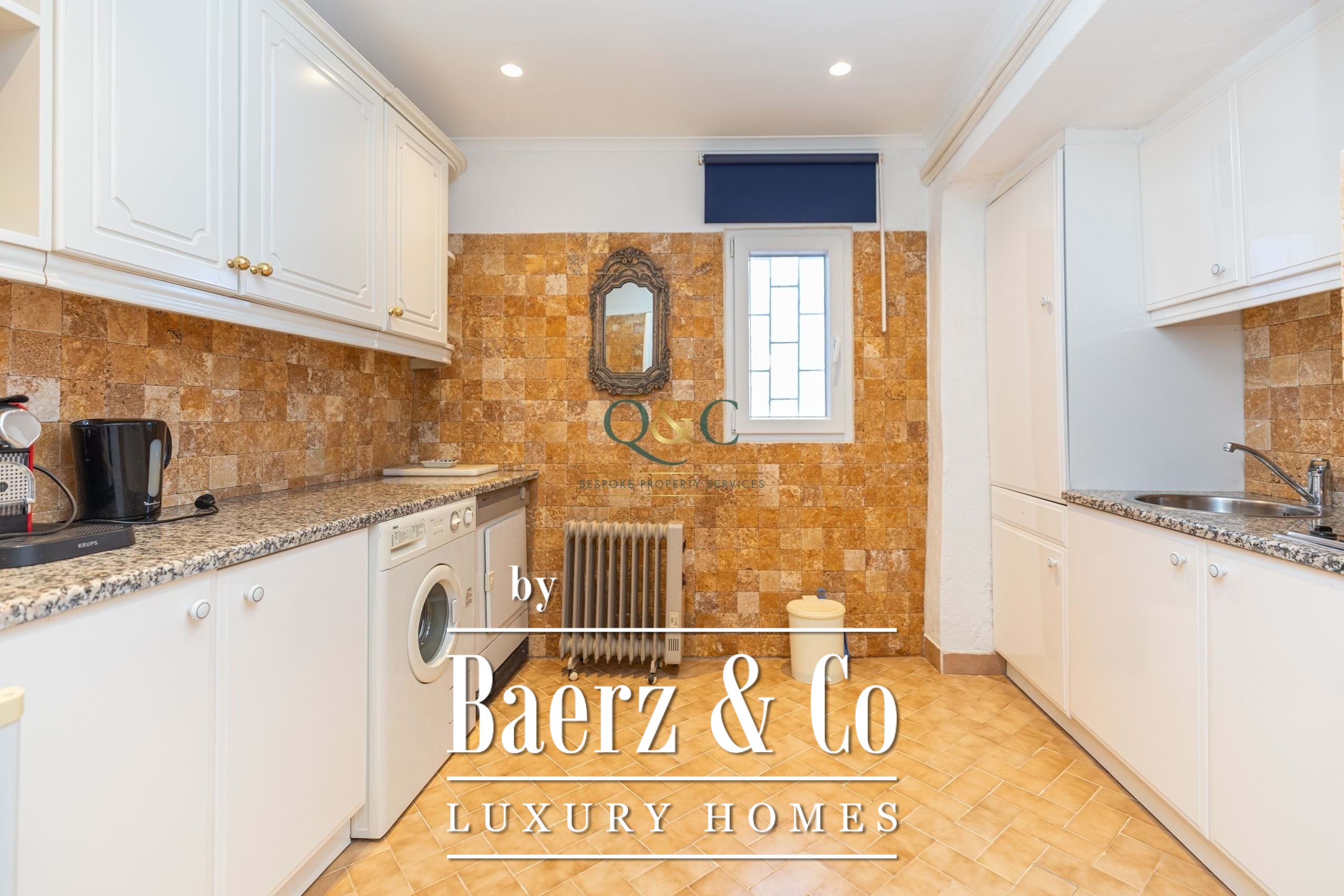 Entering through the front door, a welcoming hallway with a guest cloakroom leads into a bright and spacious living area. This elegant room, complete with a fireplace and panoramic ocean views, flows naturally into the well-fitted and fully equipped kitchen. From the living room, doors open to a covered terrace and a lovely outdoor seating area the ideal spot to enjoy both sunrise and sunset.