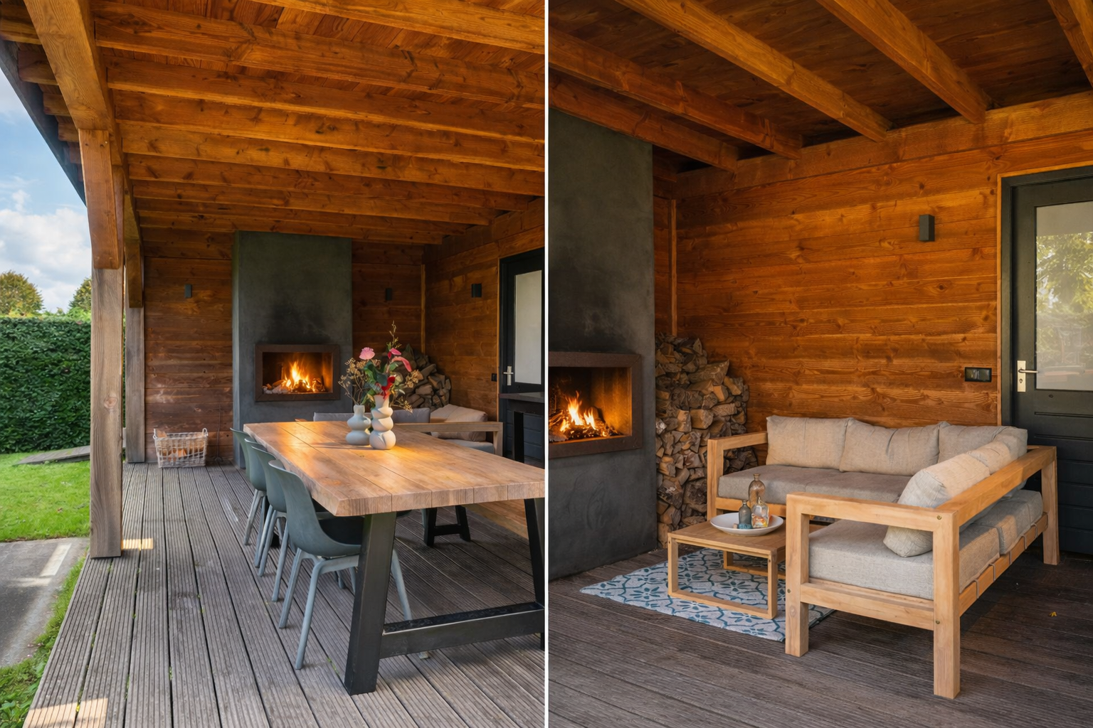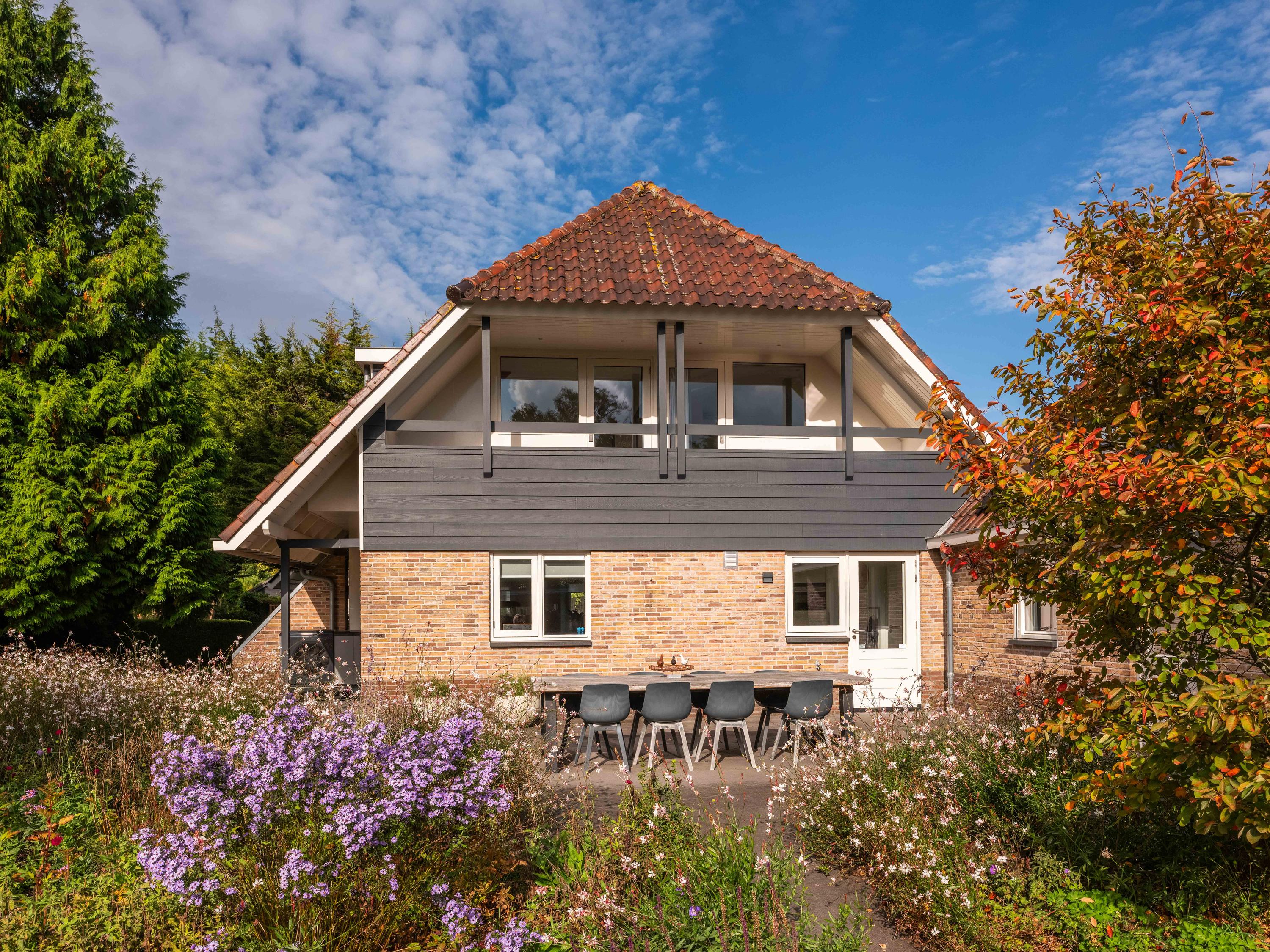 The back garden is very spacious and well landscaped. There is a lovely veranda with a wood-burning stove, seating area, storage space, electricity, lighting and (cold) water. There is also a spacious chicken coop in the garden, which will remain.