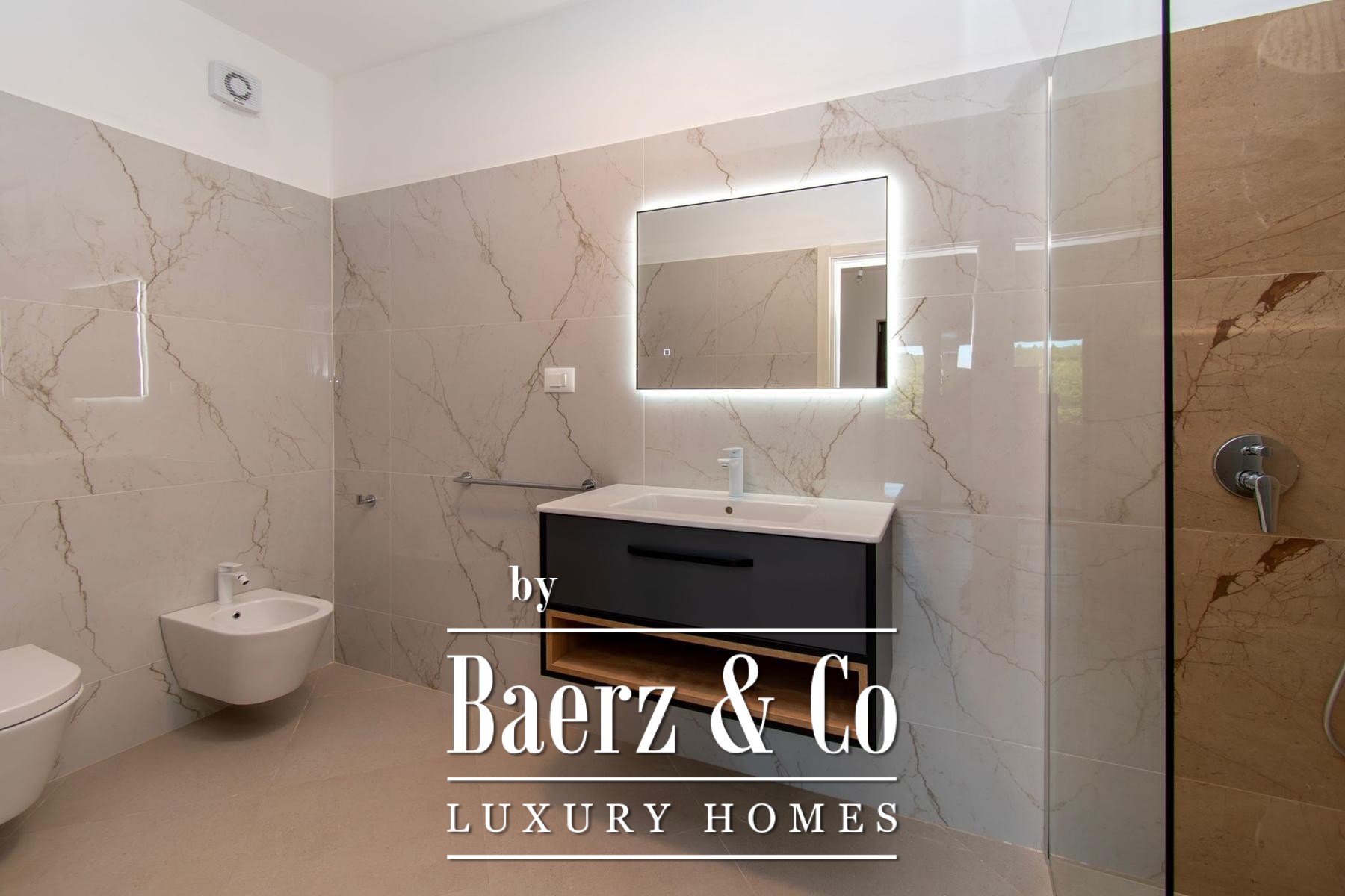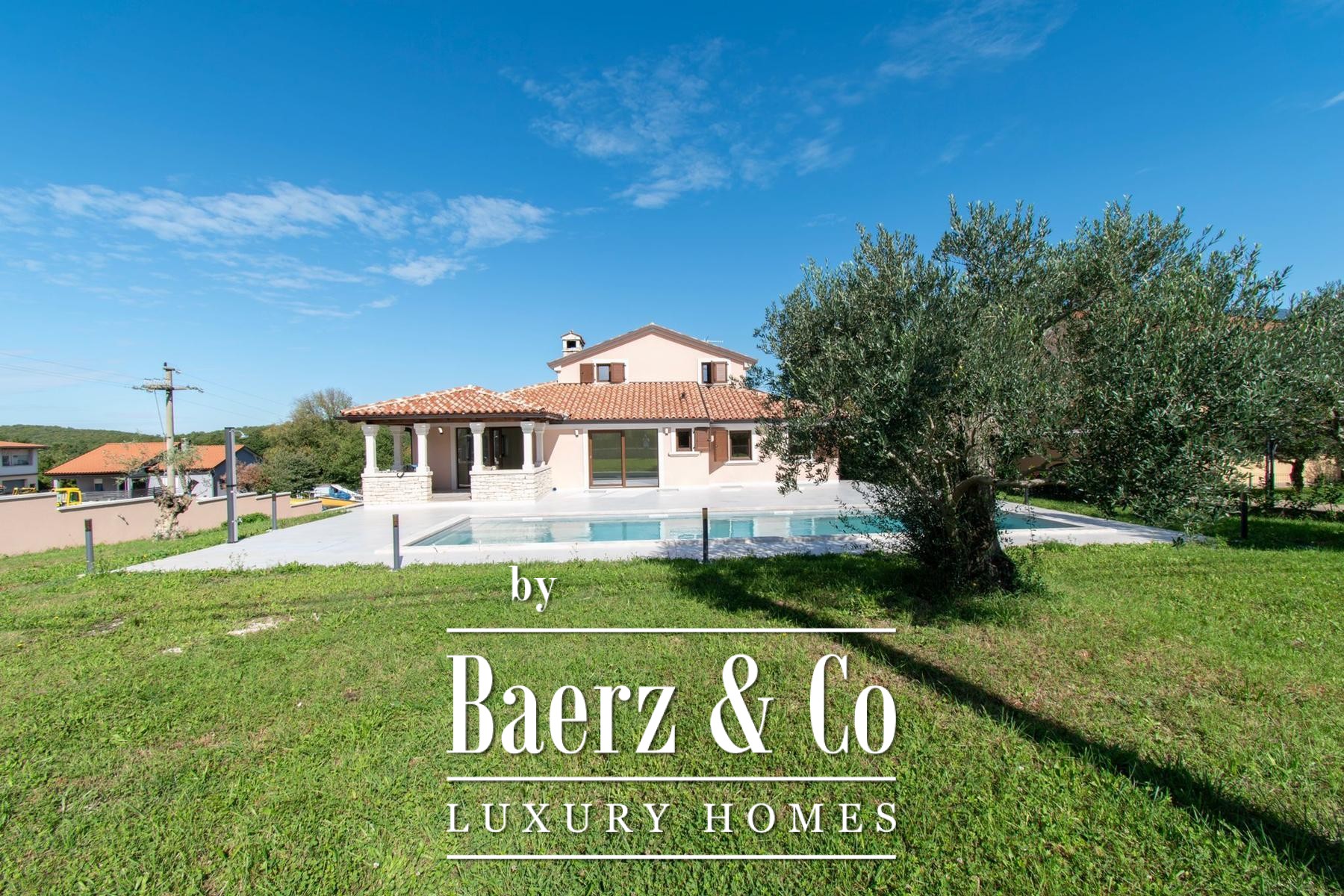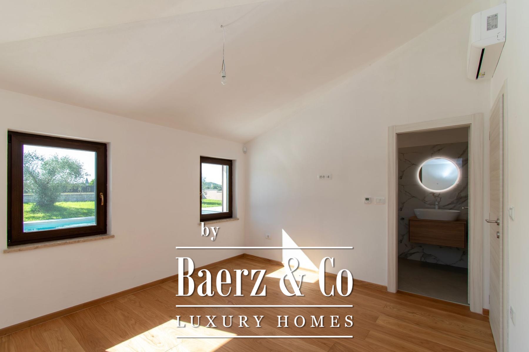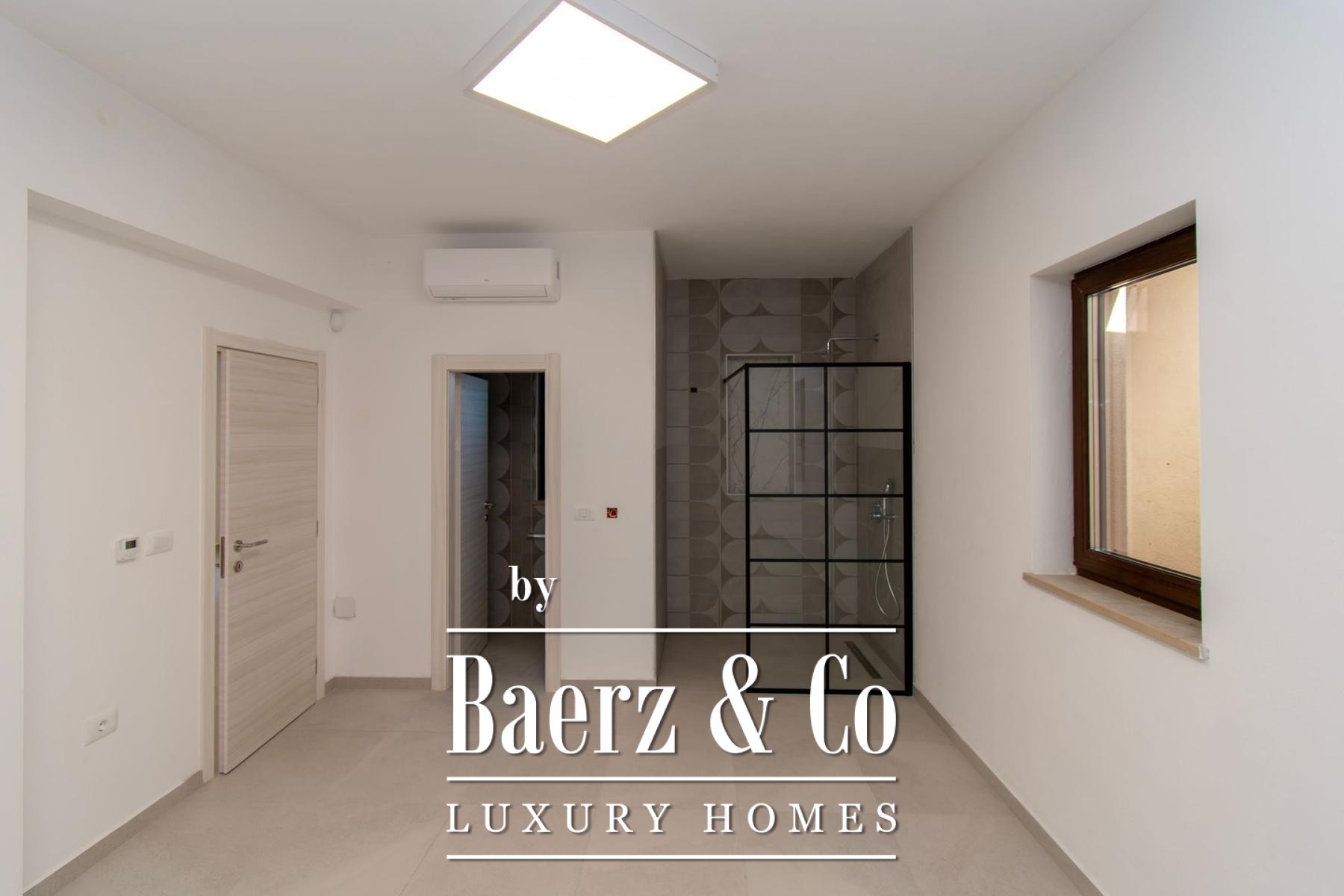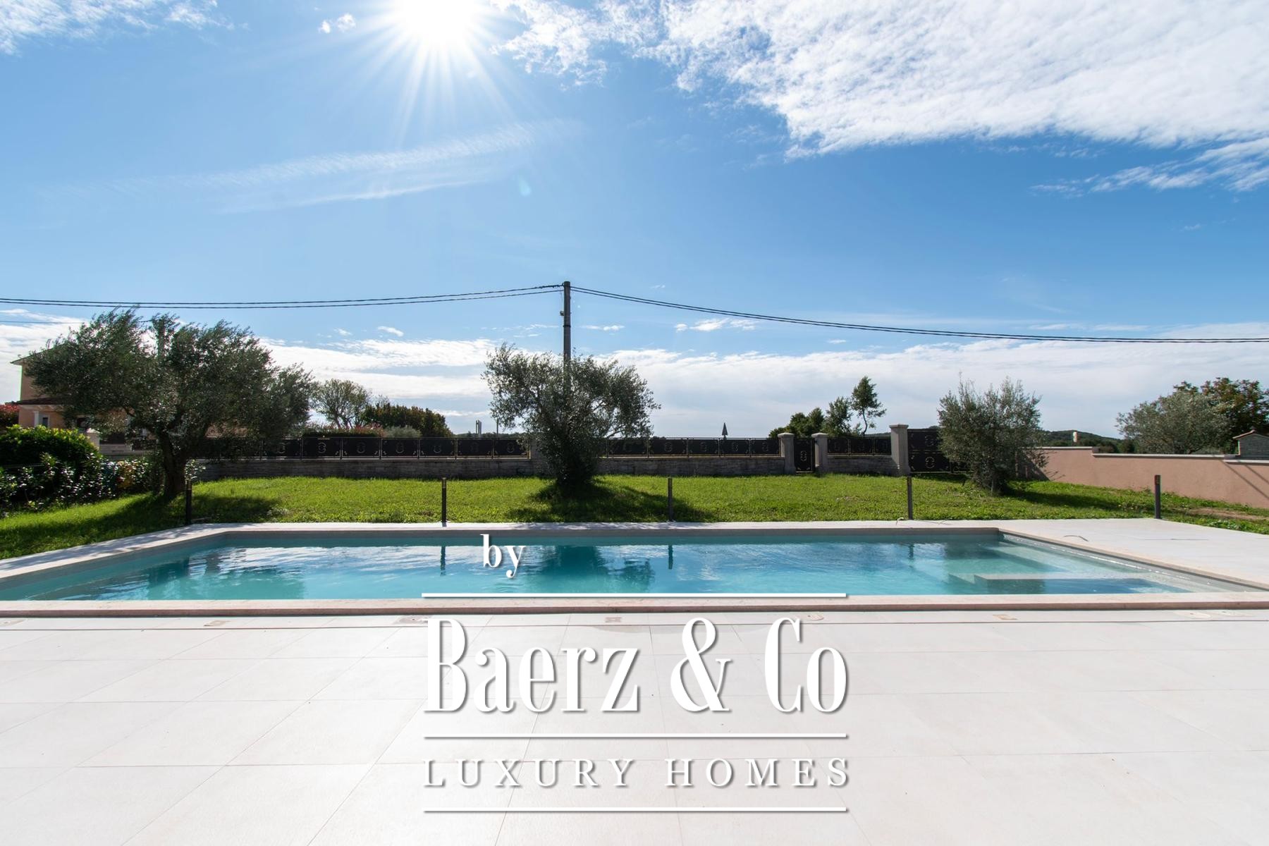Constructed in reinforced concrete, the home’s natural light and sense of space are amplified by 2.75 m ceilings, triple-glazed walnut-color windows, Italian NORDIK TILE ceramics, and oak parquet. Advanced systems include DAIKIN heat pumps, 11 air conditioners, video surveillance, and an alarm. The exterior features five parking spaces, two gated entries, stone-built terraces, ancient olive trees, and meticulously landscaped grounds. This luxury villa for sale in Sveti Lovreč is ten minutes from the beaches of Vrsar and Poreč, offering a serene pace of life, technical excellence, and a discreet sense of place.