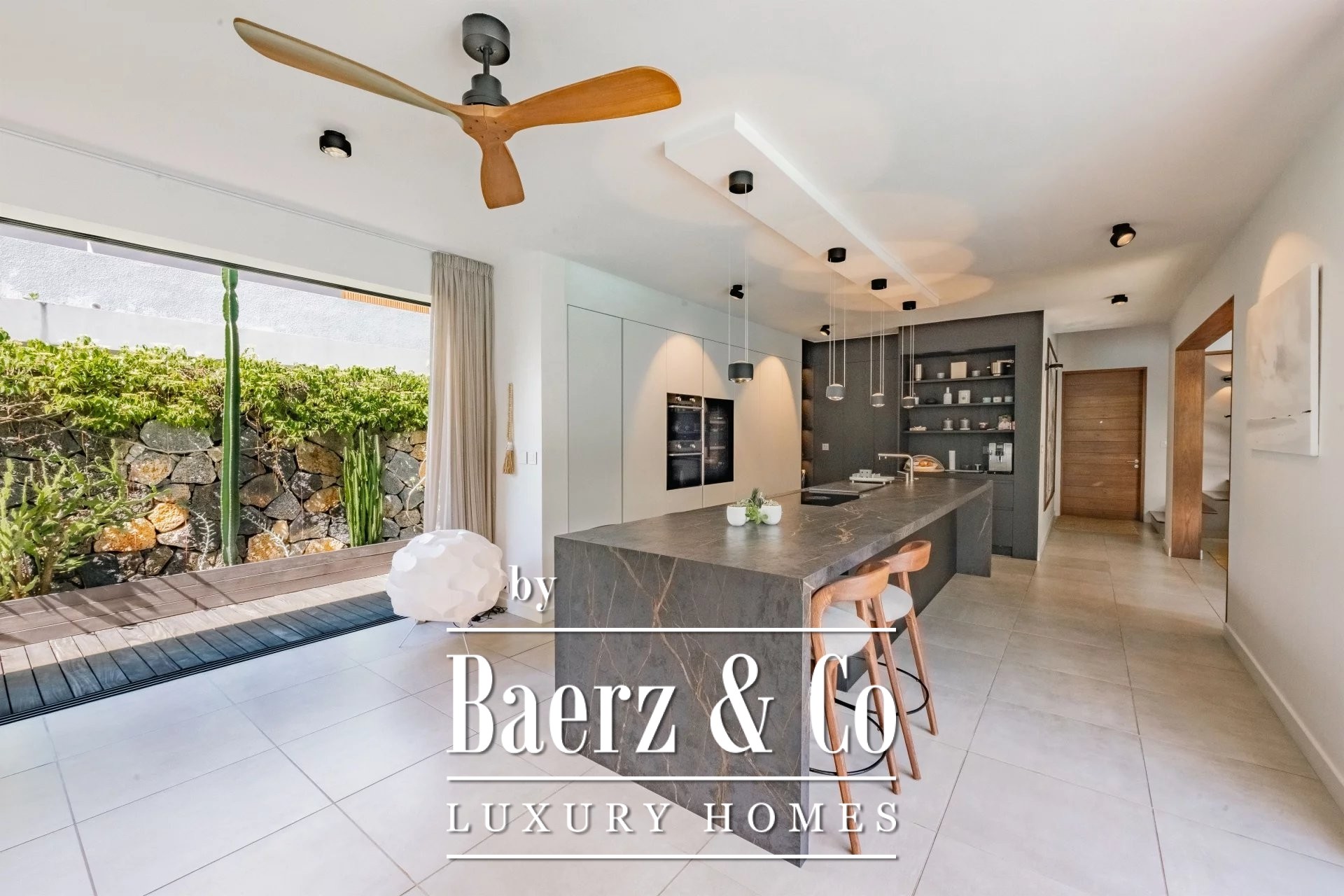 Villa Tamarin brings contemporary design and understated luxury to Mauritius, pairing 341 m² of refined living with 220 m² of terrace on a 778 m² plot. This villa Tamarin has been completely renovated, featuring high-end materials and a seamless indoor-outdoor experience rare in today’s market. Each of the three bedrooms provides a private sanctuary with en-suite bathrooms, while the ultra-modern kitchen is equipped with ASKO and BORA appliances and dressed in premium finishes.