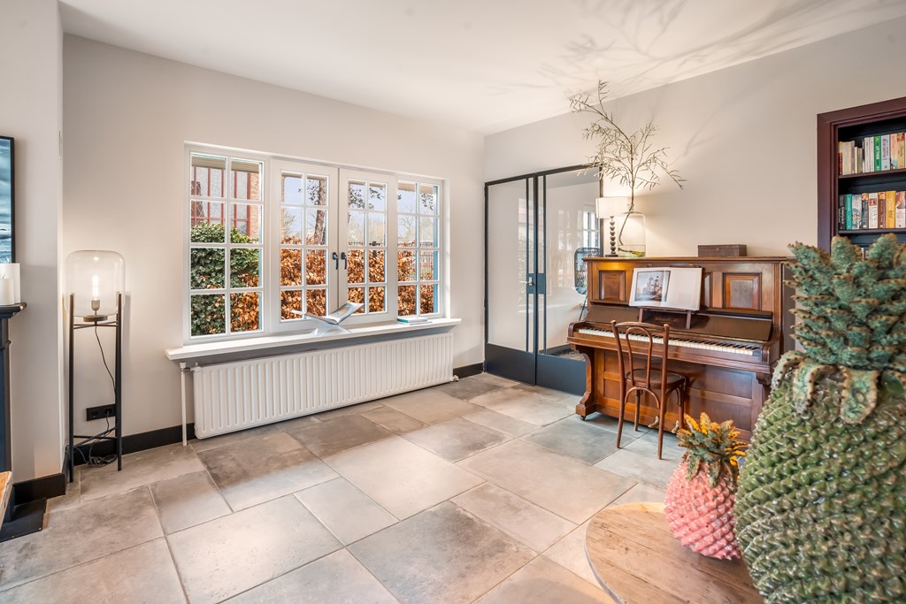 De sfeervolle woonkamer-en-suite van ca. 55 m² is heerlijk licht, voorzien van een gezellige houtkachel en vernieuwde kozijnen met roedeverdeling. Alle wanden en het plafond zijn in 2025 strak gestuct en geschilderd. Vanuit de eetkamer kijkt u vrijuit over de fraaie tuin met als eyecatcher de ruime en moderne veranda met bar en houtkachel. In de eetkamer is ruimte voor een grote familietafel en deze ruimte beschikt over een gashaard voor extra warmte en sfeer. Op de gehele begane grond is een prachtige nieuwe tegelvloer aangebracht.