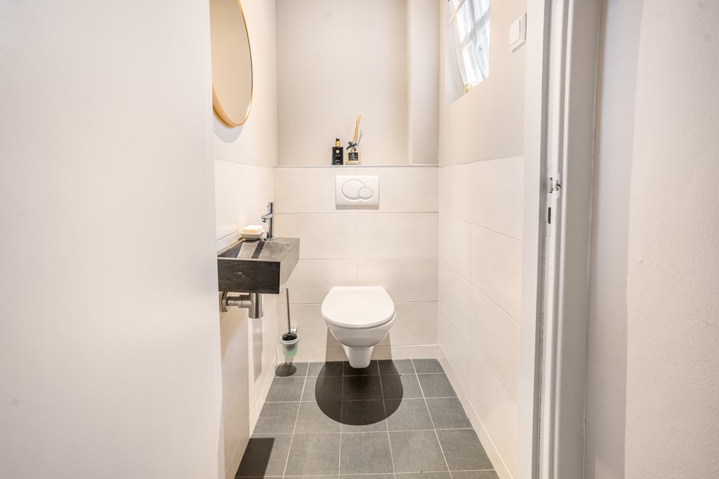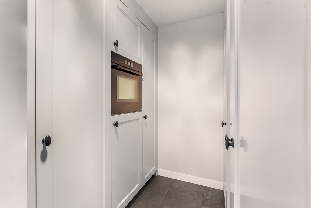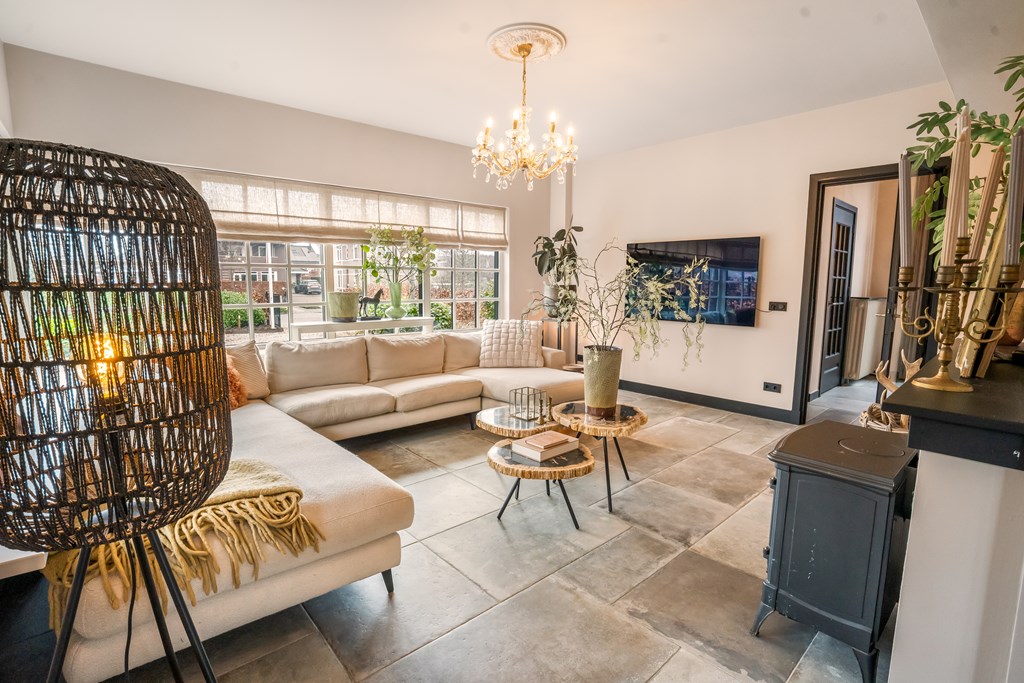 Villa Veenendaal stands as a testament to thoughtful restoration and bespoke craftsmanship. This 1937 villa, 'Domus Paterna', is gracefully set along Kerkewijk, offering 160 m² of living space and a generous plot of 1,043 m². The property exudes authenticity, with features such as a vestibule, original glass-in-lead, a living room en-suite, and a staircase with a landing. Expanses of light and classic finishes define each room, while a modern veranda with wood stove and bar overlooks lush, landscaped gardens for privacy and outdoor enjoyment.