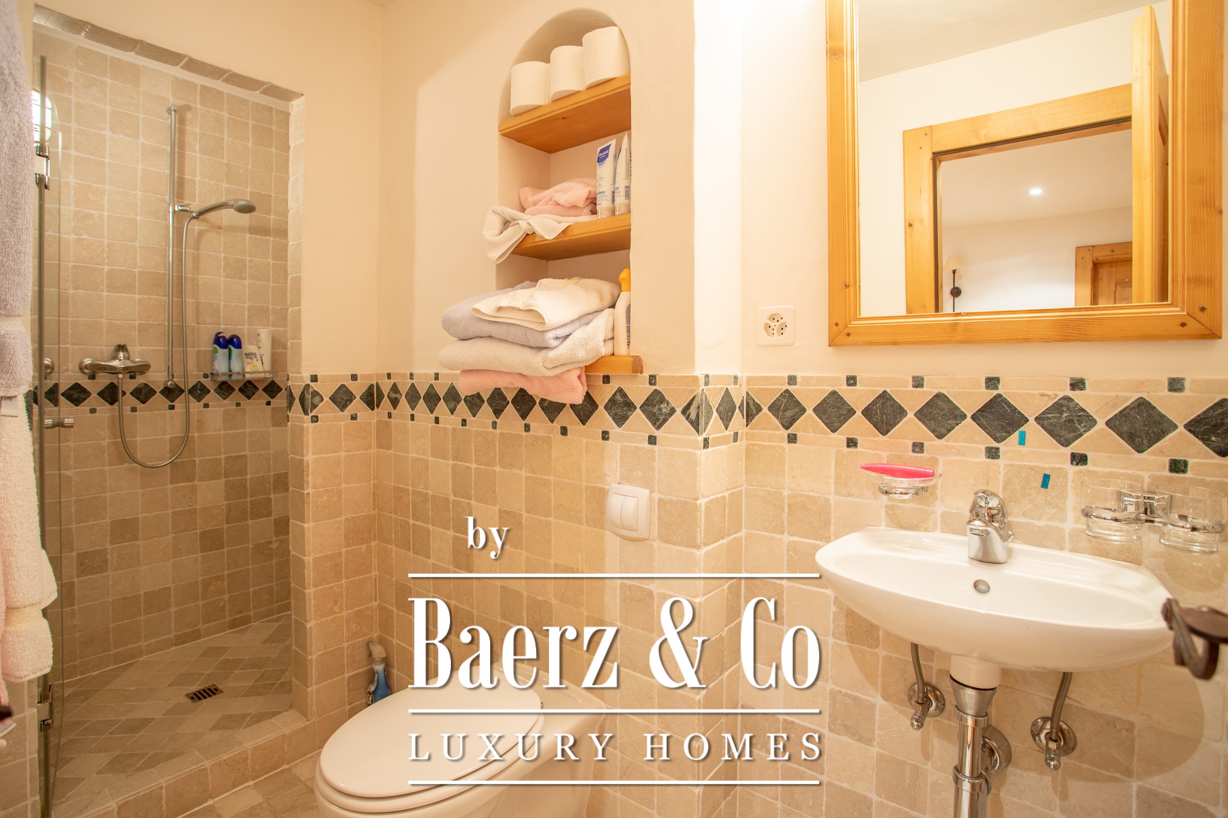 a breathtaking view of the valley and enjoy a sublime fireplace. On the same floor you can enjoy the open kitchen and dining room under the roof. In the attic is the master bedroom with its bathroom and dressing room. On the first floor there are two other bedrooms with bathrooms. Let's move on to the mazot. It consists of a living room, dining room and two further bedrooms and a bathroom.