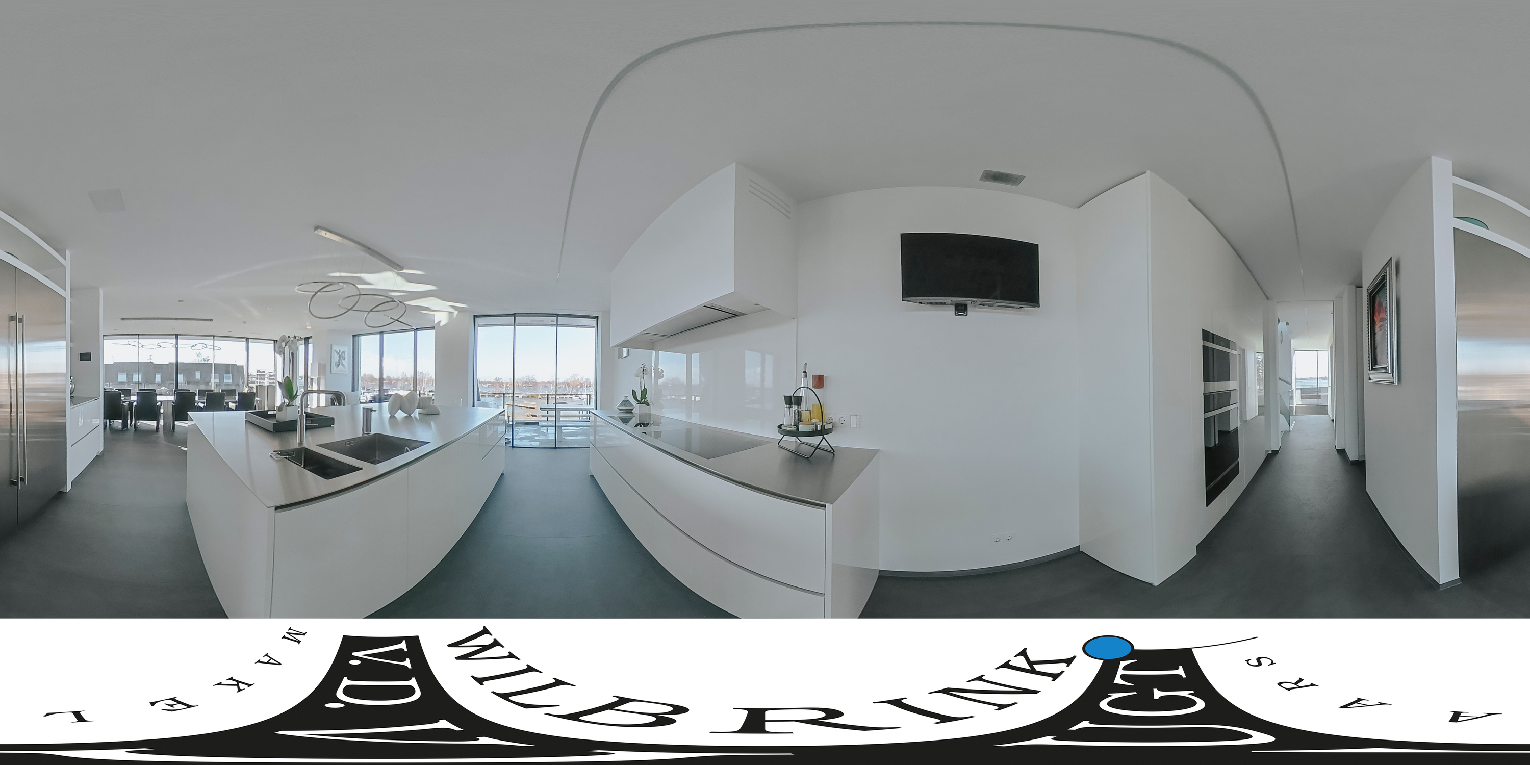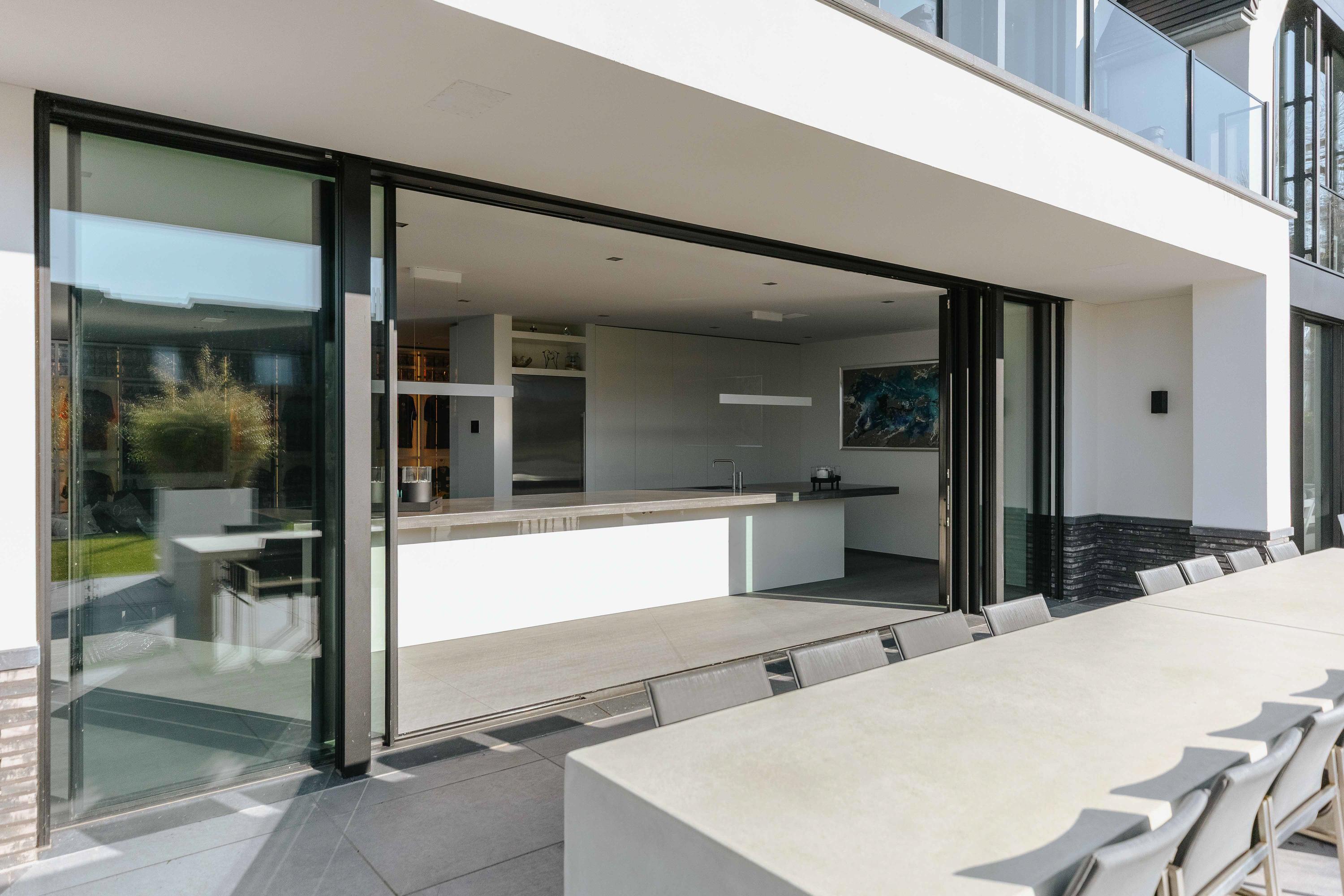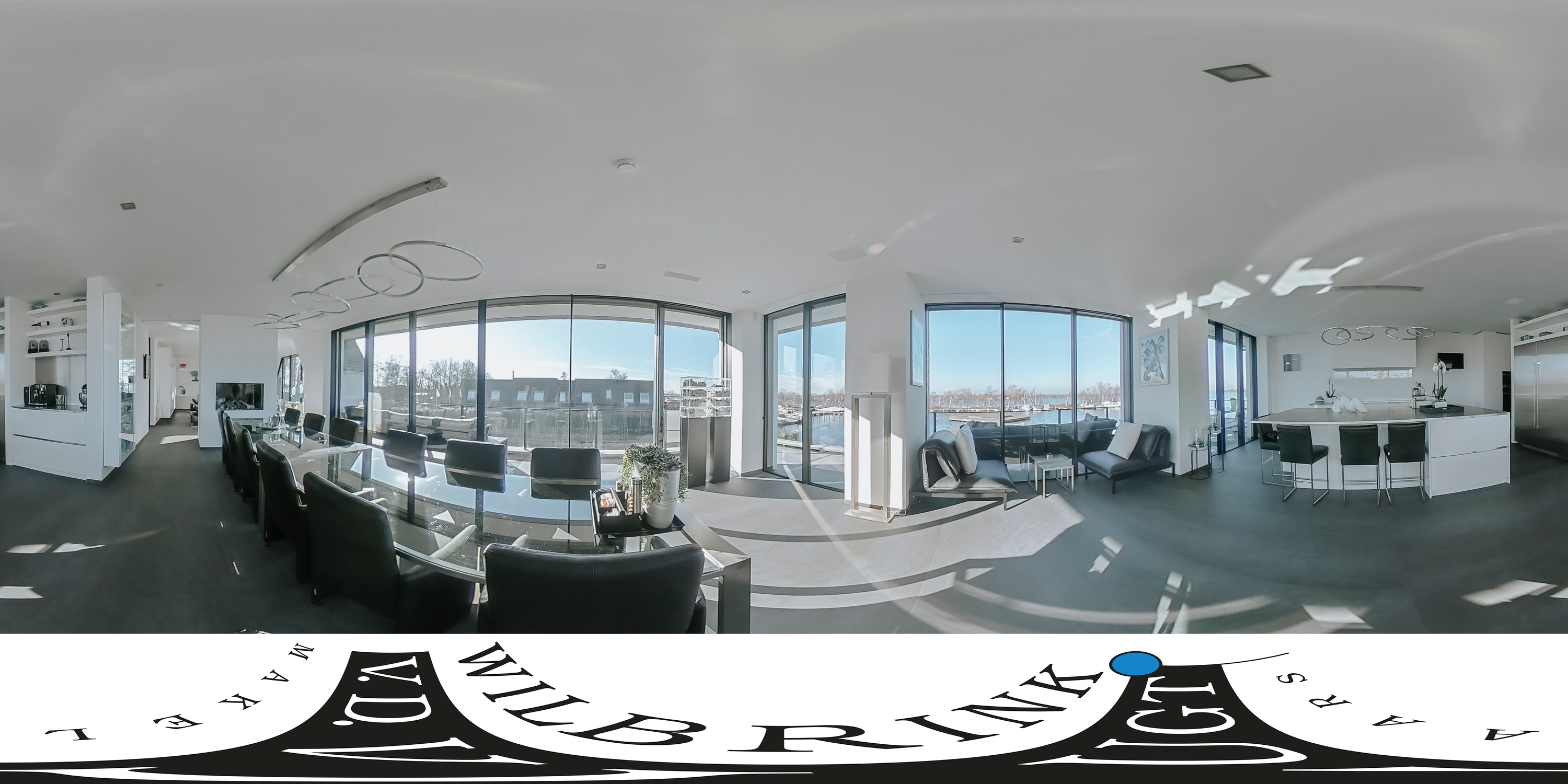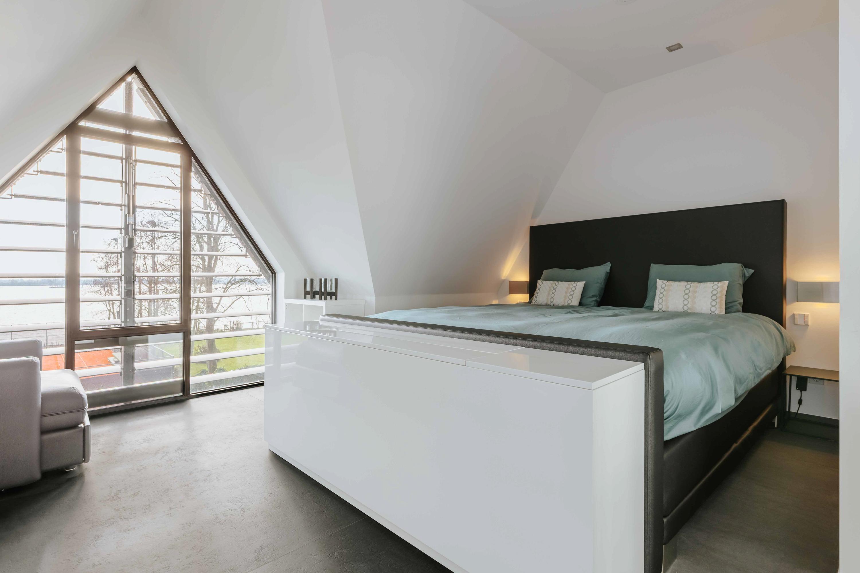 The villa is spread over several levels and has a passenger lift that can reach all levels. The spacious living area is located on the first floor and is characterized by impressive light thanks to floor-to-ceiling windows all around. Inside and outside flow seamlessly into each other here. The luxurious designer kitchen (Lodder) with high-quality built-in appliances forms the heart of the floor, flanked by a spacious dining room and living room with gas fireplaces and stylish, silently sliding steel/glass doors. From the kitchen, you can enjoy phenomenal views of both the harbor and the Vinkeveense Plassen lakes.