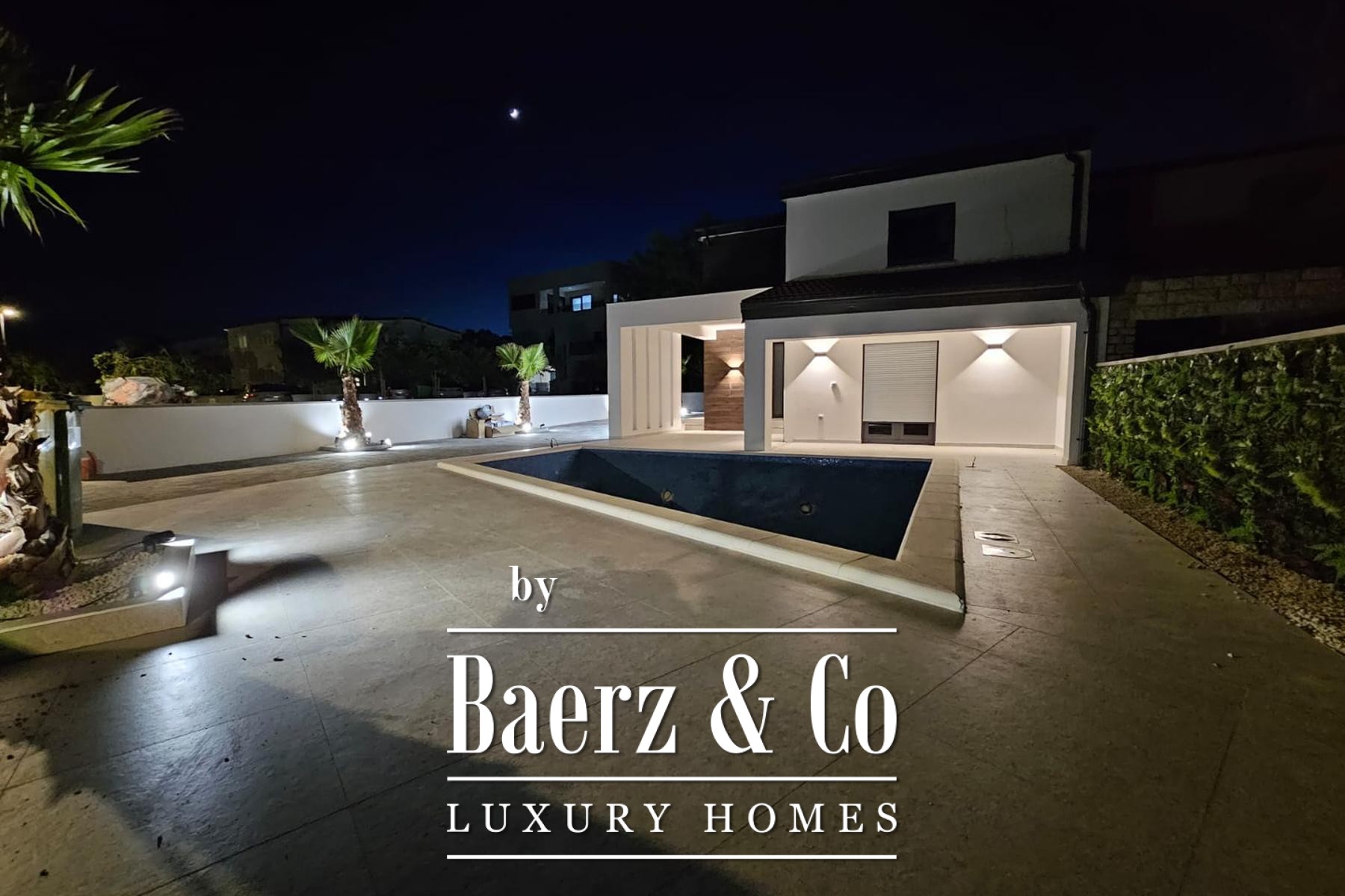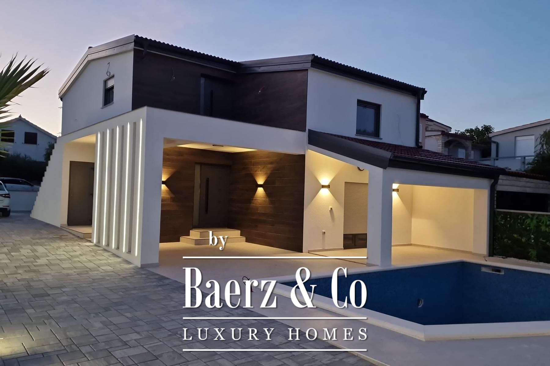 Semi-Detached House Vir presents a modern approach to multi-generational living, distinctly situated near the admired Jadro Beach on the island of Vir. This property, with its 344 m² plot, offers two completely separate apartments, each designed for privacy and comfort, making it as compelling for those seeking an extended family retreat as for the astute investor searching for a luxury villa for sale in Vir.