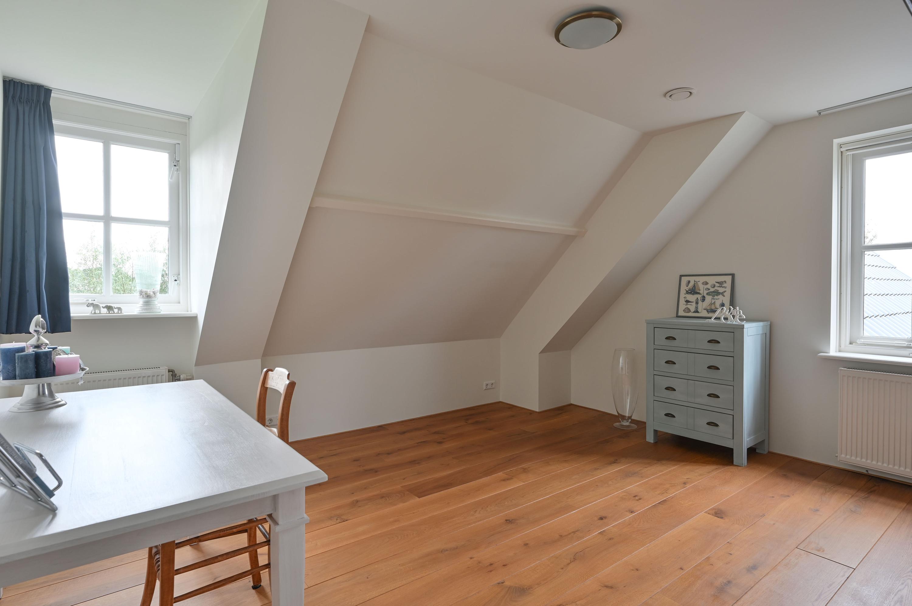 Behind the shed extends an expansive grassy field of over 30,000 m², ideal for nature and space lovers. Keeping animals such as horses, sheep, goats, or chickens is no problem here. The garden around the house is a true masterpiece of greenery and tranquility. With beautifully maintained (fruit) trees, shrubs, blooming plants, and an abundance of greenery, this garden offers an idyllic retreat for relaxation and experiencing nature. Additionally, next to the dike is a captivating natural garden where you can enjoy wildflowers and the beauty of nature in its purest form.