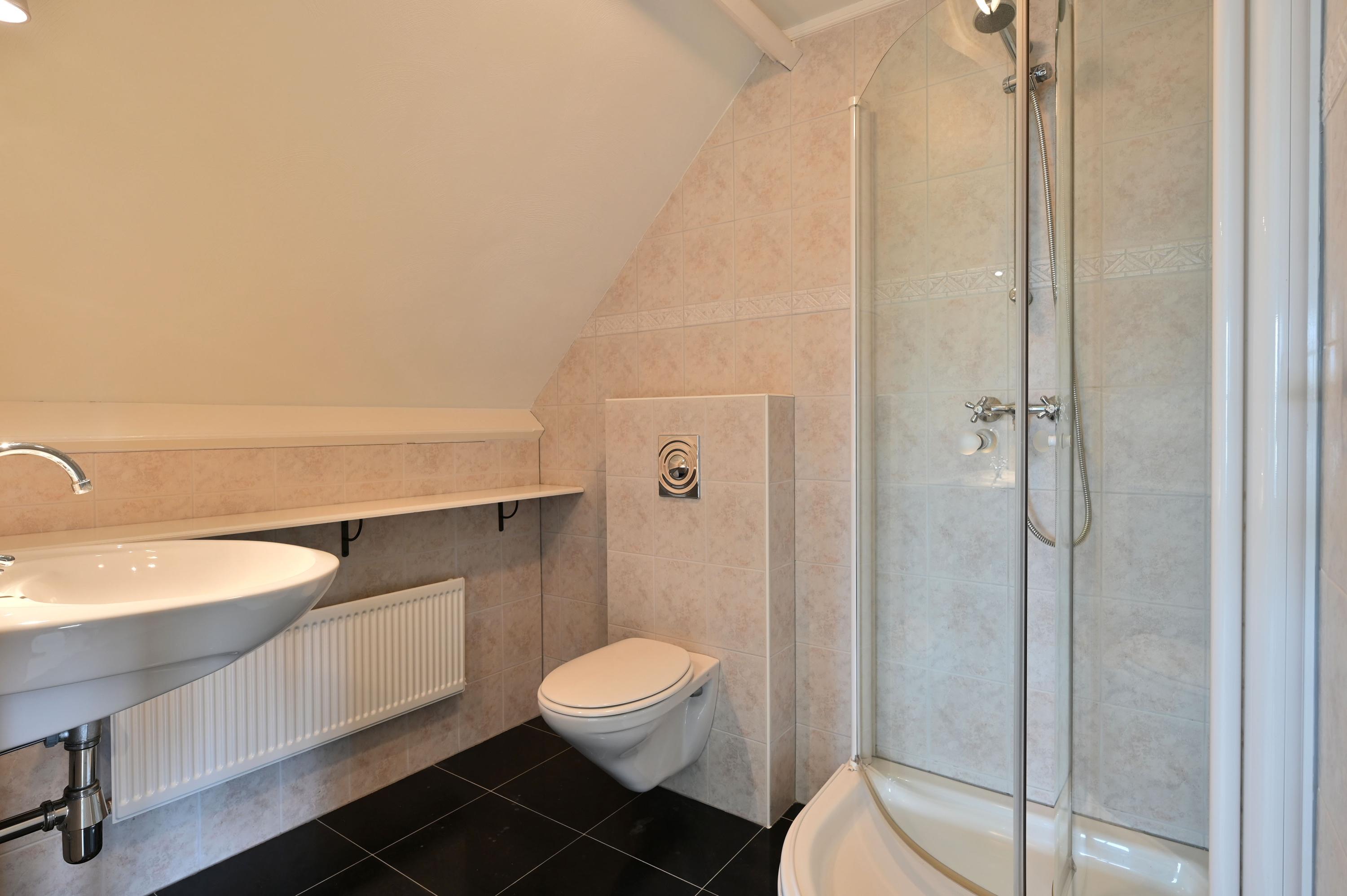 GROUND FLOOR You enter the home through the beautiful green and inviting entrance. The first thing you notice is the impressive hall with a stylish wooden staircase leading to the light-filled gallery. From this central hall, you have access to the guest toilet, the cloakroom, the upper floor, the living room, and the kitchen. The home exudes atmosphere and luxury. In the spacious, bright living room, the wood stove and the conservatory with French doors to the garden create a warm and cozy ambiance. The modern, luxurious kitchen is a place where cooking and gathering seamlessly go hand in hand. With a granite countertop, a stylish bar, induction cooktop, dishwasher, oven, refrigerator, and freezer, this kitchen is fully equipped. The ground floor features a hardstone floor with underfloor heating.