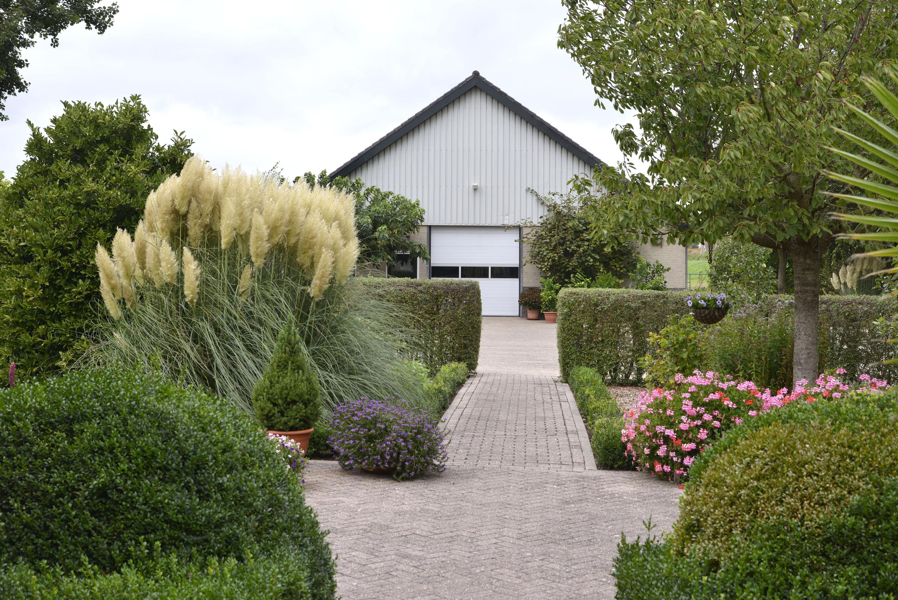 GARDEN Behind the house is a vast area where several cars can be parked effortlessly. Here you will also find an impressive shed of no less than 294 m² and a beautiful greenhouse of 1,093 m², perfect for gardening enthusiasts and for recreational space. The shed is equipped with a large overhead door on both the front and rear sides and also has a convenient walk-in door. Inside, you will find a practical office space and a toilet. The shed is not only spacious and functional but also sustainably equipped. Thanks to an efficient pellet stove, the space stays comfortably warm, while a rainwater storage system provides an eco-friendly water source. The roof is equipped with no less than 68 solar panels, making the shed nearly energy self-sufficient. These smart additions make the shed ideal not only for storage or workspace but also future-proof and environmentally friendly. From the shed, you can walk directly into the greenhouse, a paradise for anyone with green fingers. Here you can grow your own vegetables and fruits, such as juicy tomatoes or delicious grapes. A unique opportunity to realize your dream of your own nursery, with all the space and possibilities you could wish for.