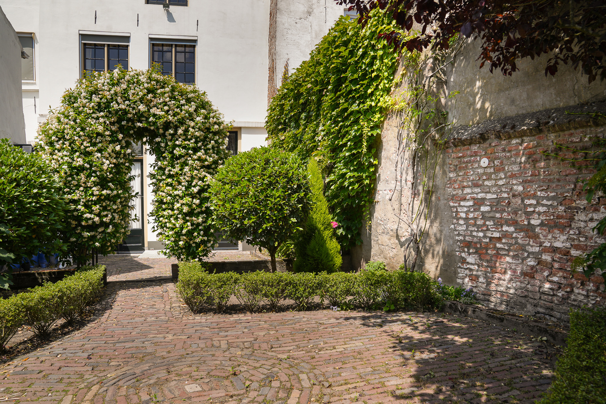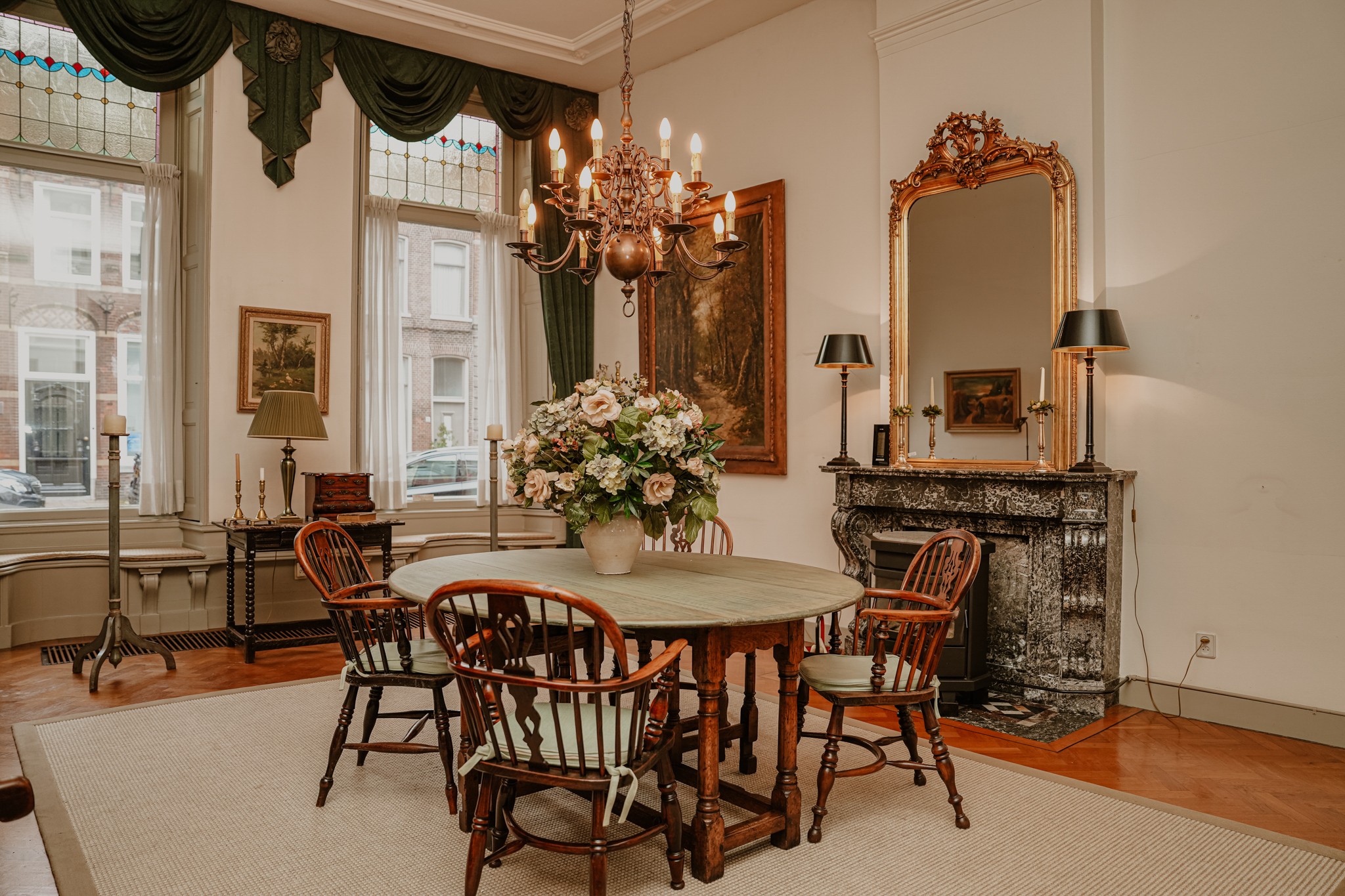 Originally dating back to the 16th century, the house features a double vaulted cellar running the full depth of the property, accessible from the garden. The property is heated via an Intergas HRe boiler. In front of the house lies a charming stone stoop with wrought-iron railings on either side. Behind the property is a delightful city garden with a rear entrance to Koningstraat. This evergreen garden is arranged with terraces paved in traditional brick, bordered by low hedges and shrub-lined beds.