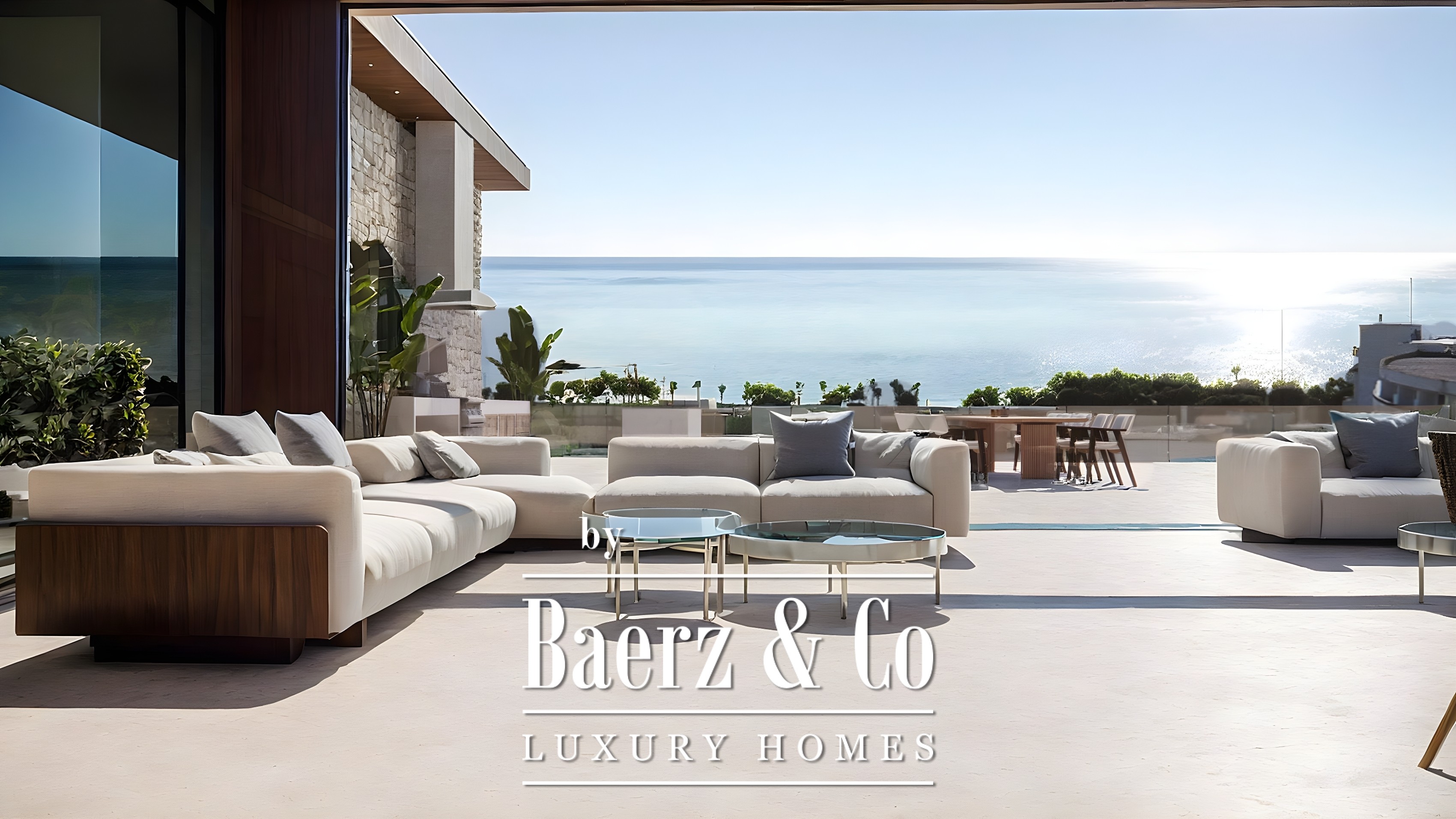 La planta superior alberga tres suites adicionales, incluida una suite principal con un espacio privado de 42 m² y vistas ininterrumpidas del Mediterráneo.