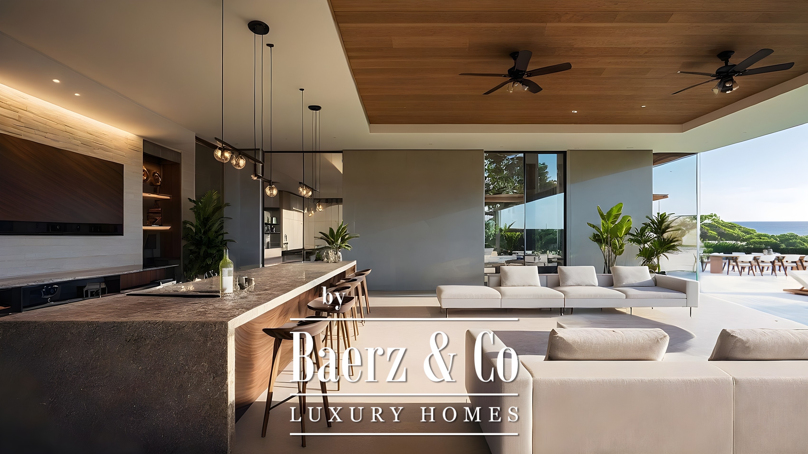 Al ingresar, la planta principal revela un salón, comedor y cocina integrados en más de 150 m², todos orientados hacia el jardín y la piscina mediante grandes ventanales que difuminan los límites entre el interior y el exterior. En este nivel, dos master suites disfrutan de baños privados y vestidores exclusivos.
