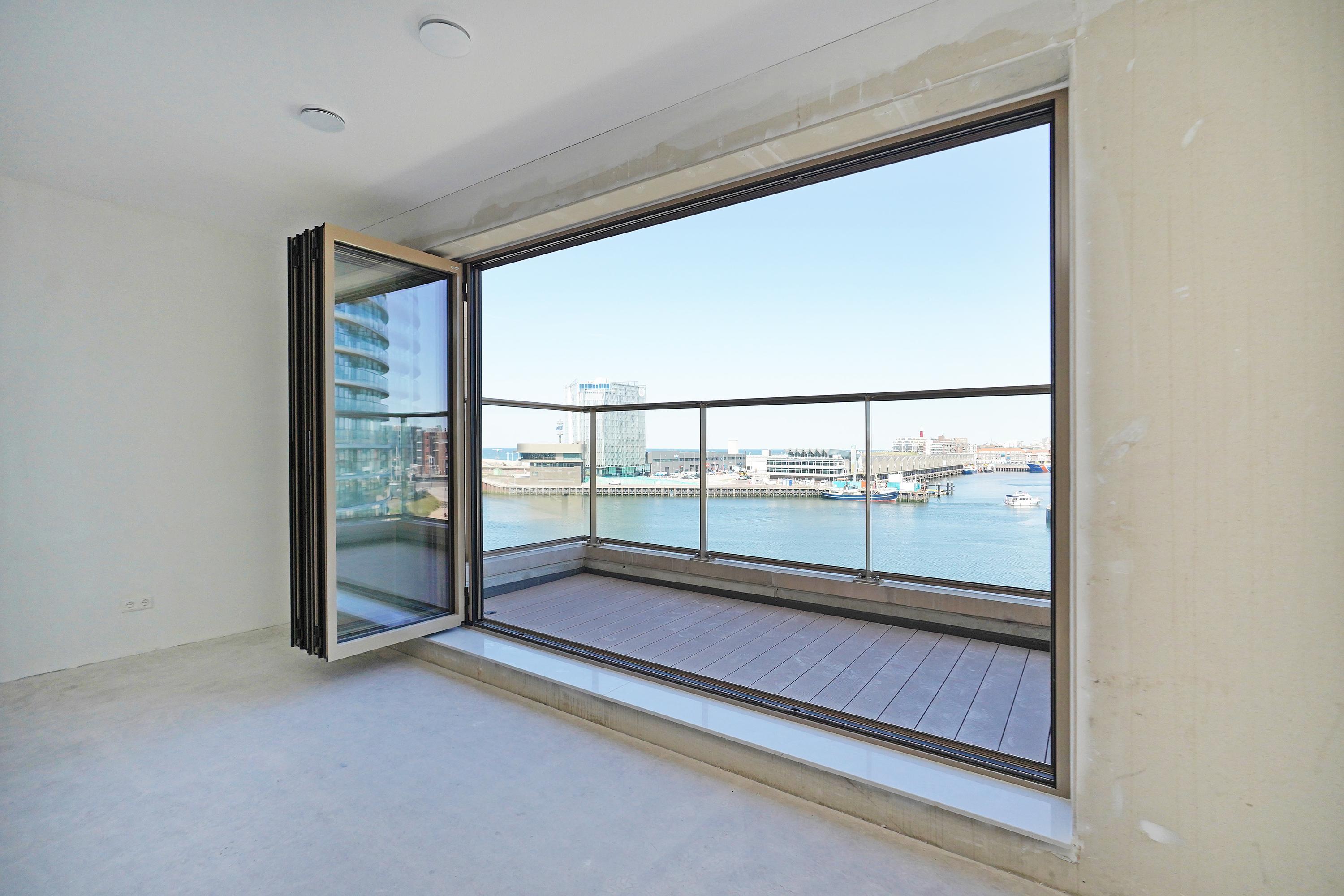entree, hal, modern toilet, moderne badkamer met inloopdouche, wastafel met wastafelmeubel en handdoekradiator (sanitair Duravit) inpandige technische ruimte / berging met warmtepomp, ventilatiesysteem en wasmachine-/drogeraansluiting, De royale woonkamer aan de havenzijde zorgt met de grote raampartijen en de vouw/schuifwand naar het balkon voor een fenomenaal uitzicht. Vanuit de woonkamer en het balkon heeft u uitzicht op de haven van Scheveningen en de zee, een levendig uitzicht dat nooit gaat vervelen door de aan- en afvarende vissersboten en plezierjachten en de vele watersporters.