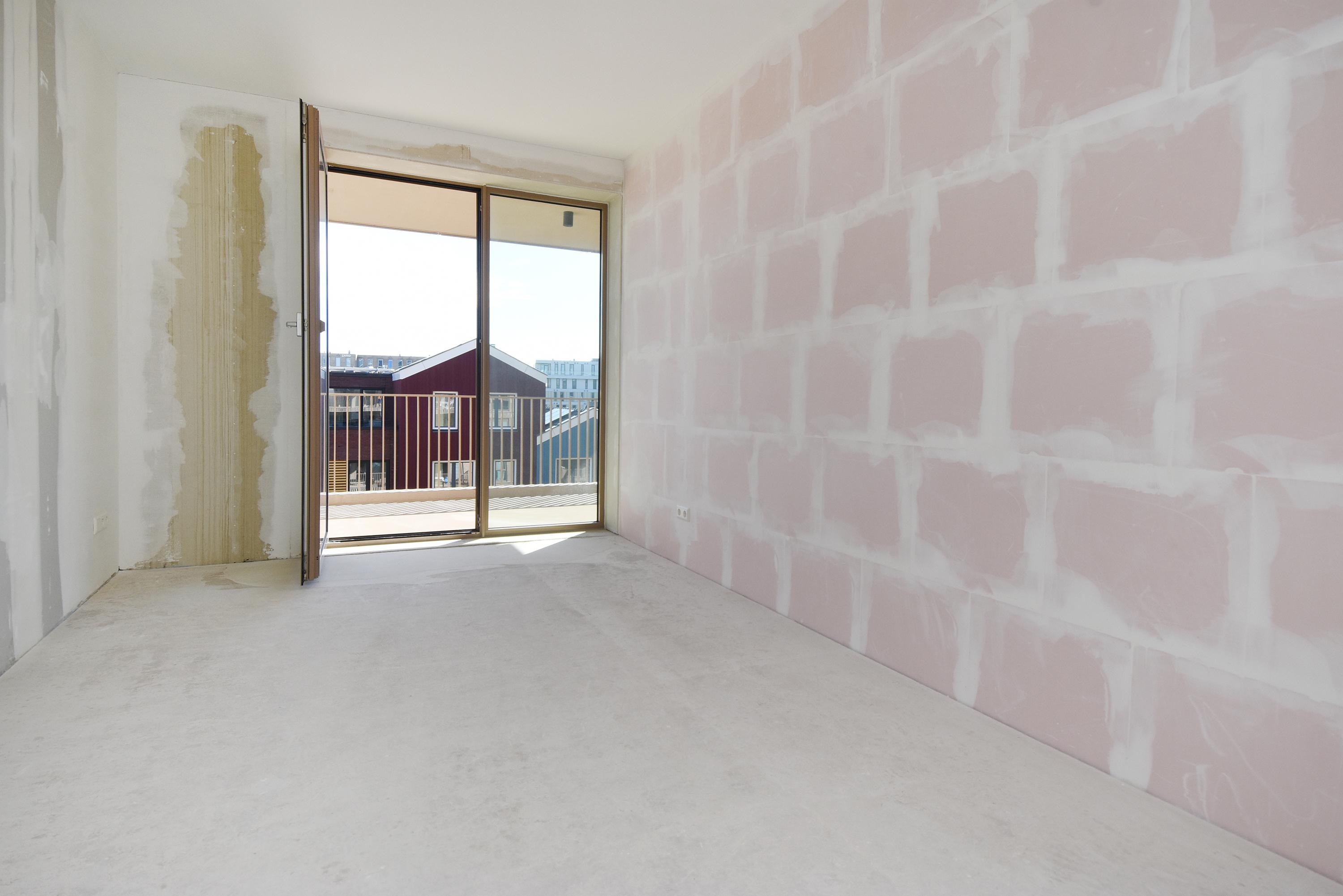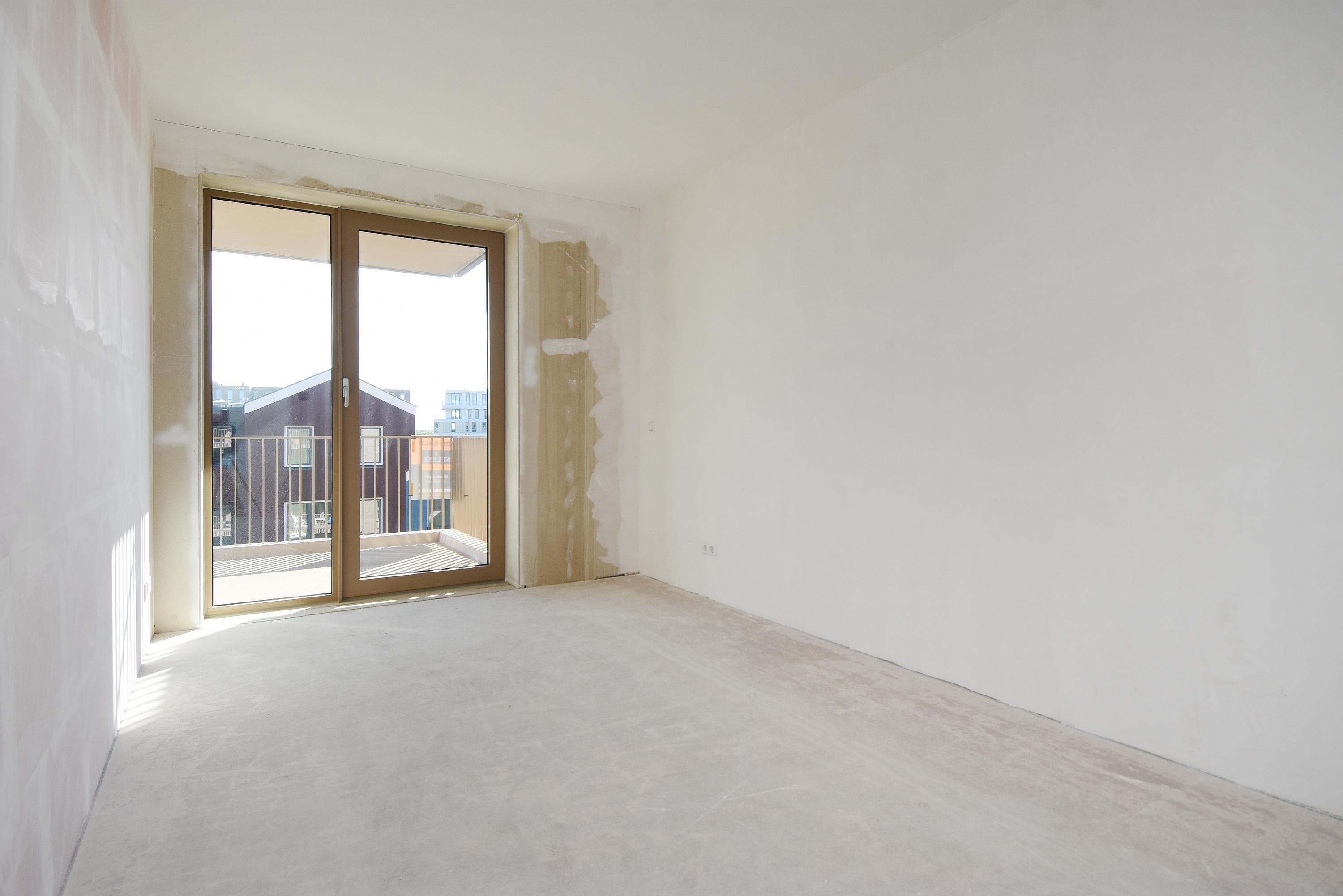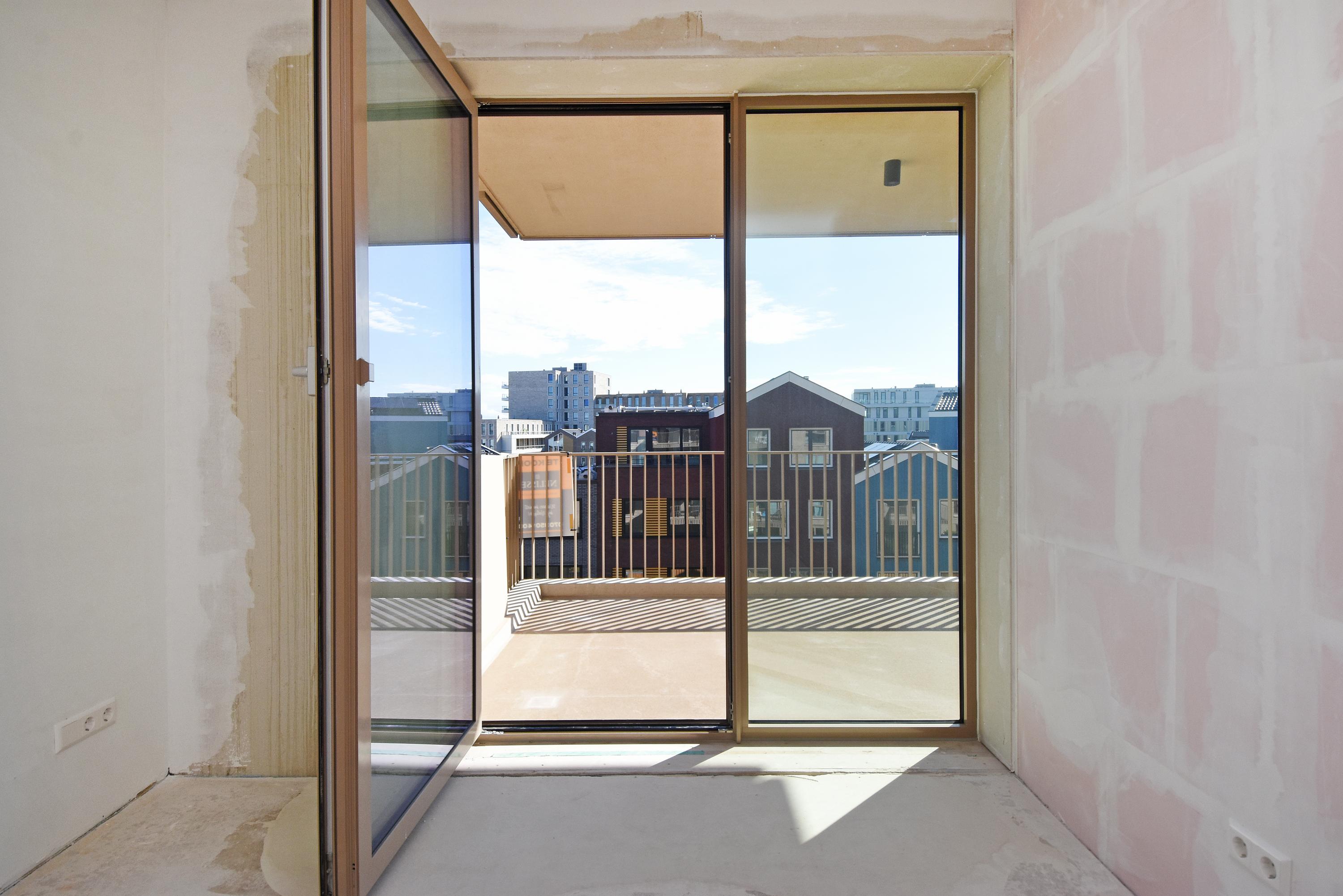 De open NEXT-125 keuken met een hoekopstelling is voorzien van een composiet aanrechtblad en inbouwapparatuur: inductiekookplaat met geïntegreerde afzuiging, vaatwasser, koel-/vriescombinatie Quooker en combi-oven. Aan de achterzijde van het appartement bevinden zich 2 slaapkamers, welke beide toegang geven tot het riante zonnebalkon op het zuiden met zicht op de gezamenlijke binnentuin.