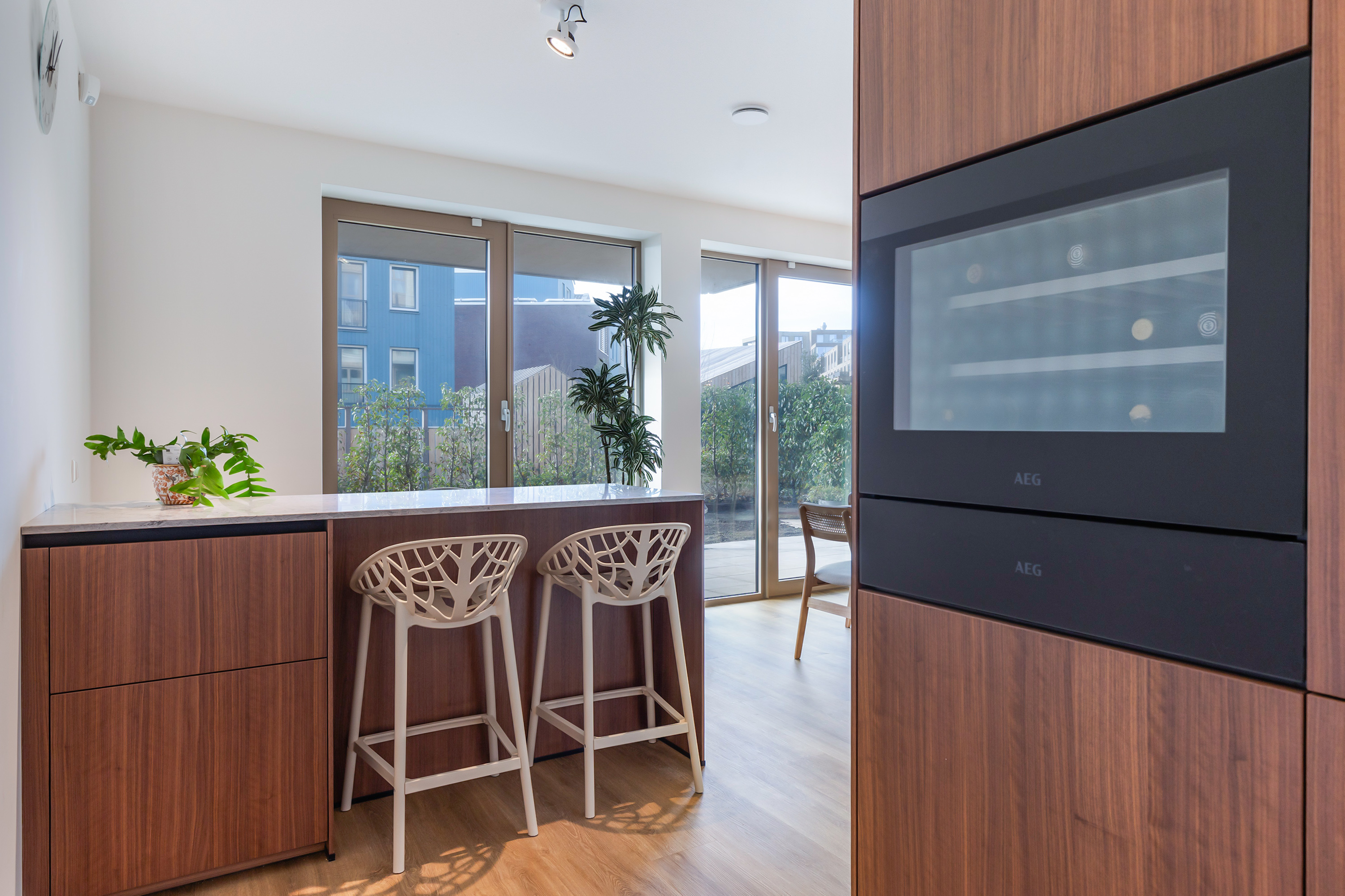 Met 123 m² woonoppervlakte en een afwijkende, ruimtelijke indeling ademt het appartement verfijning en comfort. Alle woonvertrekken zijn uitgerust met vloerverwarming en vloerkoeling. Met een warmtepomp en een geavanceerd WTW-systeem dat zelfs restwarmte uit douchewater benut, is dit een bijzonder energiezuinig, gasloos appartement met Energielabel A+++ dat is opgeleverd in 2025.