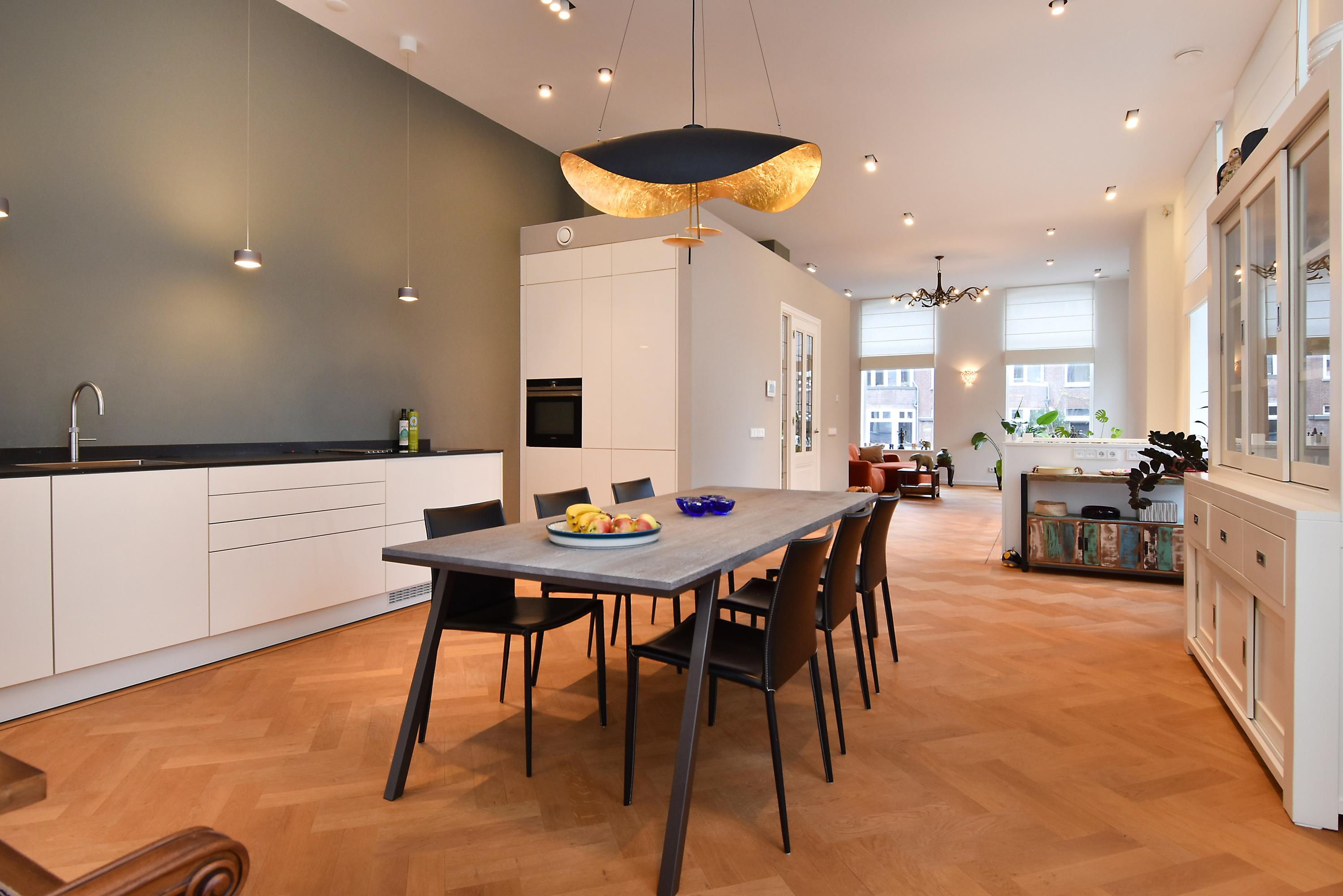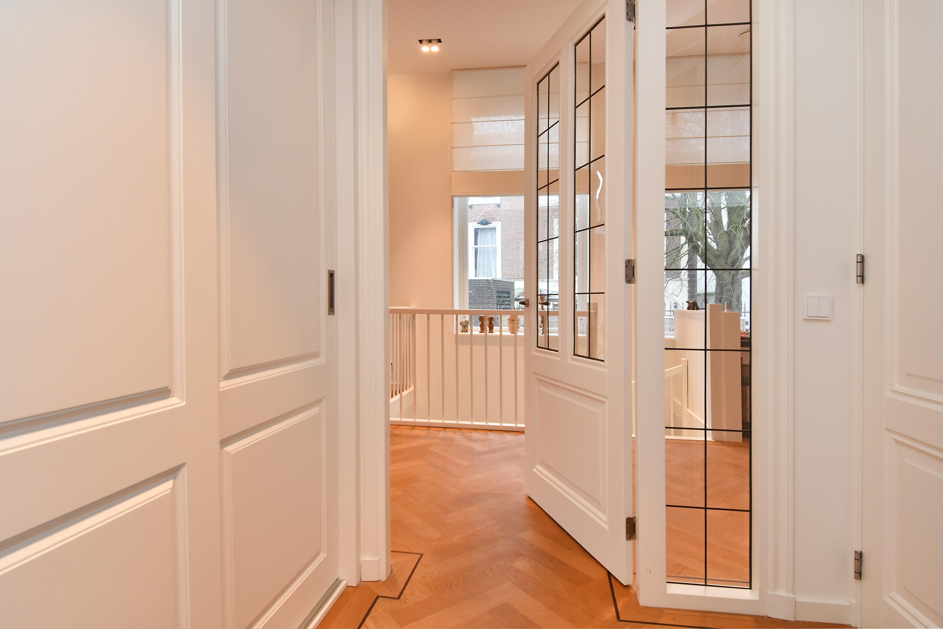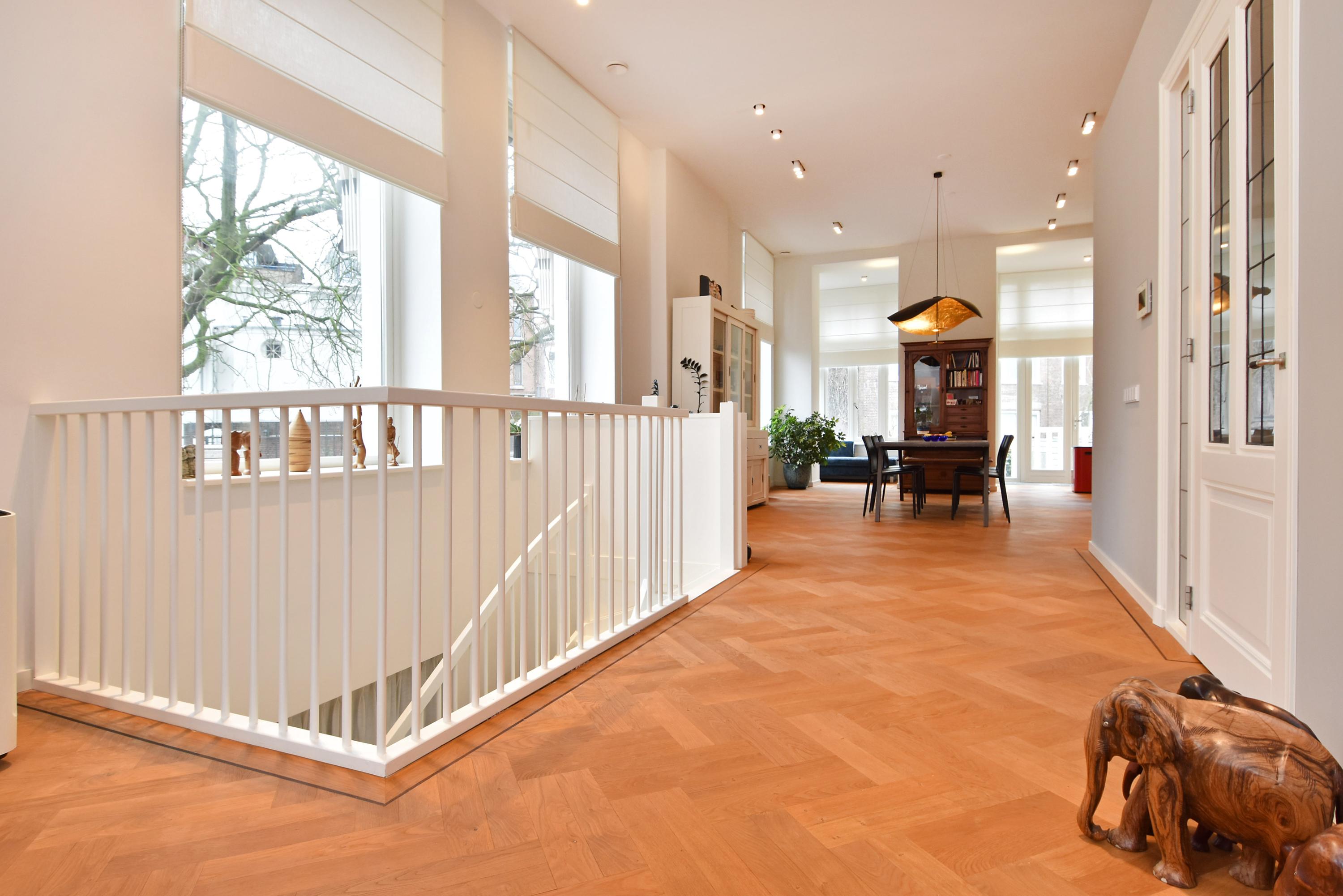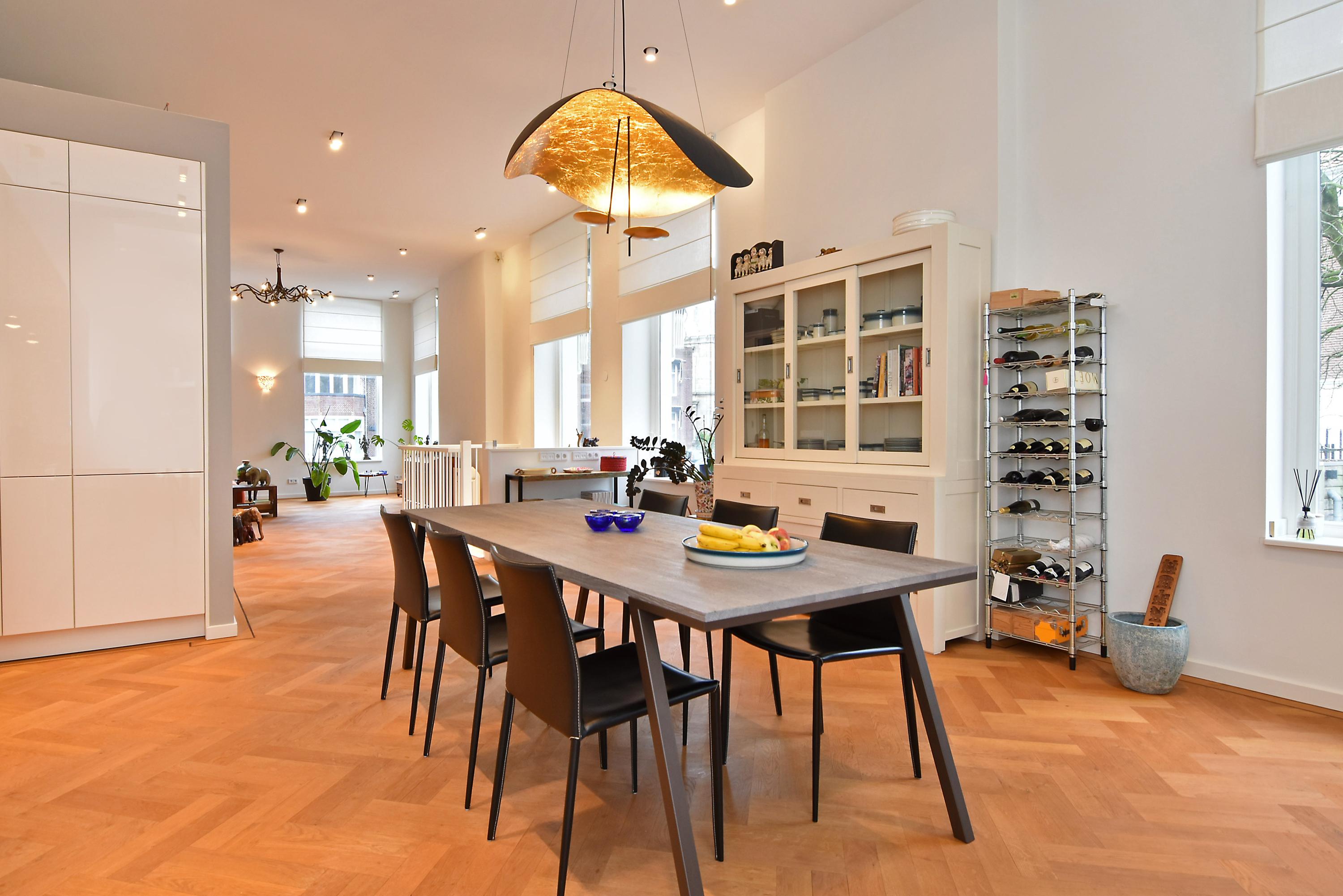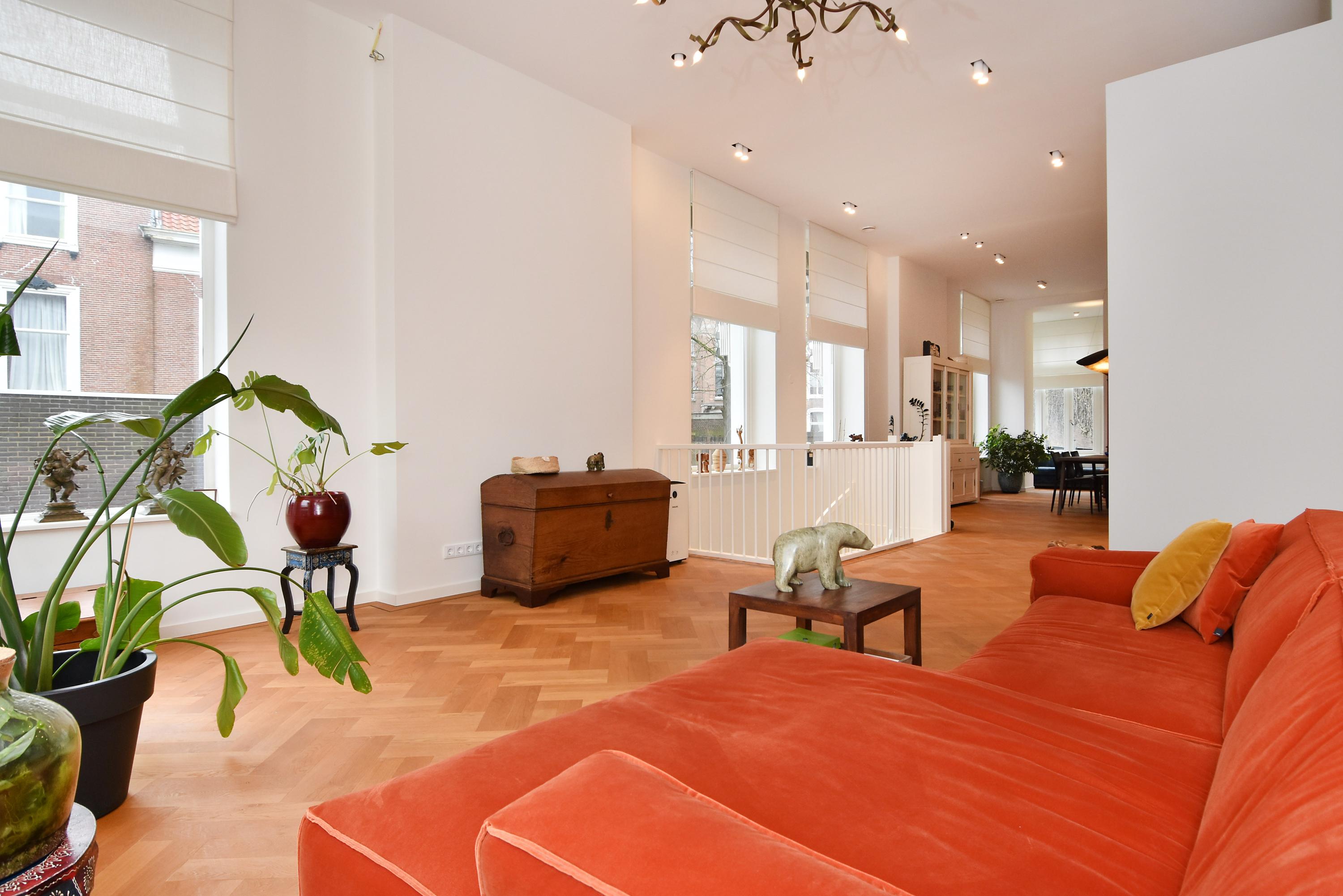 Het appartement is 181m2 groot. De woonverdieping is boven straatniveau wat meer privacy geeft. De slaapkamers zijn gelegen in het souterrain: 3 slaapkamers, een kledingkamer, 2 ruime badkamers en een berging voor een wasmachine en droger. Naast het gebouw zijn 2 privé parkeerplaatsen met een laadpaal. In de achtertuin is een eigen berging en een achteringang. Het huis is volledig voorzien van domotica waarmee verwarming en licht bediend kunnen worden. Daarnaast zijn er, met behulp van een design lichtplan, spots aangebracht die zorgen voor een aangename verlichting. Het appartement is luxe afgewerkt met diverse inbouwkasten.