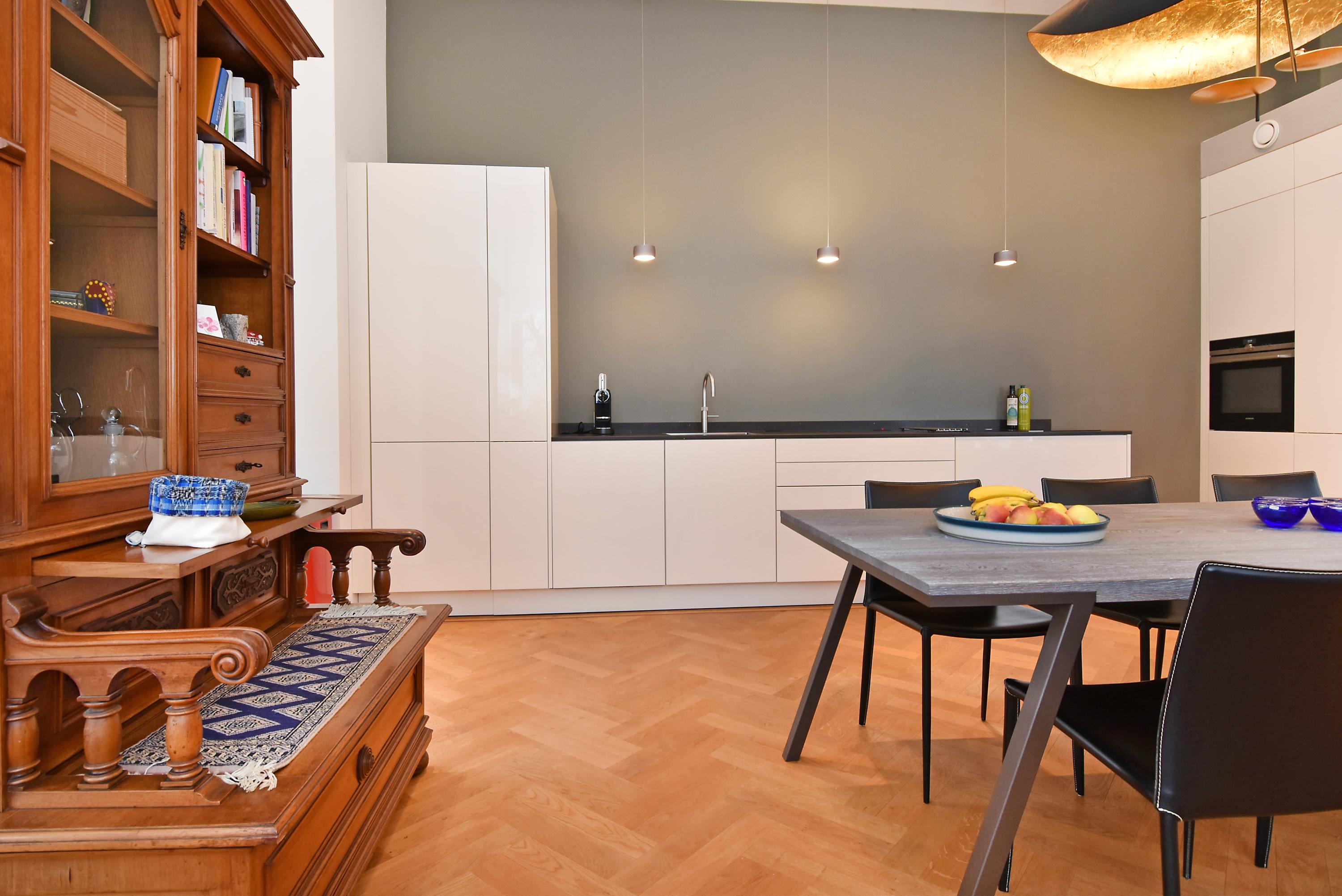 Exceptionally spacious (ca. 181m2) 3-bedroom, 2-bathroom duplex apartment with garden, storeroom, and 2 off-street parking places just steps from the many fine dining and cultural venues in the lively city centre.