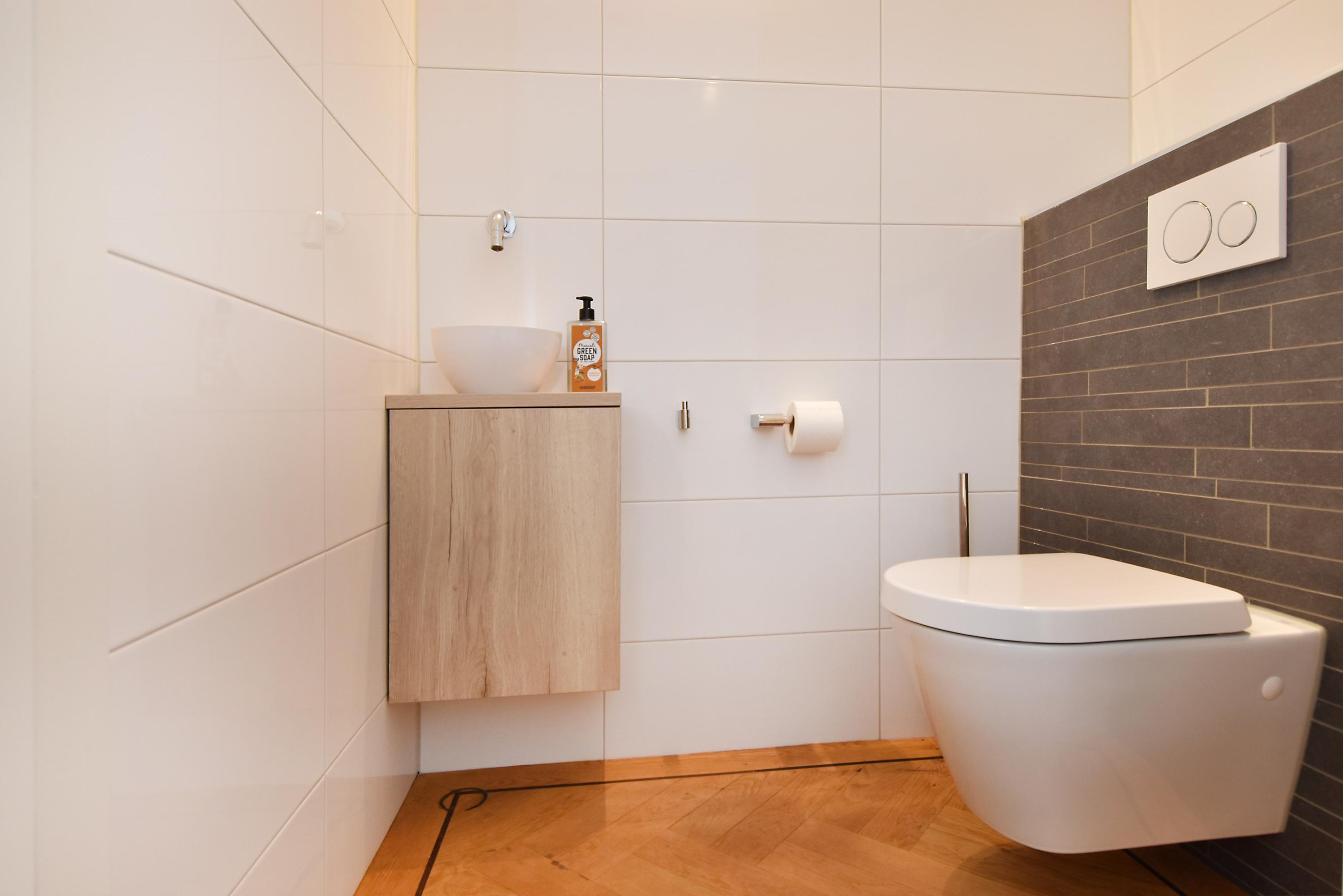 Bij binnenkomst in het appartement komt u in een hal met modern toilet en fonteintje, garderobe- en meterkast. Vanuit deze hal betreedt u de fraaie en ruim opgezette woon-/eetkamer met open woonkeuken. Wat direct opvalt zijn de vele hoge ramen en daardoor de lichtinval. Doordat de woonkamer hoger ligt dan straatniveau overziet u de straat. De woonverdieping is geheel voorzien van een fraaie eiken visgraat parketvloer met bies en vloerverwarming. De keuken is voorzien van diverse inbouwapparatuur: een koel-/vriescombinatie, een vaatwasser, een Quooker met close-in boiler, een inductie kookplaat met kookveldafzuiging en oven. Door de hoge plafonds van bijna 4 meter met inbouwspots voelt het appartement nog ruimer aan.