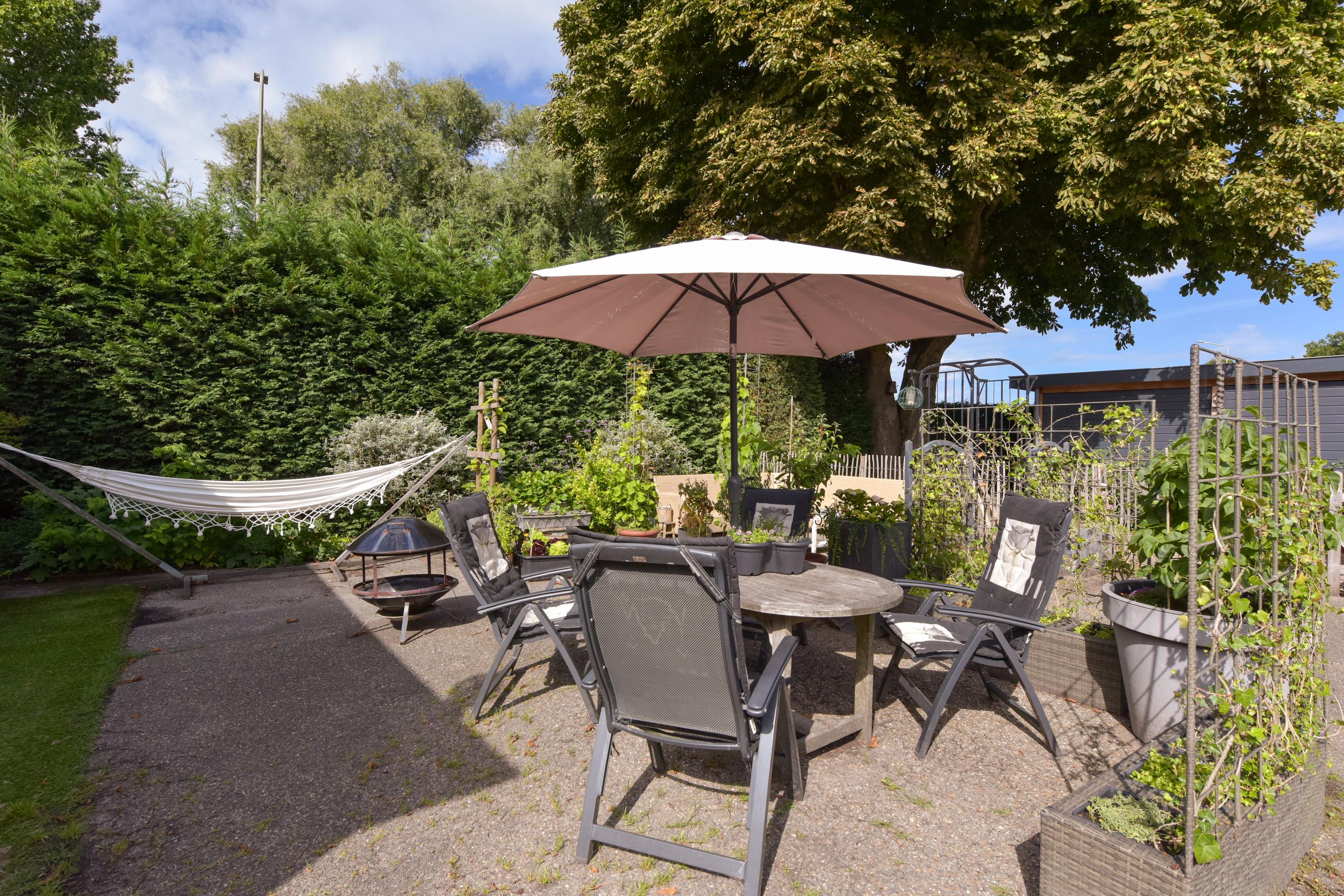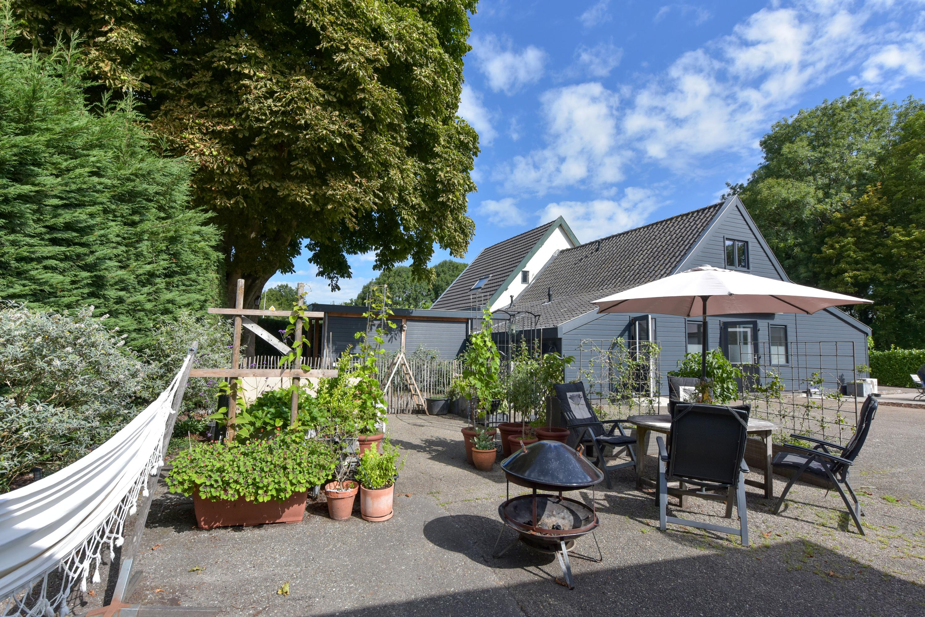 De tuin rondom de woning is een waar paradijs voor liefhebbers van buitenleven, rust en groen. Aan alle zijden van het huis is gedacht aan sfeer, comfort en gebruiksgemak, waardoor je op elk moment van de dag een fijne plek vindt om te zitten, te ontspannen of gasten te ontvangen.