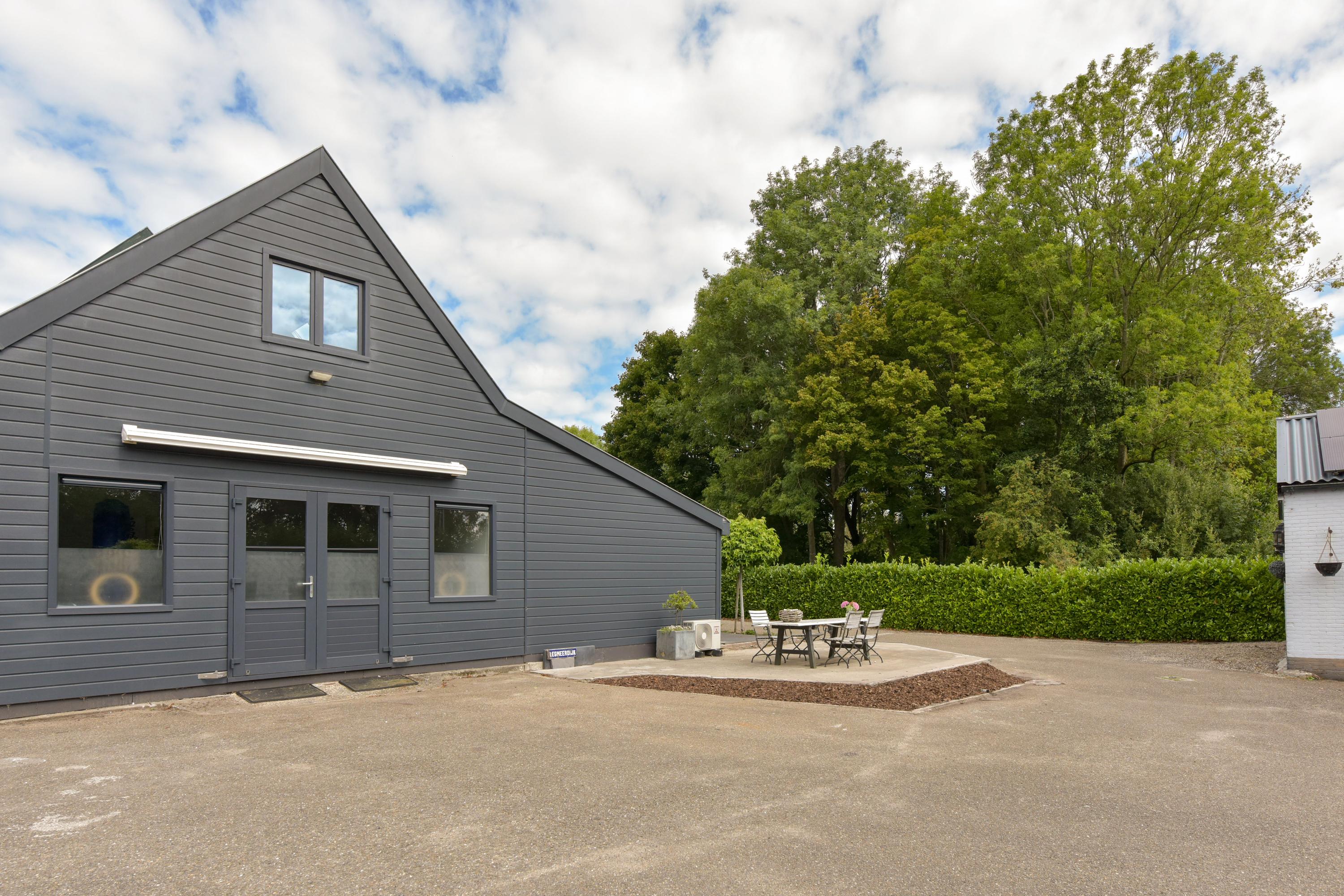 Verderop op het erf bevindt zich een vrijstaand bijgebouw dat momenteel dienstdoet als atelier met aangebouwde werkplaats — een inspirerende en multifunctionele ruimte die volop mogelijkheden biedt voor creatief werk, ambacht of opslag.
