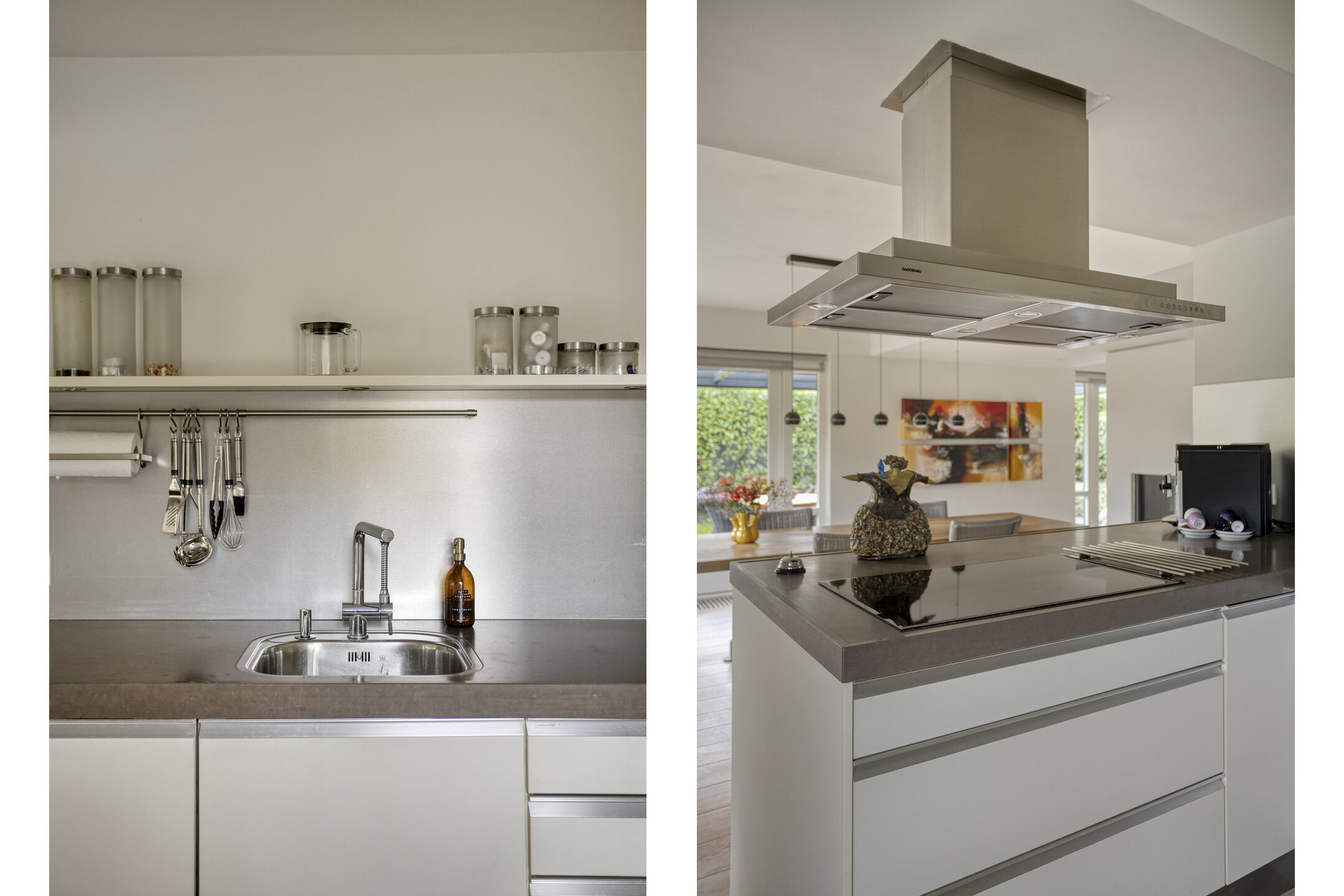 Aan de voorzijde van de woning ligt de luxe keuken. Deze is voorzien van een Belgisch zoetstenen werkblad en recent vervangen topapparatuur van Bosch, AEG en Gaggenau, zoals een vaatwasser, koel-vriescombinatie, stoomoven met bordenwarmer, 4pits inductiekookplaat en afzuigkap. Een genot voor iedere kookliefhebber! De tuingerichte woonkamer ligt aan de achterzijde van de woning en is door de grote glazen pui heerlijk licht. Hier heeft u ruimte voor een fijne zithoek met breed uitzicht op de prachtig aangelegde tuin aan het water en het natuurpark Egmonderhout.