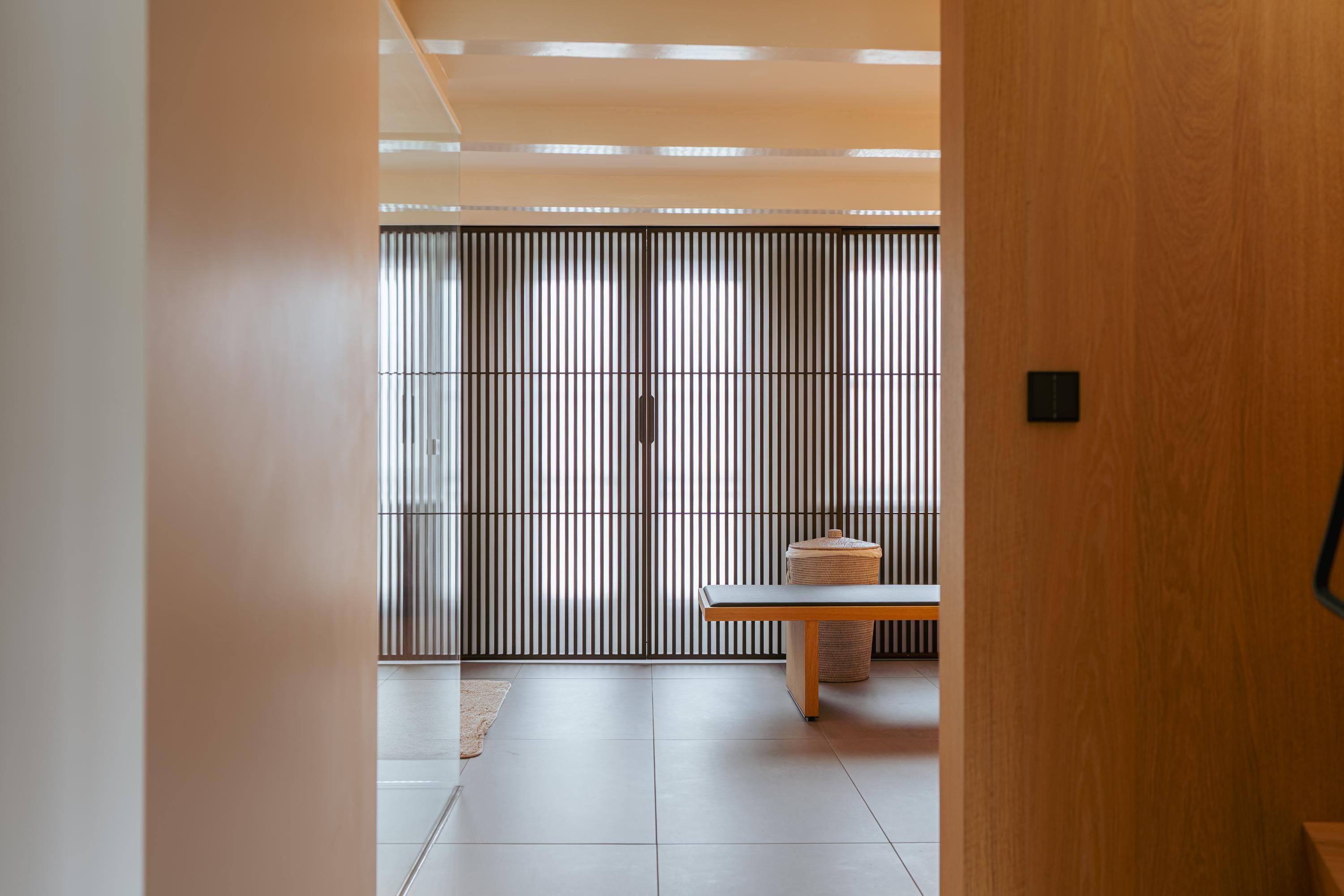 De bovenste verdieping van het pand is volledig ingericht als exclusieve master bedroom – een stijlvolle oase van rust, ruimte en comfort. Centraal op deze etage bevindt zich een ruime walk-in closet, voorzien van op maat gemaakte kasten die niet alleen praktisch zijn, maar ook bijdragen aan de serene uitstraling van de ruimte. Aan de voorzijde vindt u de sfeervolle slaapkamer, waar authentieke plafondbalken en een indrukwekkende nokhoogte direct in het oog springen. Hoge ramen tot in de nok zorgen voor een overvloed aan natuurlijk licht en versterken het gevoel van openheid en ruimte. Ook hier zorgen ingebouwde kastenwanden voor een strak en opgeruimd geheel. Aan de achterzijde ligt de luxueus uitgevoerde badkamer, een ware wellnessruimte in eigen huis. Hier treft u een elegant vrijstaand Agape Spoon Woodline ligbad als eye-catcher, een dubbele wastafel met stijlvol meubel, een bijzonder royale inloopdouche, stoomcabine én een ingebouwd ligbed voor ultieme ontspanning. De ruimte is afgewerkt met warme materialen en doordachte details, waaronder ingebouwde verlichting die een gevoel van hotel-luxe oproept. Prachtige houten schuifpanelen dienen zowel als zonwering als sfeervol designelement en zorgen voor privacy zonder het daglicht buiten te sluiten. Het toilet is separaat gesitueerd.