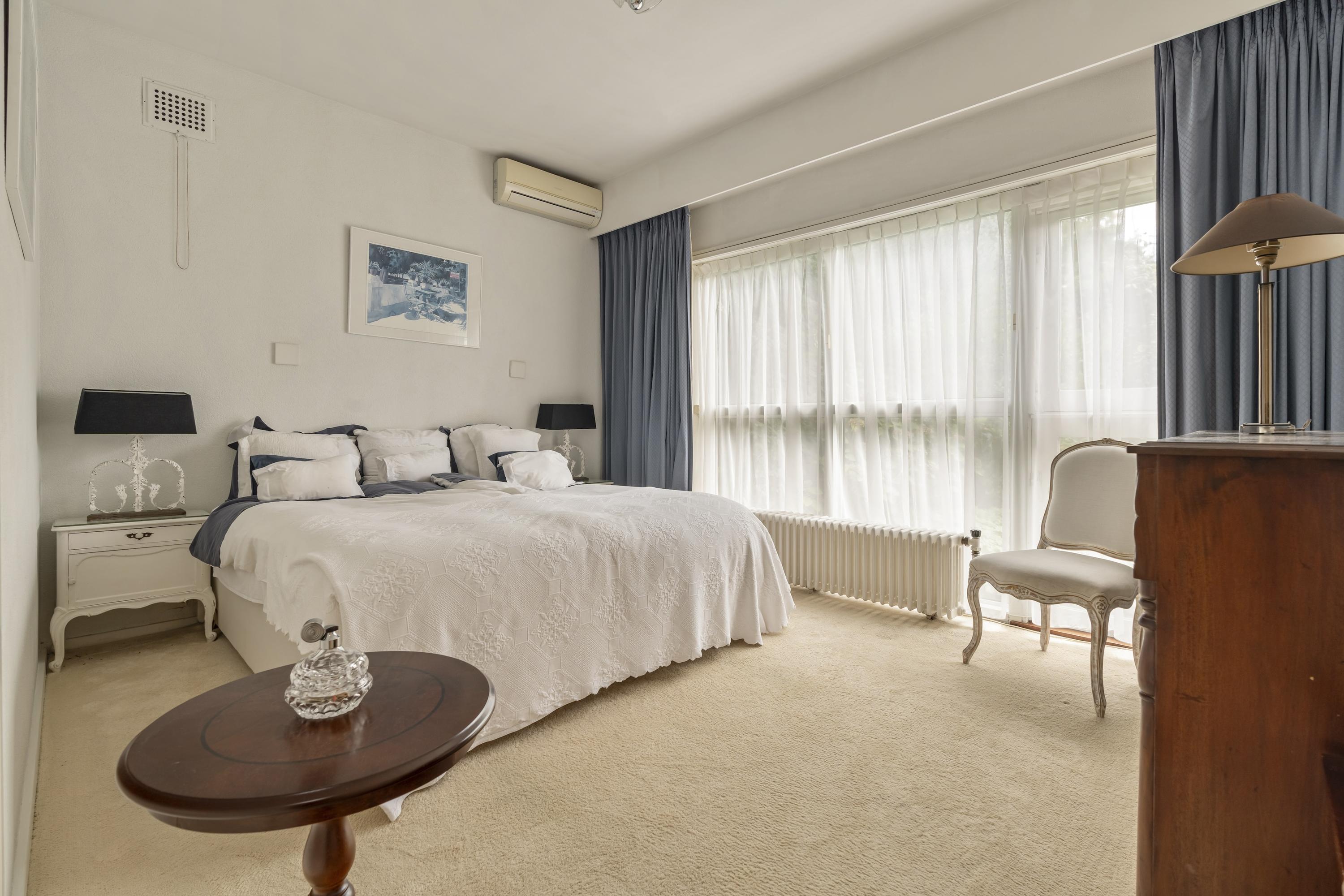 De woning wordt betreden via de groene voortuin. Bij binnenkomst biedt een kleine hal toegang tot de garage aan de voorzijde. Deze ruime garage, voorzien van een elektrische deur, biedt plaats aan twee auto's. De centraal gelegen hal — met een dakraam dat zorgt voor overvloedig daglicht — verbindt alle vertrekken van de woning. De woonkamer vormt het hart van het huis en is voorzien van grote raampartijen en schuifdeuren naar de royale, op het zuiden gelegen tuin van circa 116 m². Hier geniet u van veel zonlicht en privacy. De woonkamer beschikt bovendien over een airco-installatie. De keuken is uitgerust met luxe inbouwapparatuur, waaronder een 4-pits inductiekookplaat met geïntegreerde afzuiging, oven, vaatwasser en een koel-vriescombinatie. Via de langgerekte hal bereikt u de overige vertrekken. Hier bevinden zich drie goed bemeten slaapkamers, die elk directe toegang bieden tot de achtertuin. De master bedroom, gelegen aan het einde van de hal, beschikt eveneens over een airco-installatie. Aangrenzend bevindt zich de badkamer, voorzien van een dubbele wastafel met meubel, toilet en ligbad. Langs de gehele hal zijn praktische ingebouwde kasten geplaatst. Tot slot leidt een trap vanuit de hal naar het souterrain, dat door de huidige bewoners wordt gebruikt als extra woonkamer, compleet met een ingebouwde bar — een ideale ruimte voor ontspanning of vermaak.