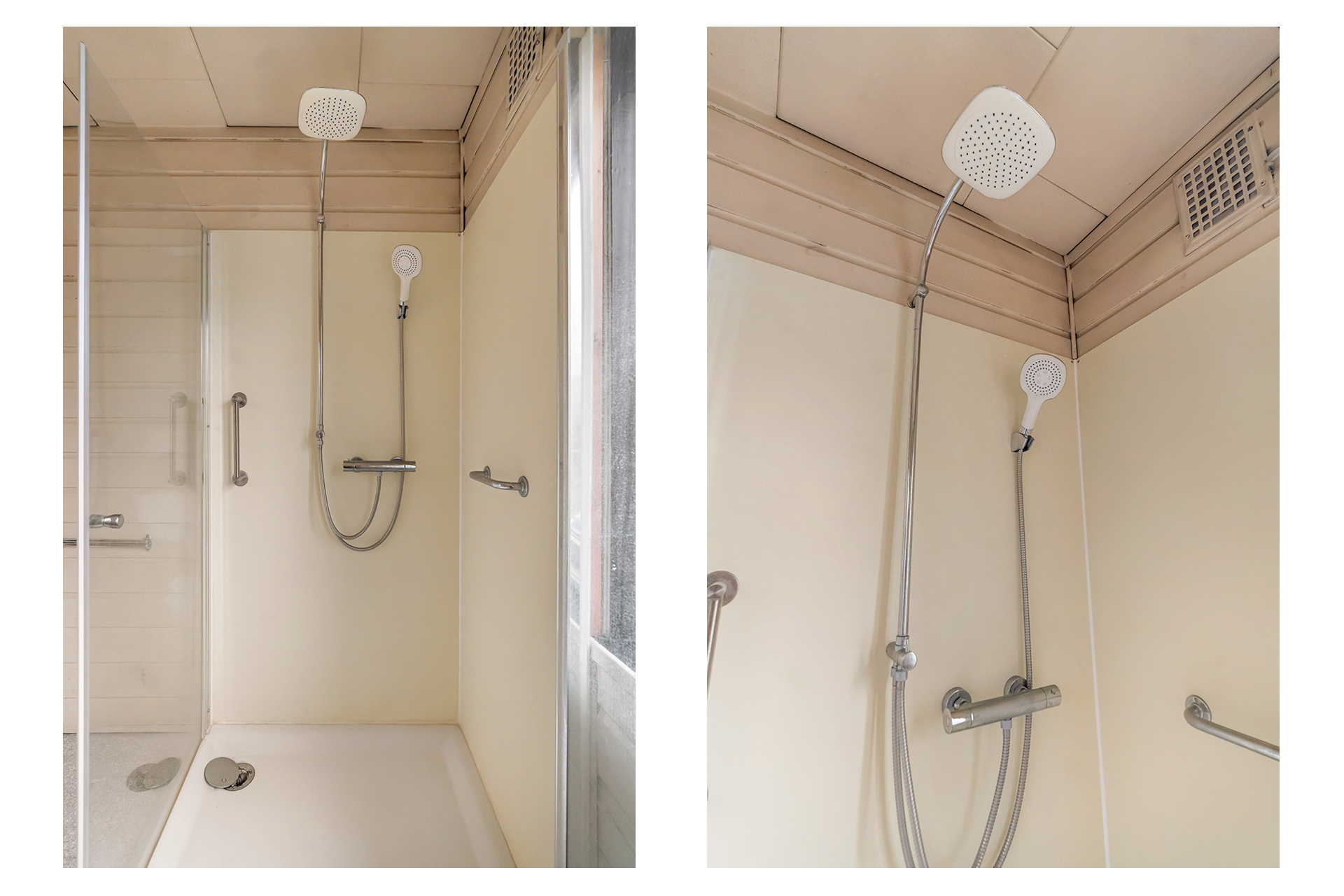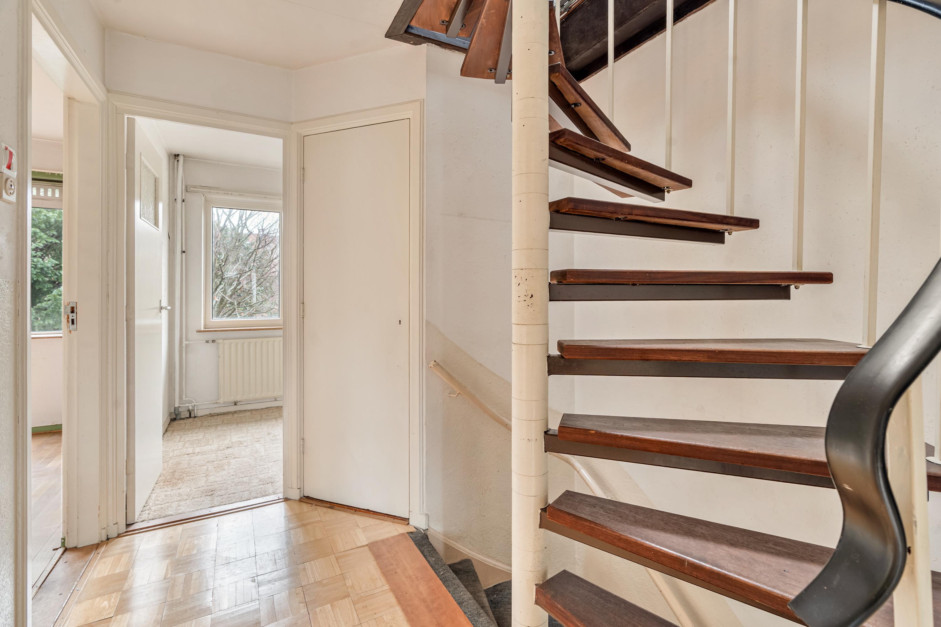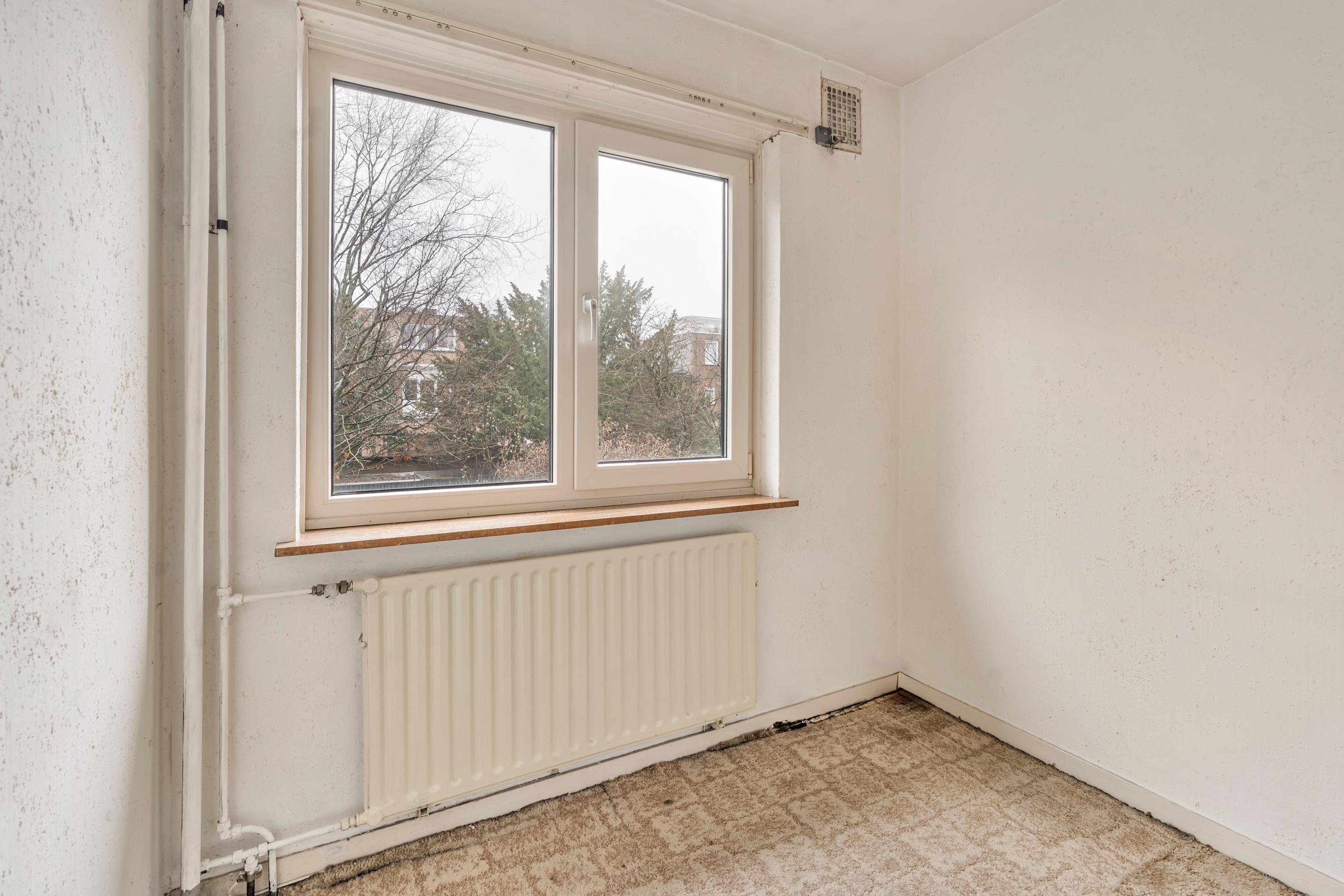 Op de eerste verdieping bevinden zich drie slaapkamers van goed formaat. De slaapkamer aan de achterzijde beschikt over toegang tot het balkon, met uitzicht over de binnentuinen. De badkamer is centraal gelegen en voorzien van een douche, toilet en wastafel. Deze ruimte is vanaf de overloop en slaapkamer aan de voorzijde te betreden en biedt mogelijkheden voor modernisering of herindeling. Vanaf de overloop geeft een vaste spiltrap toegang tot de tweede verdieping.