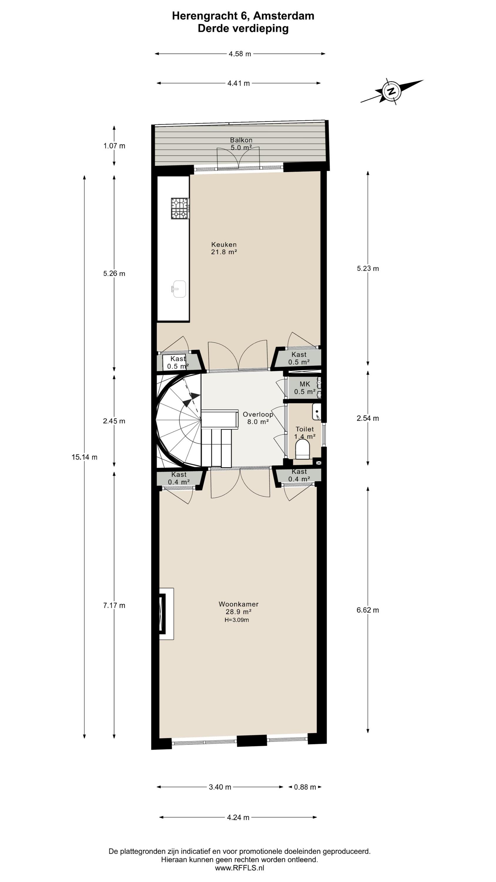 - Ruim en lichte woonlagen met plafonds van meer dan 3 meter hoog;