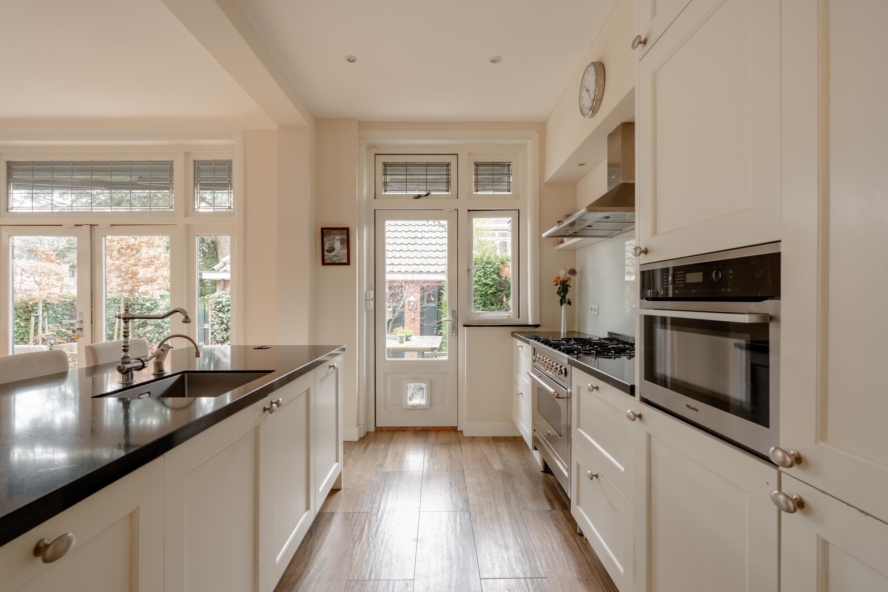 Vanuit de woonkamer loopt u door naar de ruime eetkamer met aansluitend de halfopen keuken. Deze keuken is voorzien van diverse inbouwapparatuur, waaronder een vaatwasser, Quooker en magnetron. Daarnaast beschikt de keuken over een ruim gasfornuis met oven. Vanuit de keuken heeft u tevens toegang tot de ruime kelder.