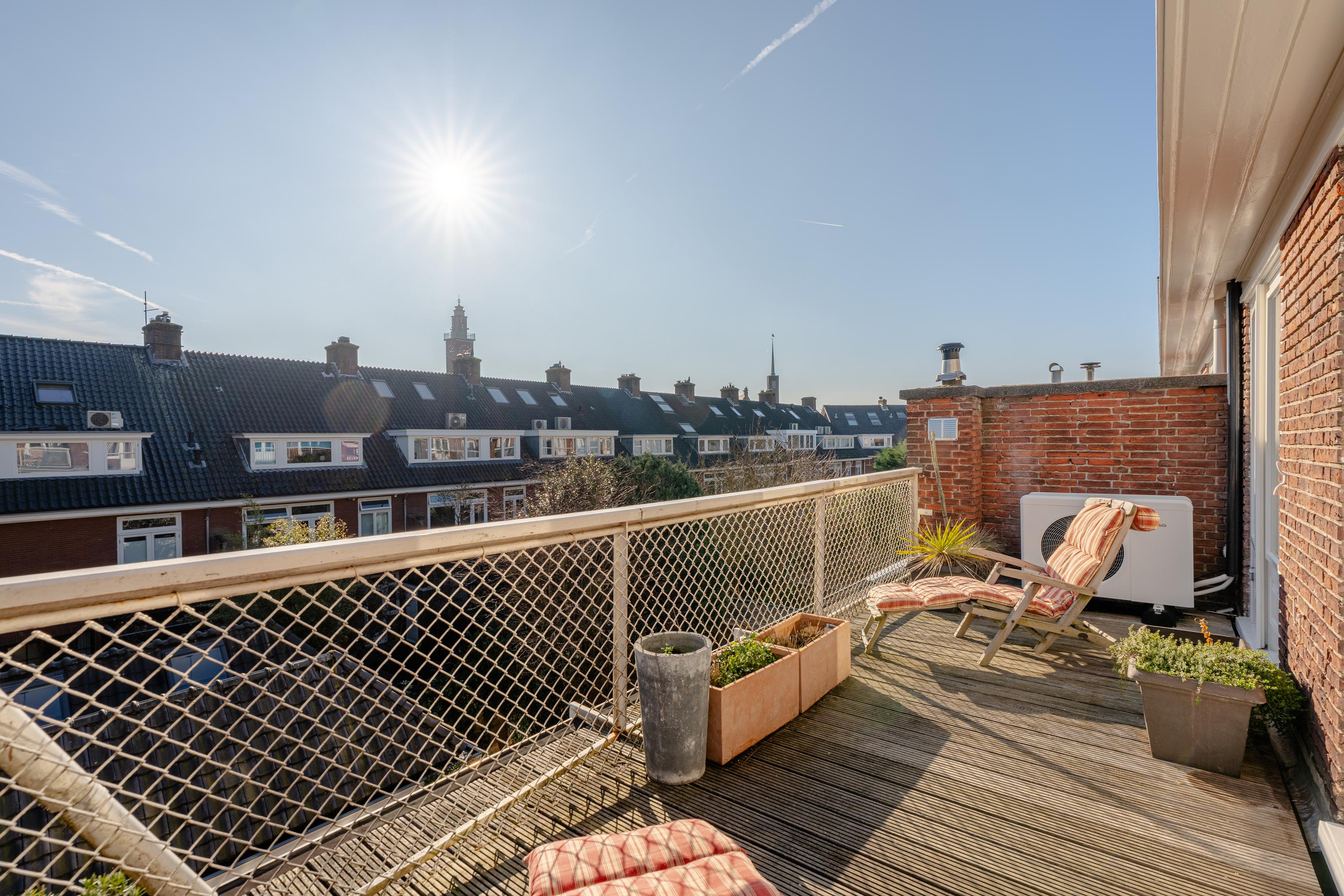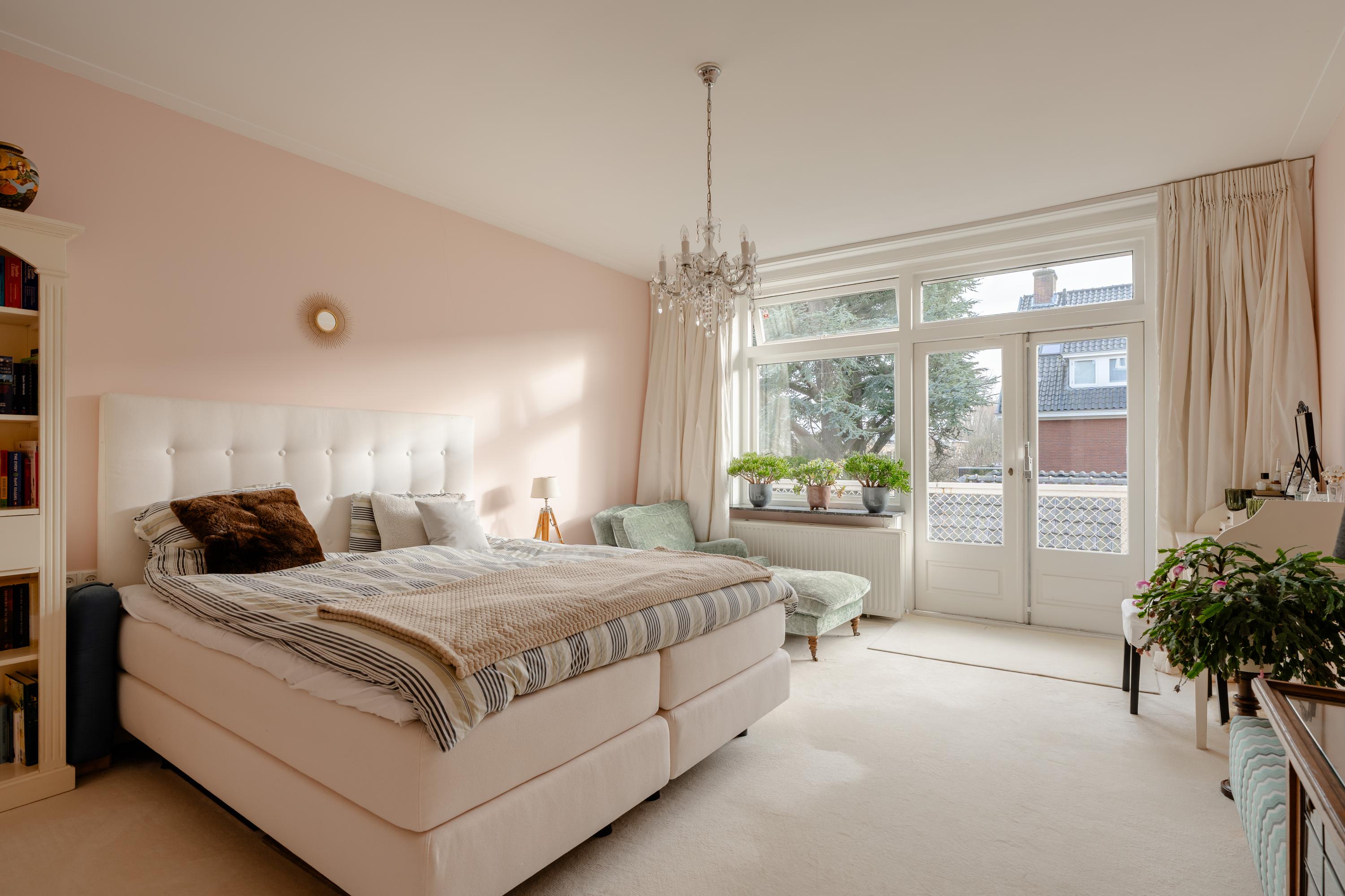 Aan de achterzijde bevinden zich twee slaapkamers met openslaande deuren naar het zonnige dakterras. Dankzij de grote raampartijen zijn deze kamers bijzonder licht en bieden zij een vrij uitzicht.