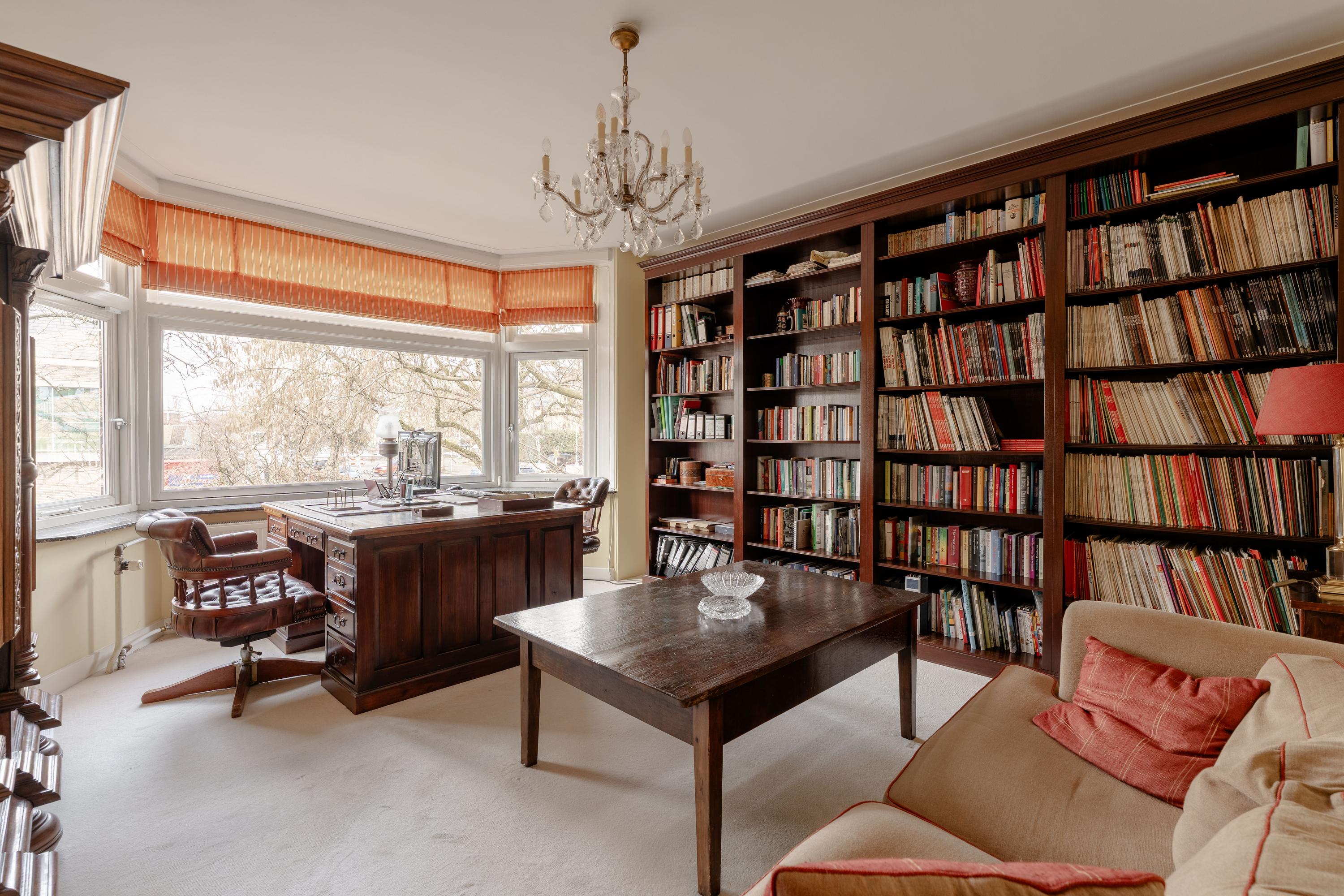 Deze verdieping wordt gekenmerkt door prachtige authentieke glas-in-loodramen en een fraaie parketvloer met bies. Aan de voorzijde bevindt zich de royale en lichte woonkamer en-suite met open haard, wat zorgt voor een zeer sfeervolle leefruimte.