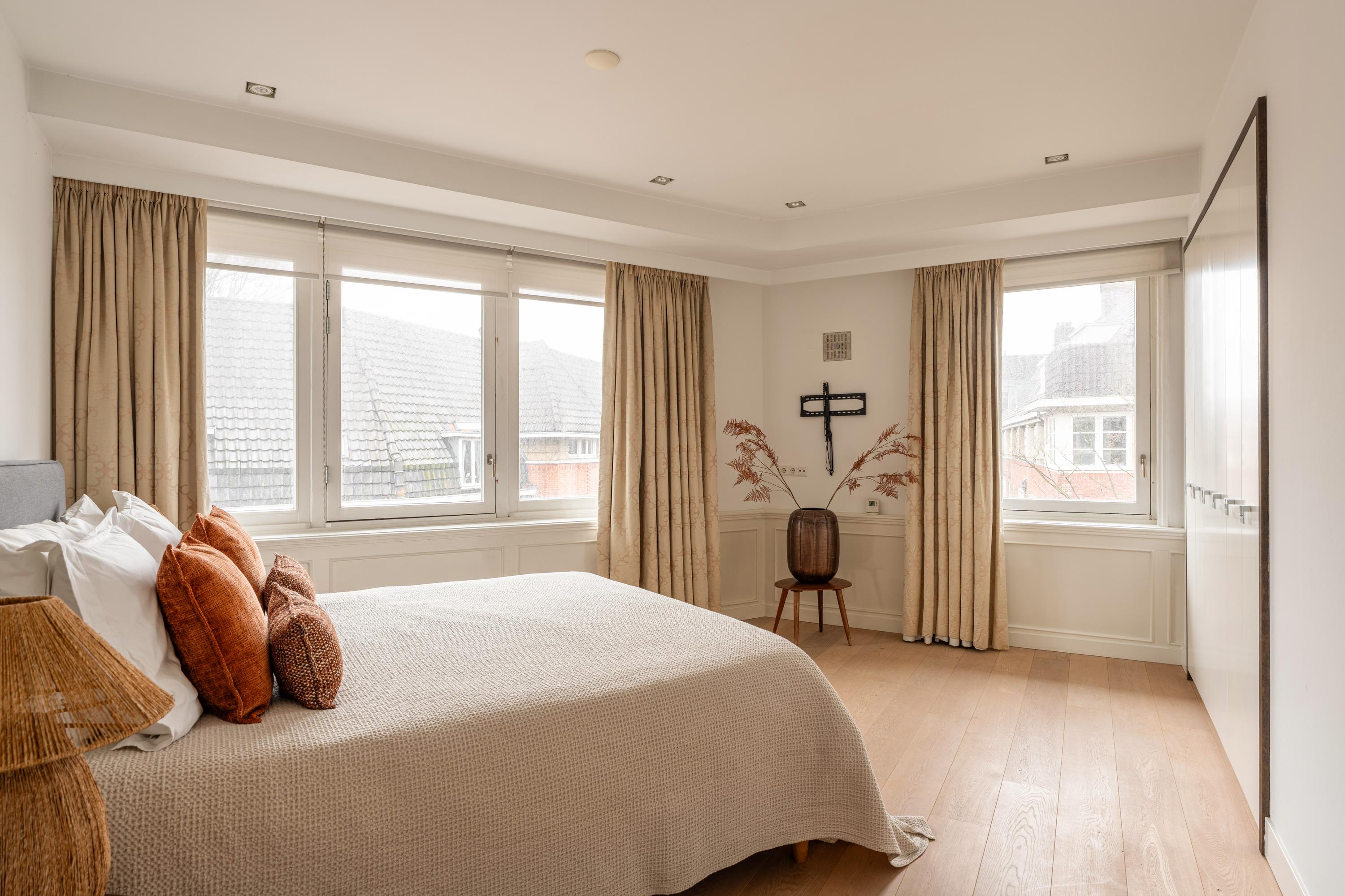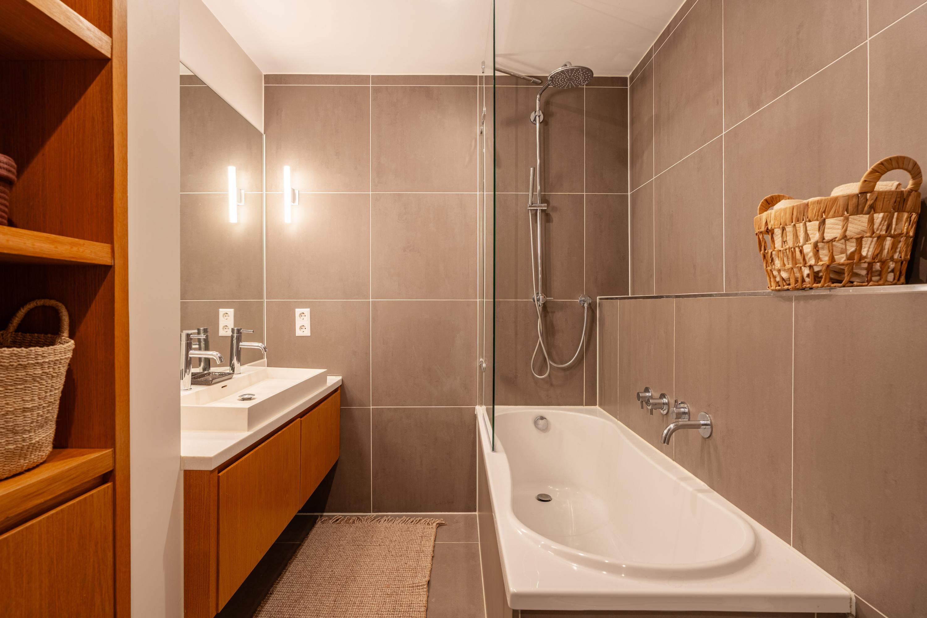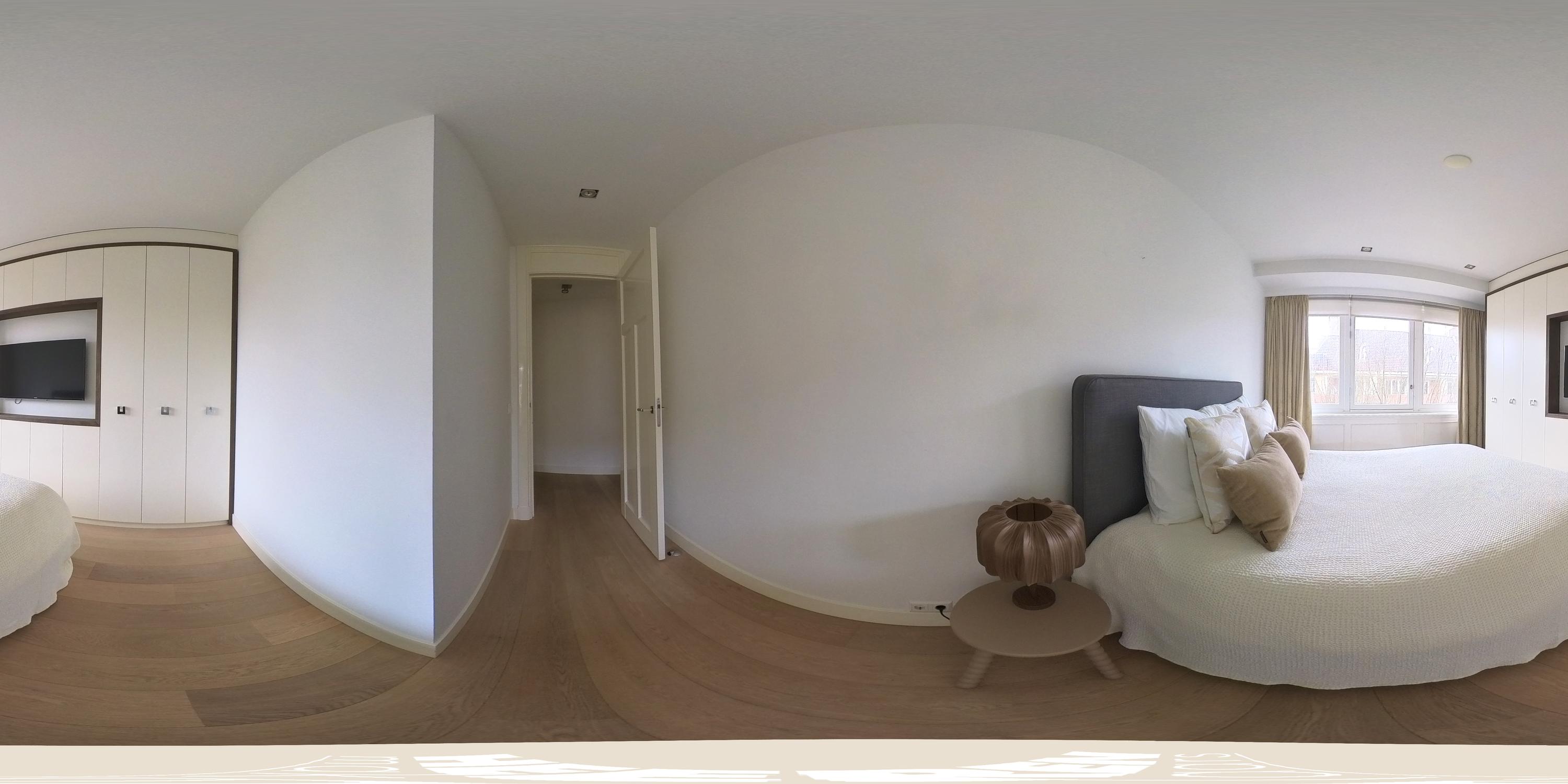 Via de trap in de woonkamer bereikt u de derde en tevens bovenste verdieping van het appartement. Hier bevinden zich twee goed bemeten slaapkamers, beide voorzien van grote raampartijen en maatwerk inbouwkasten. De master bedroom beschikt bovendien over een stijlvol geïntegreerde televisie in de kastenwand. De moderne badkamer is uitgerust met een ruim ligbad, een dubbele wastafel met meubel en een toilet. Tevens bevinden zich hier de aansluitingen voor wasmachine en droger.