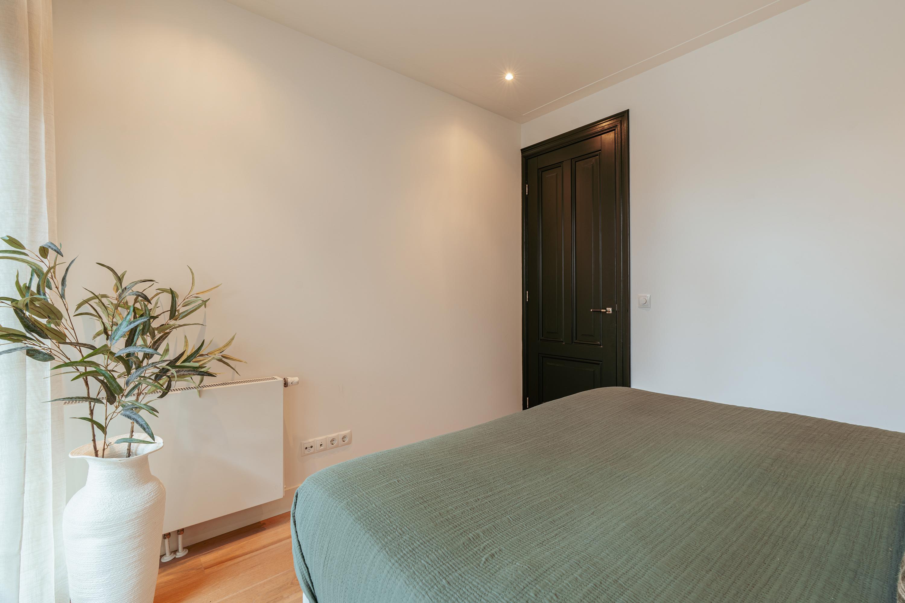 Aan de achterzijde bevinden zich nog twee comfortabele kamers. De tweede slaapkamer beschikt over toegang tot het royale dakterras en is ideaal als extra slaapkamer, logeer- of werkkamer. De derde kamer doet momenteel dienst als luxe walk-in-closet met maatwerk kasten, maar kan worden teruggebracht naar een slaapkamer.