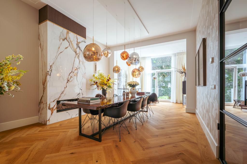 Aan de prachtige Vossiusstraat bevindt zich deze uitzonderlijk stijlvolle en royale woning van 323 m² verdeeld over drie verdiepingen en gelegen op eigen grond. Dit huis combineert klassieke elegantie met hedendaags comfort en is afgewerkt met hoogwaardige materialen, waaronder een visgraat houten vloer, stalen taatsdeuren, marmeren details en diverse gashaarden. Met zes slaapkamers, drie luxe badkamers, een riante woonkeuken, een fraai aangelegde zonnige tuin (157m²) en uitzicht over het park biedt deze woning een zeldzame combinatie van ruimte, rust en stedelijke allure – midden in het hart van Amsterdam Oud-Zuid.