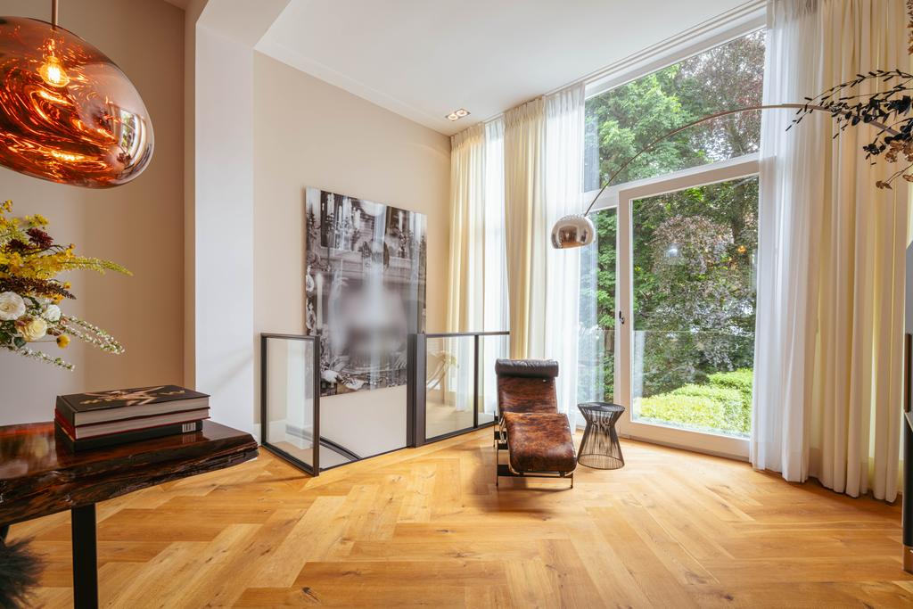 De gehele woning is voorzien van een prachtige houten vloer, in visgraat motief gelegd.