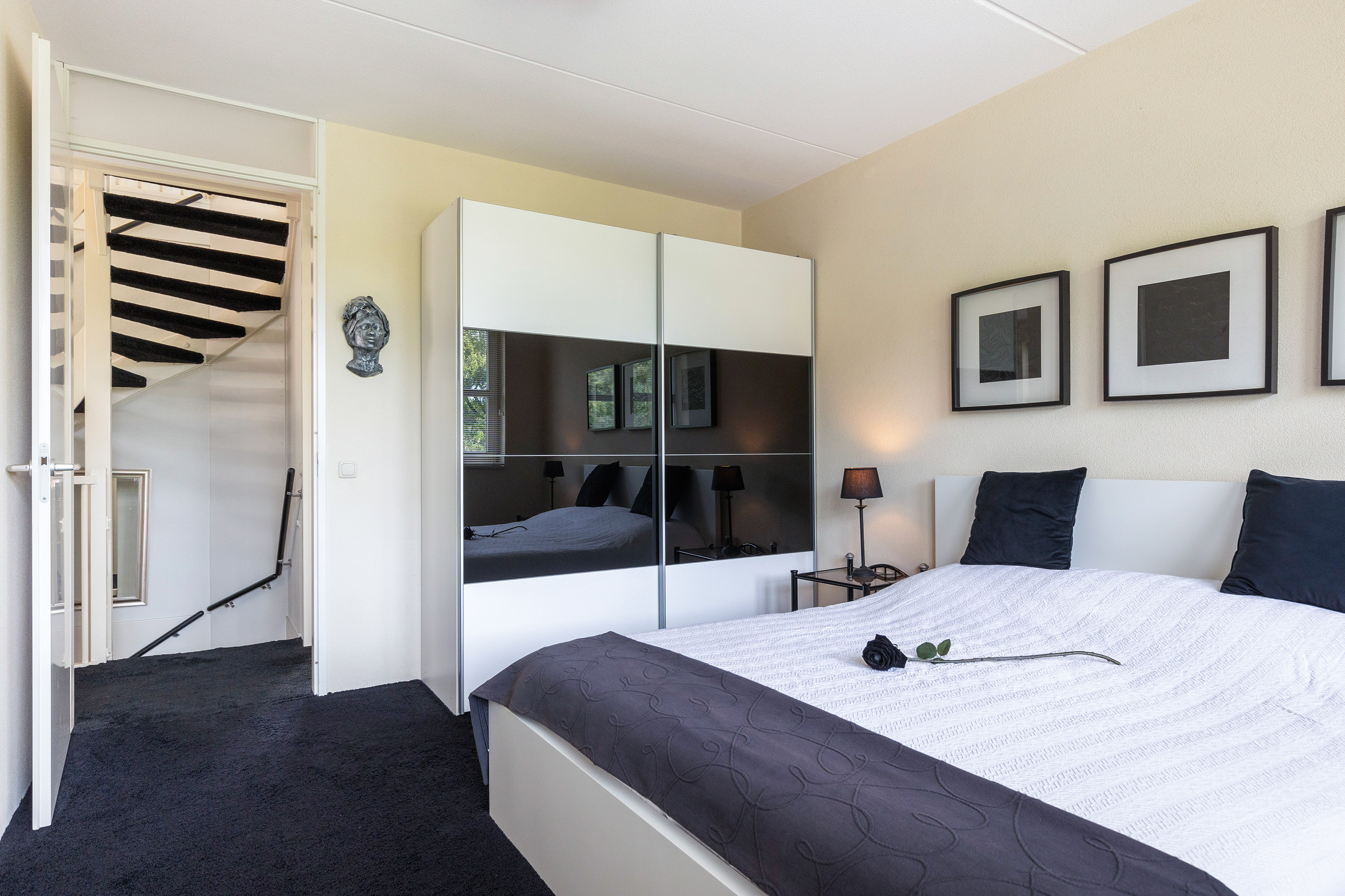 De overloop, voorzien van een zijraam, geeft toegang tot drie slaapkamers en de badkamer. De ouderslaapkamer aan de voorzijde is royaal bemeten en biedt ruimte aan een tweepersoonsbed én een grote garderobekast. Ook de tweede slaapkamer bevindt zich aan de voorzijde en is momenteel in gebruik als kantoor, maar kan eenvoudig weer dienstdoen als slaapkamer. De derde slaapkamer aan de achterzijde kijkt uit op de tuin.