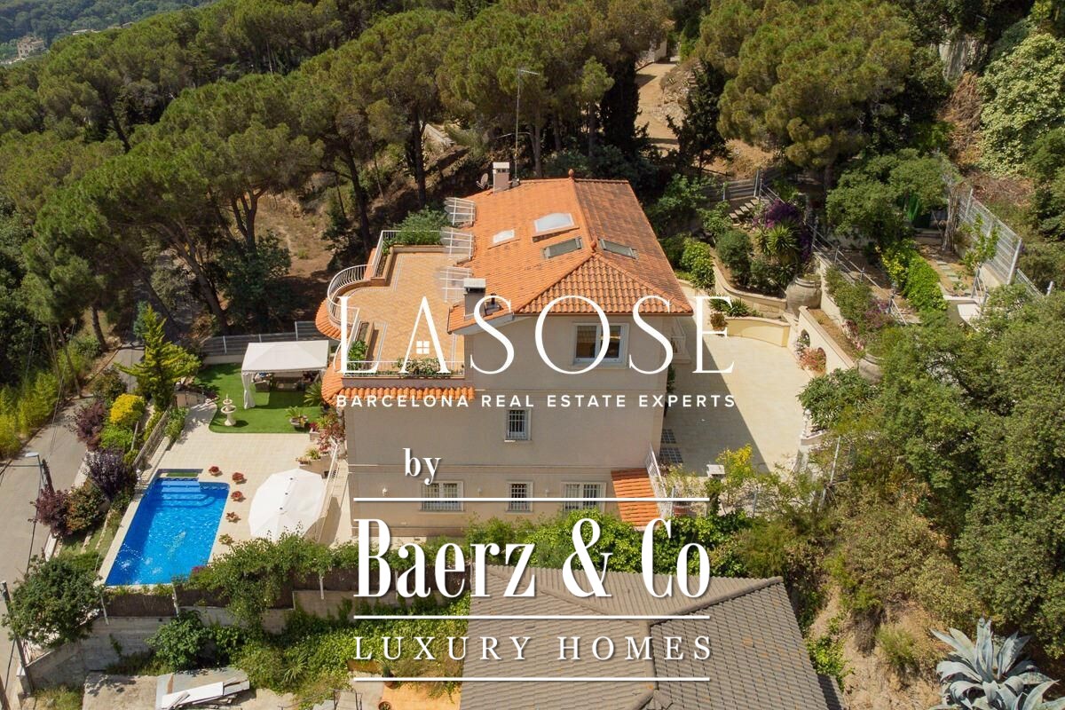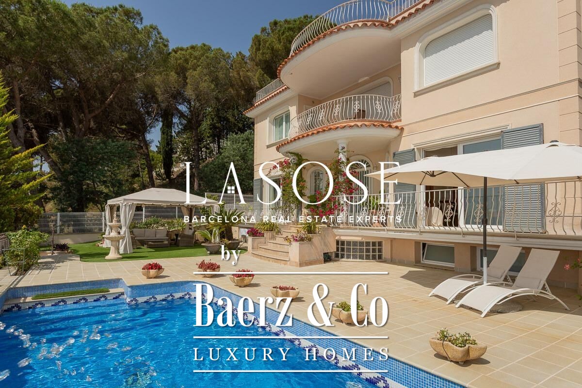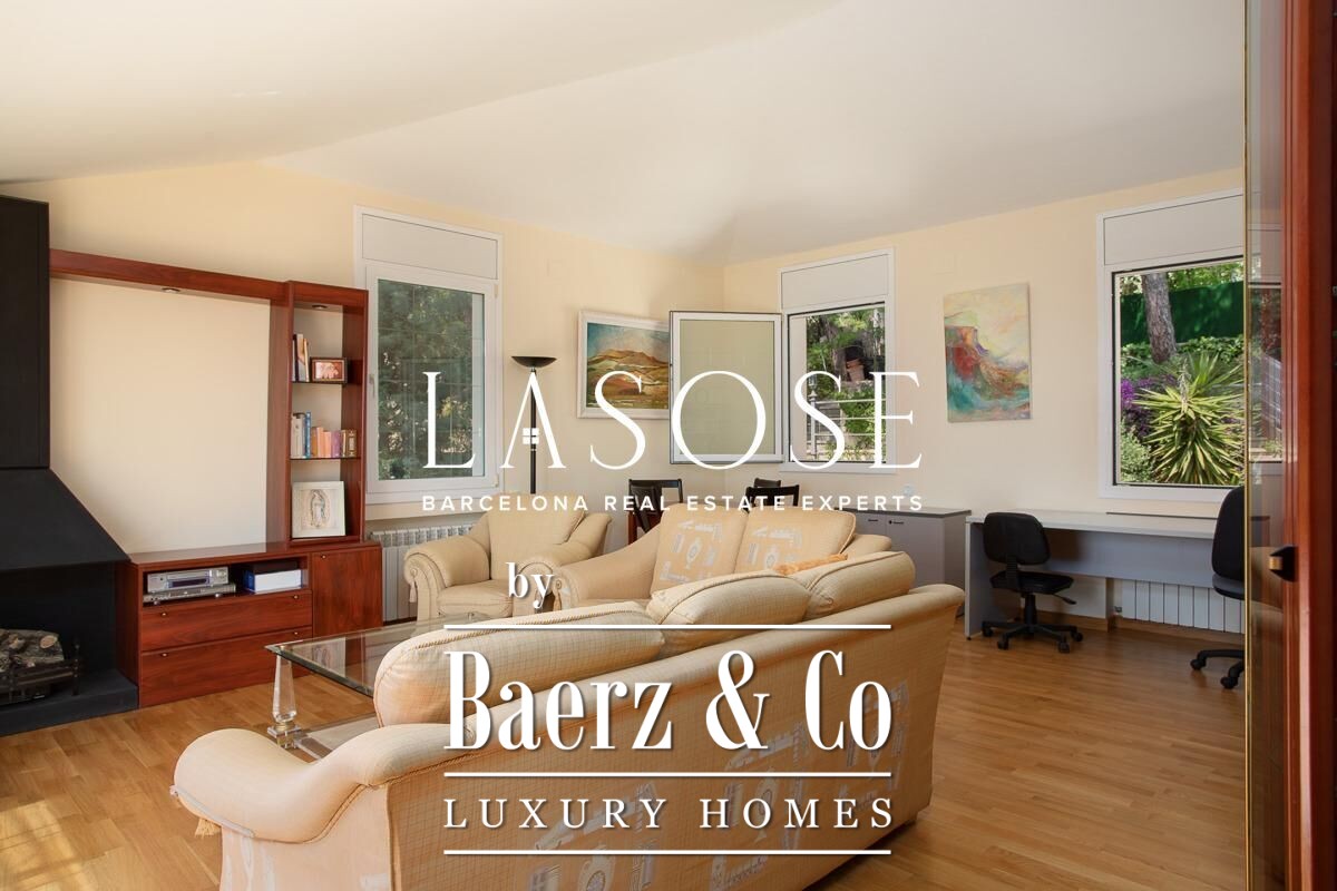 Verspreid over vier met lift verbonden verdiepingen is de architectuur van de villa doordacht, licht en ontworpen voor een moeiteloze overgang tussen binnen en buiten. De leefruimtes zijn voorzien van elegante marmeren vloeren en een haard, en openen naar riante terrassen en een vlakke tuin, omlijst door uitzonderlijke vergezichten tot aan de skyline van Barcelona op heldere dagen. Vijf slaapkamers en vijf badkamers bieden privacy, terwijl twee volledig ingerichte keukens flexibiliteit toevoegen. De privébibliotheek, royale bijkeuken en specifieke opbergruimtes verhogen het gebruiksgemak zonder concessie te doen aan stijl.