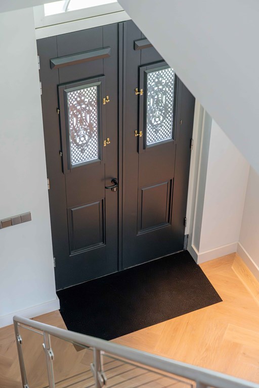 Middels de keurig aangelegde voortuin bereikt u de statige entree van de woning. Bij binnenkomst is direct duidelijk dat er goed is nagedacht over de zichtlijnen in en rond de woning. De hal is voorzien van een meterkast, een toiletruimte, een vestiaire, een trapopgang voor toegang tot de verdieping en biedt toegang tot de woonvertrekken.