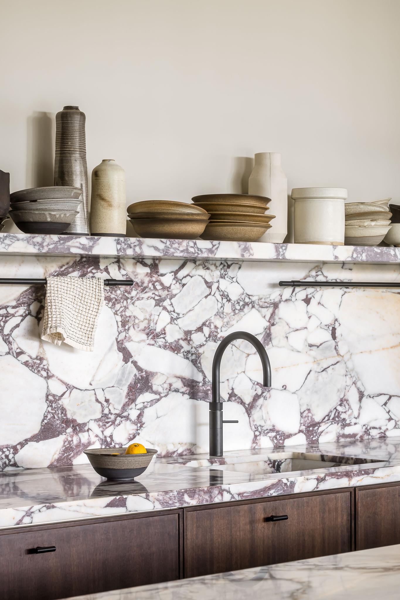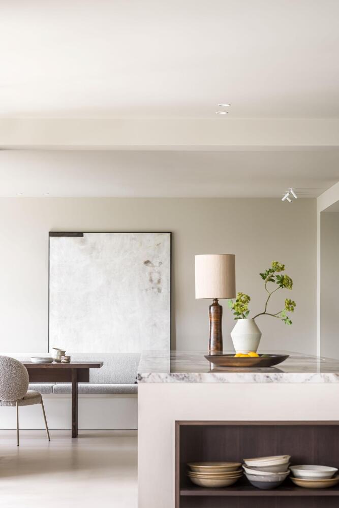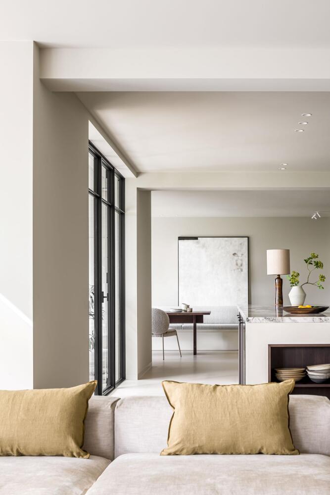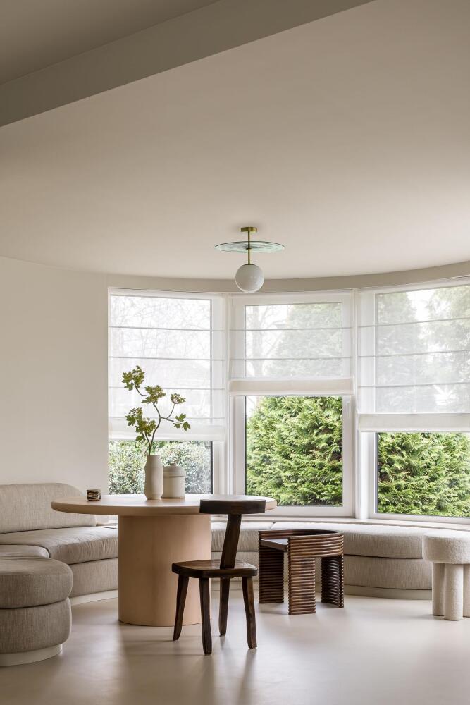 De riante living, voorzien van plafond hoge ramen en een prachtige ronde erker, wordt overgoten door natuurlijk licht, wat direct bij binnenkomst een gevoel van ruimte en rust creëert. De sfeervolle haard vormt een elegant middelpunt in de open woonruimte, die naadloos overgaat in de luxe keuken. Deze is voorzien van hoogwaardige inbouwapparatuur en moderne gemakken, waaronder een royaal kookeiland van ca. 5 meter, Quooker, vaatwasser, koel-/vriescombinatie en een inductiekookplaat met geïntegreerd afzuigsysteem. Het aanrechtblad van exclusief boekmarmer loopt door in de spoelbak, wat de keuken een verfijnde uitstraling geeft. Via openslaande stalen deuren bereikt u het heerlijke overdekte terras en de fraai aangelegde tuin. Aangrenzend aan de keuken bevindt zich de ruime eetkamer.