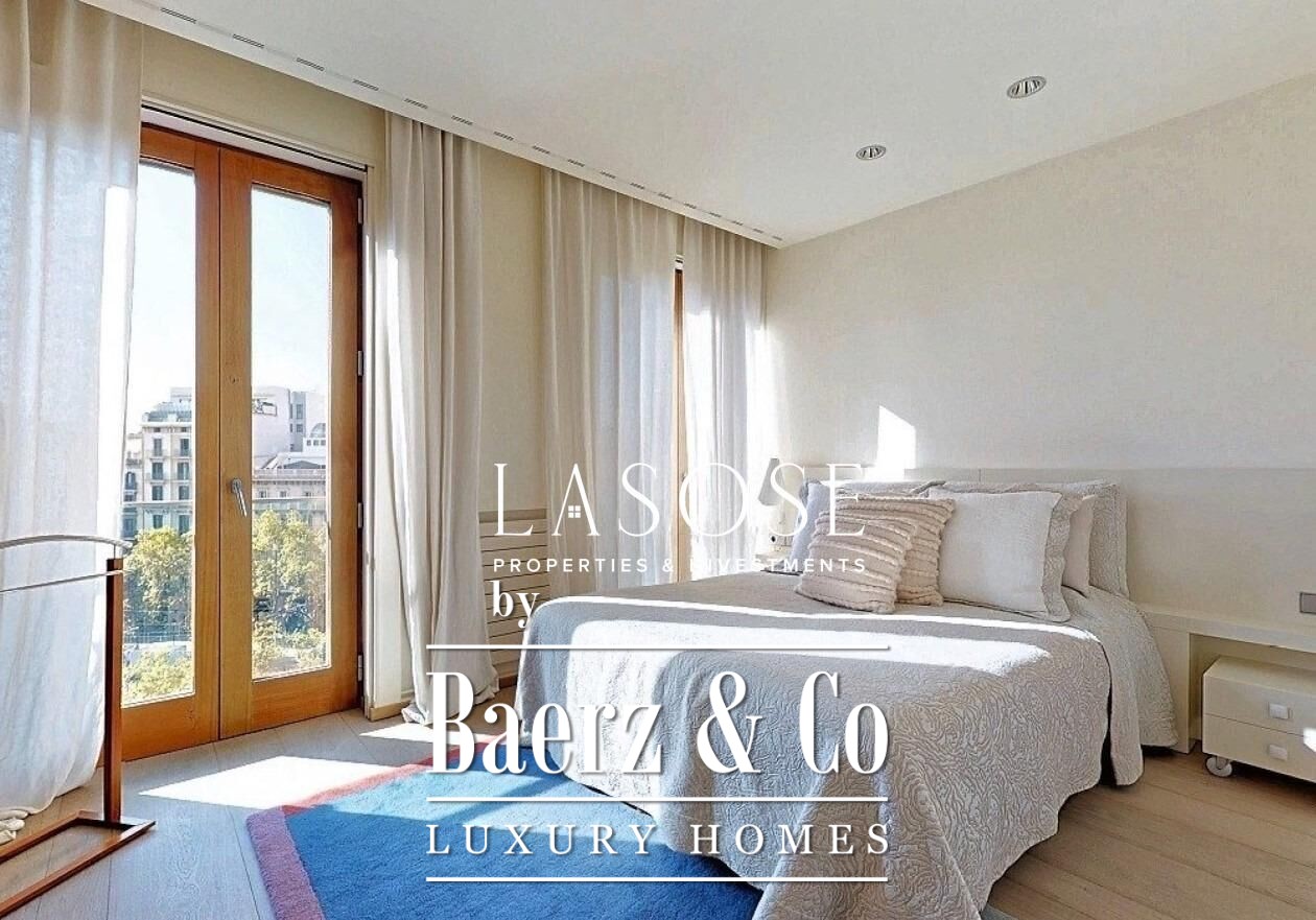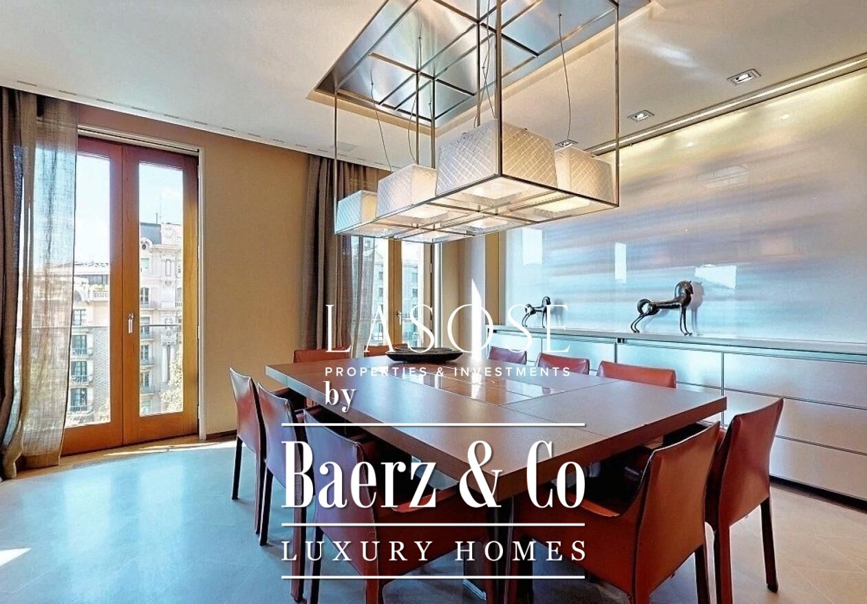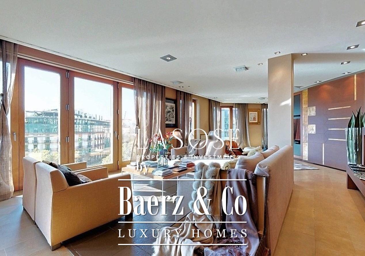 Lasose Properties presents a stunning property for sale in Passeig de Gracia with 180º panoramic views thanks to its beautiful location in a corner building. This spacious apartment offers exceptional brightness and proportionate open spaces, all of them exterior.. . The property consists of:. . 3 bedrooms (including 1 Master Suite with bathroom and dressing room).. 3 bathrooms. 1 toilet. 1 large living room with incredible view on the street. 1 professional kitchen with dining room + 1 pantry. 1 library. It also includes 2 storage rooms and 2 parking spaces in the price.. . This property is located in one of the most emblematic buildings of Passeig de Gracia, built in 2002 but preserving its majestic entrance. The building