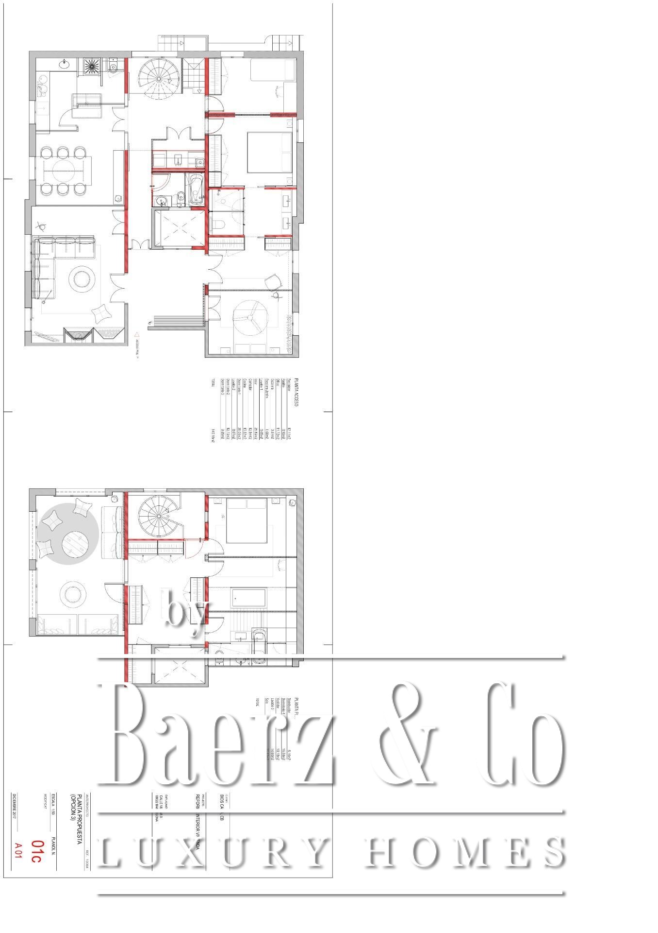 The duplex features five spacious and serene rooms for relaxation, three of them on the lower floor and two more on the upper floor, one of which is a suite with a dressing room, like an intimate retreat within the home. Three full bathrooms and an additional toilet complete this dwelling designed for well-being.