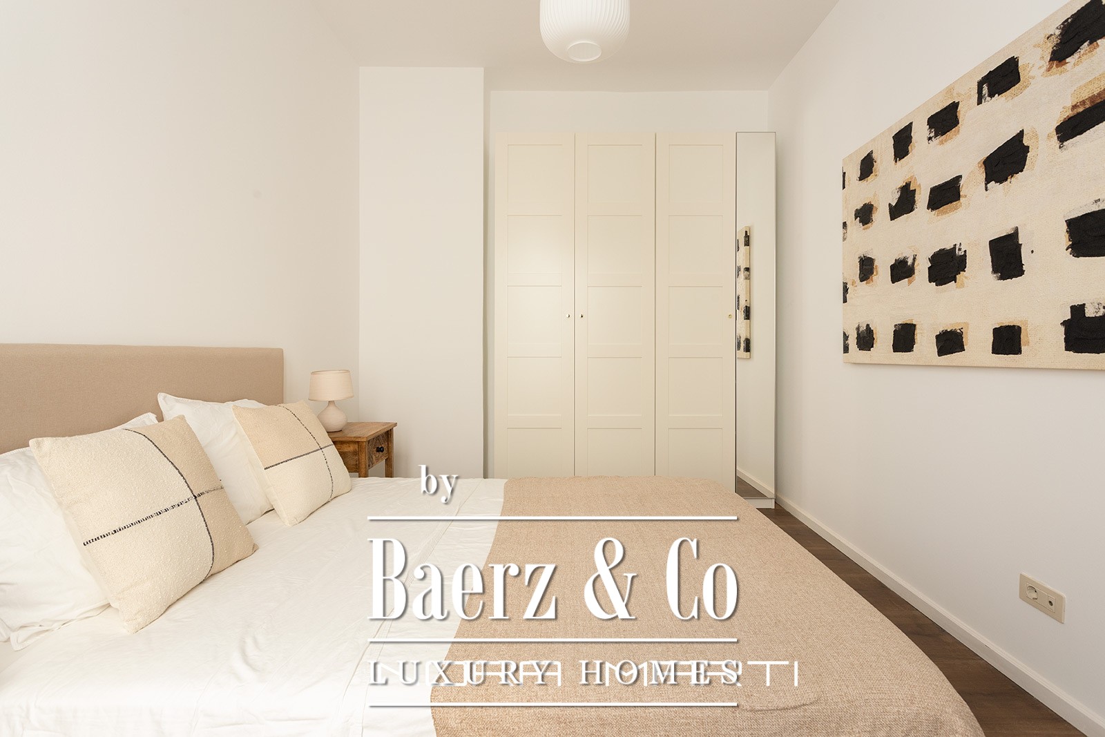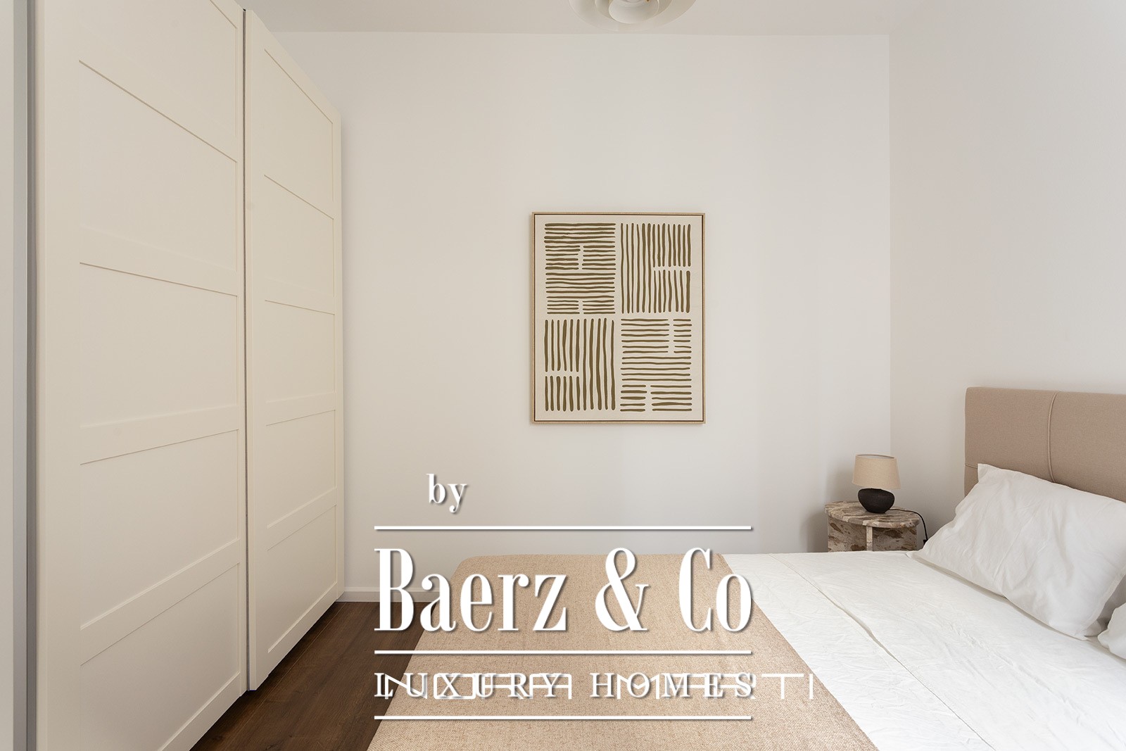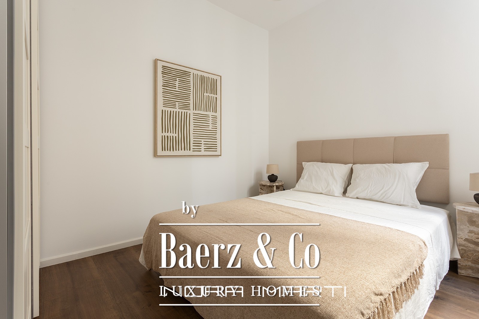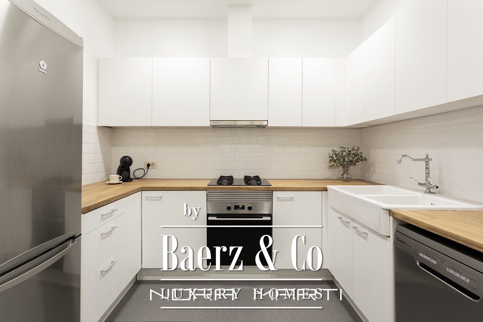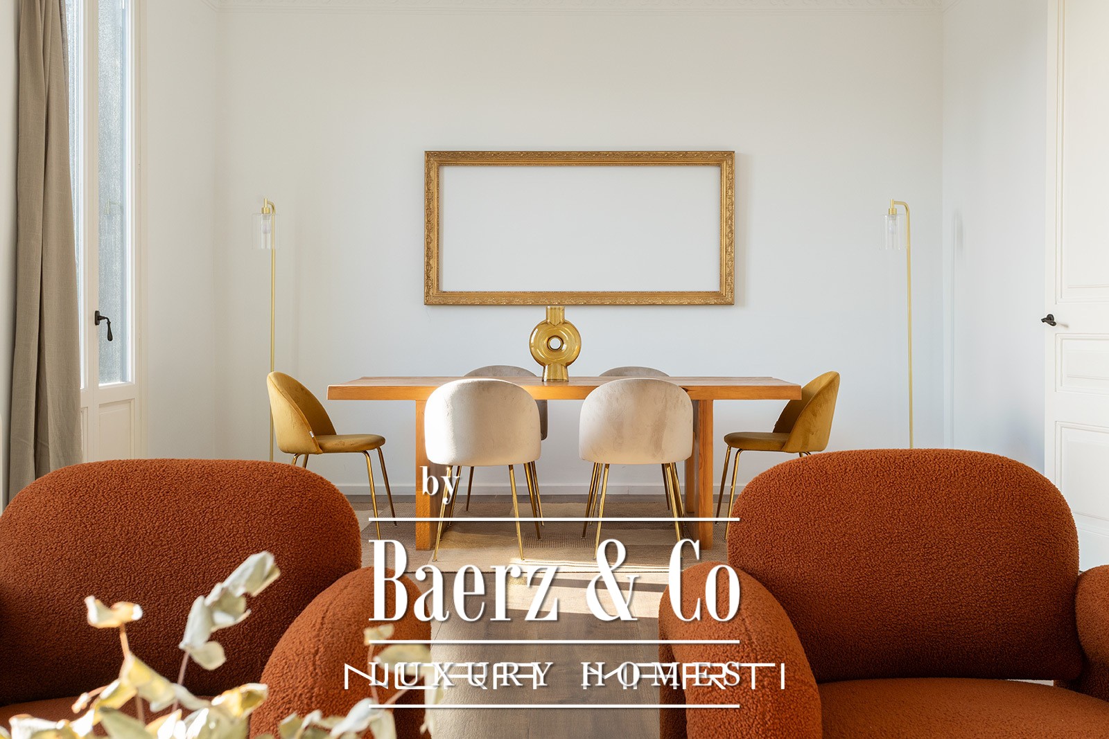 Het appartement van 152 m² is grondig gerenoveerd en combineert hedendaags comfort met authentieke elementen. Binnen zorgen verfijnde, moderne meubels voor een gevoel van helderheid en harmonie, passend bij een ingetogen stedelijke levensstijl. De indeling omvat drie slaapkamers — één tweepersoonskamer en twee eenpersoonskamers — en twee badkamers, wat een mooie balans brengt tussen privacy en gezamenlijke ruimtes. De hoge ramen in de woonkamer, kenmerkend voor de bouwperiode, vullen het interieur met natuurlijk licht; de ideale ligging en het warme parket versterken dit effect. Een volledig uitgeruste keuken met ontbijthoek verhoogt het dagelijks wooncomfort.