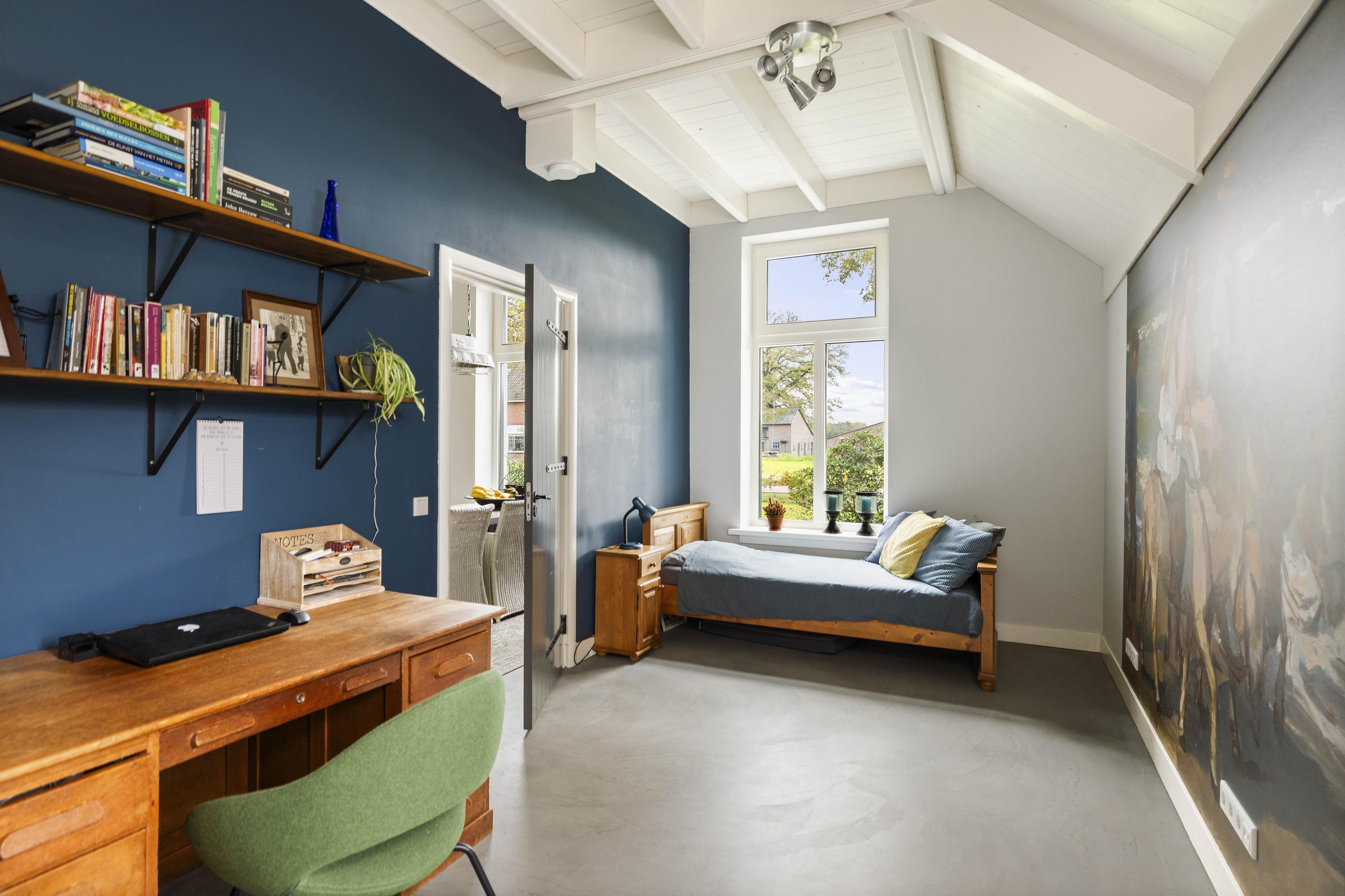 Naast de keuken bevindt zich een riante slaap-/ werkkamer, die naar wens eenvoudig gesplitst kan worden, of levensloopbestendig wonen mogelijk maakt.