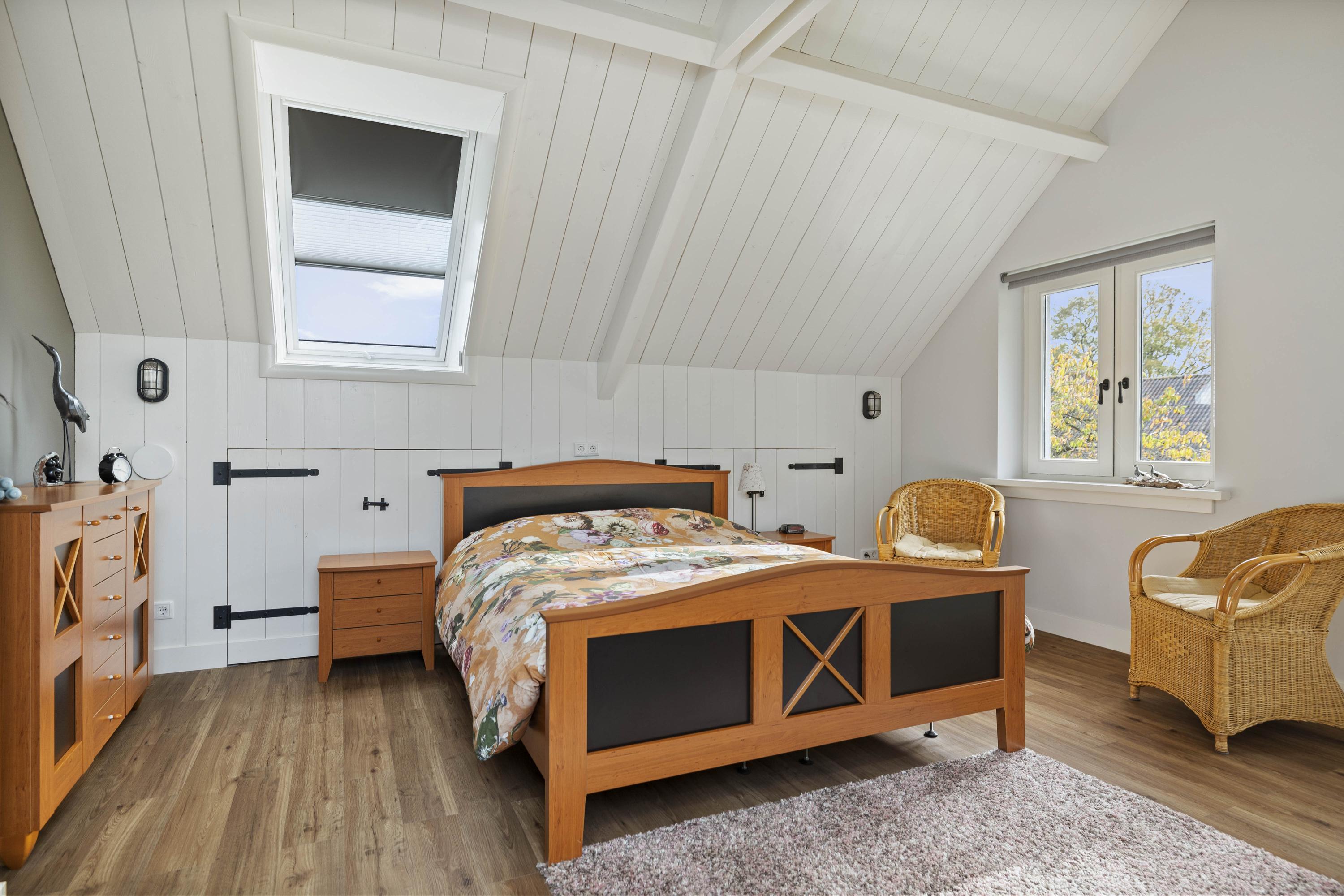 Deze magnifieke woonboerderij kreeg in 2016 haar huidige gestalte; toen werd de boerderij, die in 1924 gebouwd werd, van onder tot boven gerenoveerd. Hierbij lag de nadruk op verduurzaming; de buitenzijde werd volledig geïsoleerd met blokken styrofoam, rondom kreeg het huis nieuw HR+++-glas, er werd een water-water-warmtepomp aangelegd (die op 75 m diepte de warmte uitwisselt en ophaalt), de vloer binnen werd voorzien van een robuuste gietvloer – ideaal in combinatie met de vloerverwarming - en op de daken werden in totaal 110 (nee, dit is géén typfout) zonnepanelen gelegd. Onder de motorkap is dit huis één en al state-of-the-art technisch vernuft. Zelfs het kleurenpalet – de buitenzijde is wit gekeimd met grijs houtwerk en kraalrand – draagt bij aan het energiezuinige karakter van het huis, want waar de witte gevels het zonlicht reflecteren, absorbeert het grijs de warmte. Dit huis heeft niet alleen nul op de meter, het levert ook nog eens fiks terug! Een thuisbatterij is hier dus een prima aanvulling.