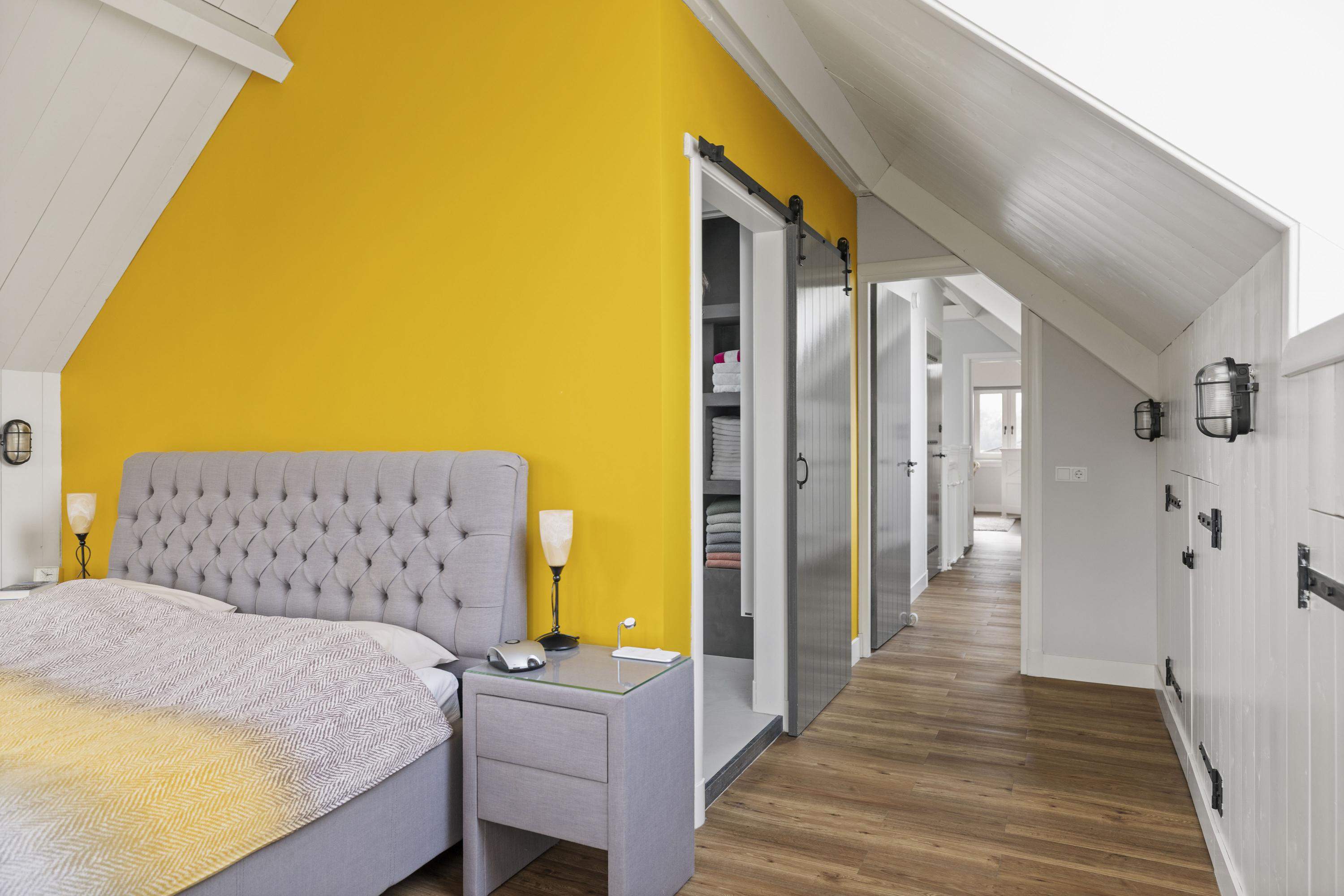 Boven een riante overloop met véél bergruimte en twee heerlijke slaapkamers, eveneens met veel bergruimte en elk een eigen badkamer. De wanden met beton ciré geven de ruimtes een chique en eigentijdse uitstraling. De badkamers zijn beide voorzien van een riante inloopdouche, wc’s met no-touch spoelsysteem (Wisa) en wastafel (Grohe Sphinx).